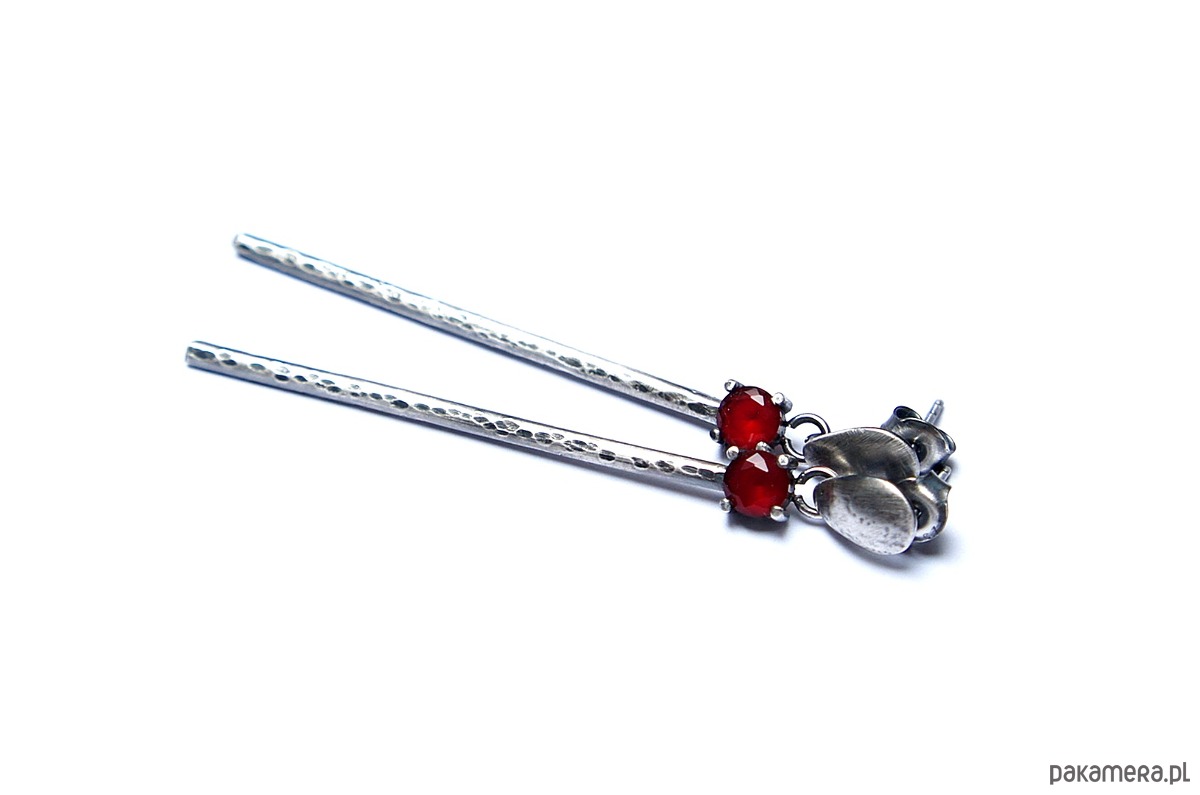 Kolczyki wykonane od podstaw ze srebra [pr. 925] w połączeniu z cyrkoniami [5mm]. Całość oksydowana i przetarta. Całkowita długość kolczyków 6,5cm. Biżuteria ozdobnie zapakowana.