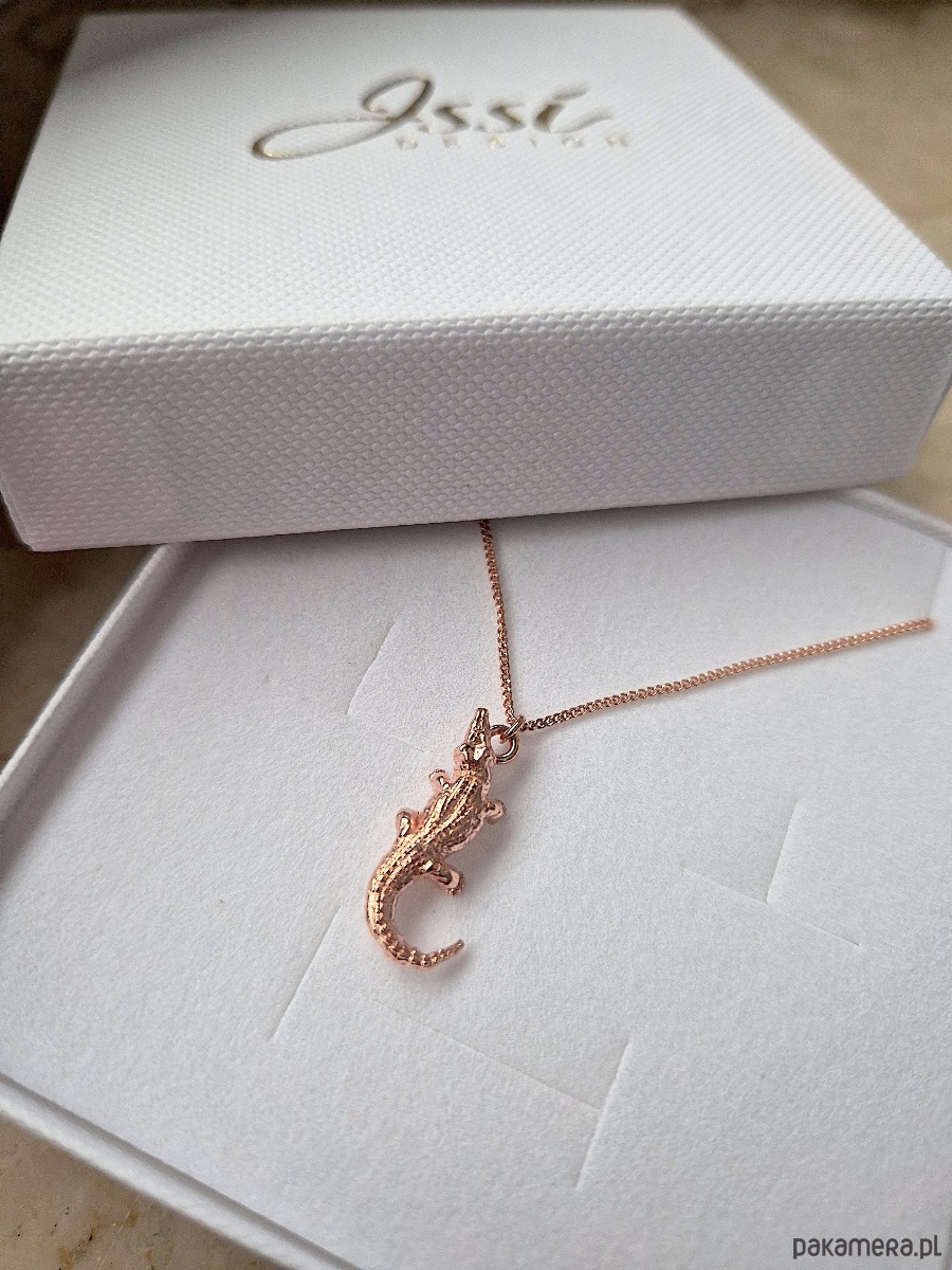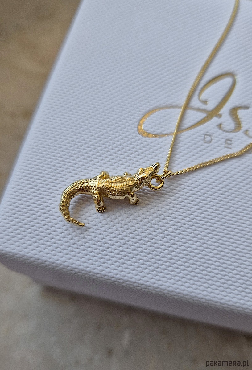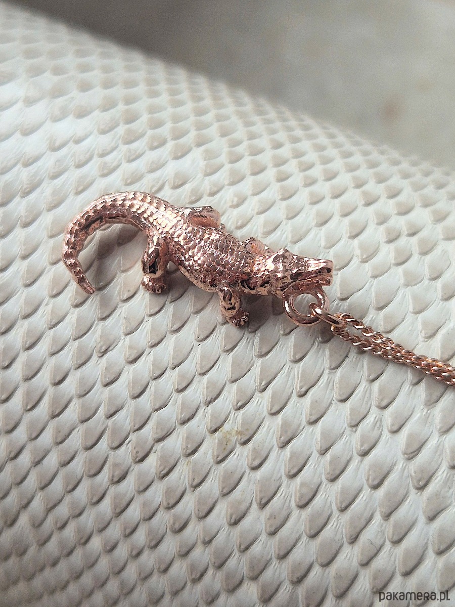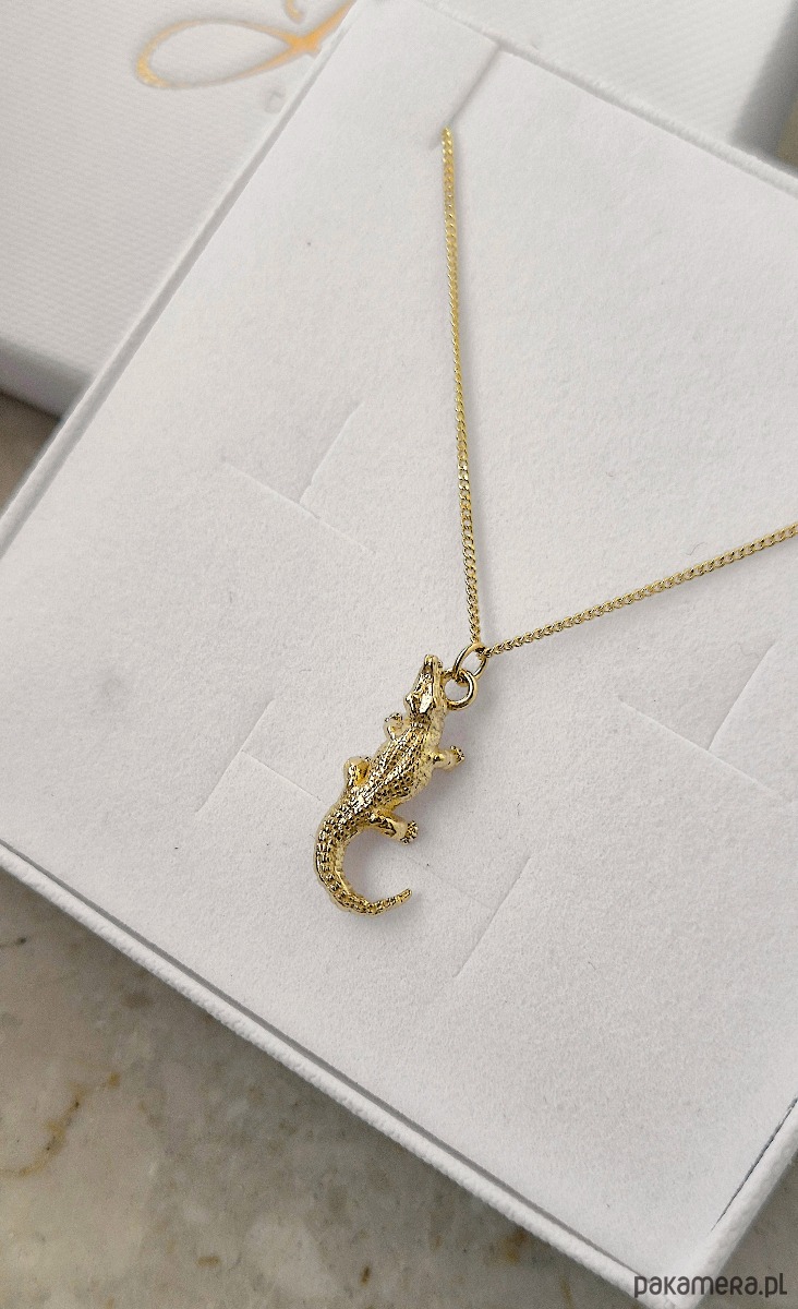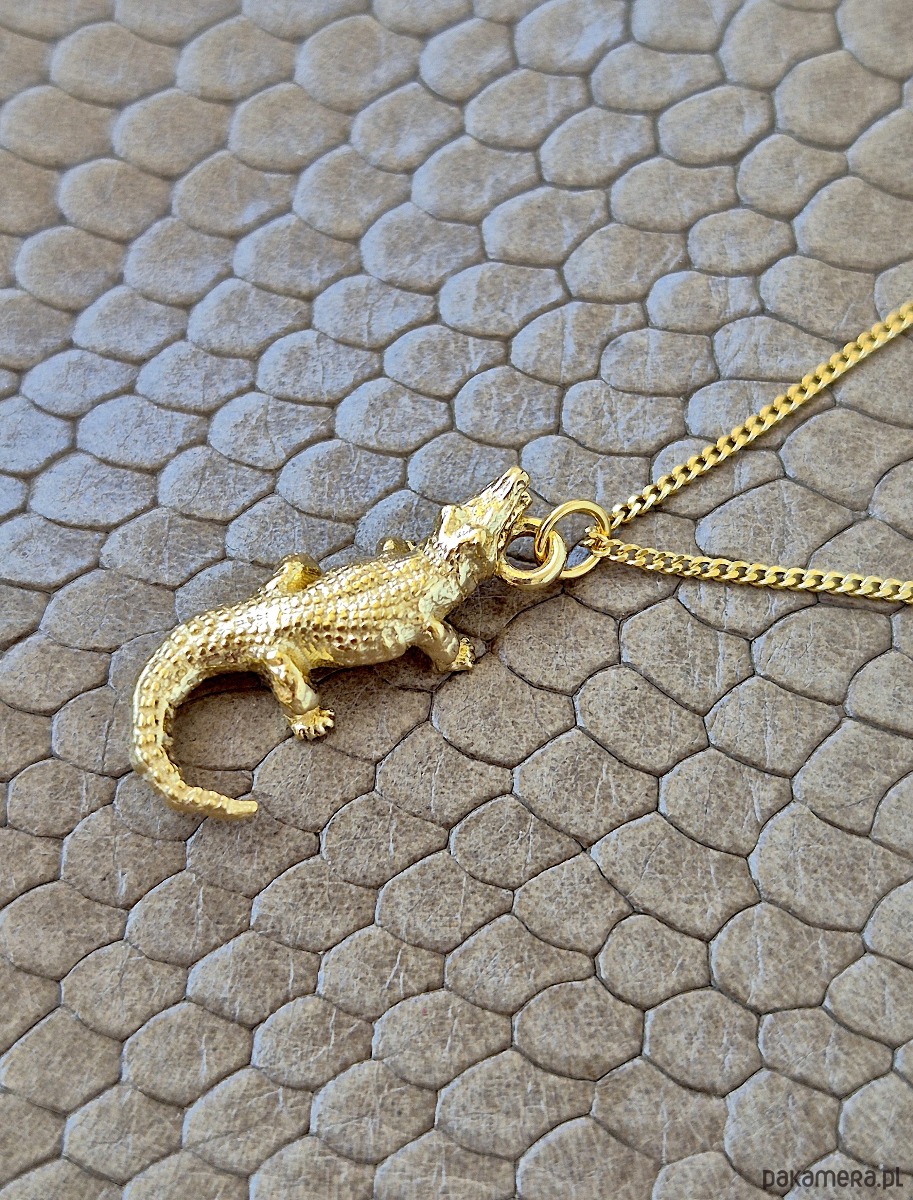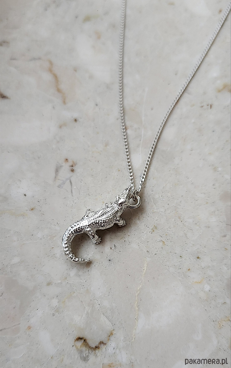 Naszyjnik z trójwymiarową zawieszką w kształcie krokodyla.
