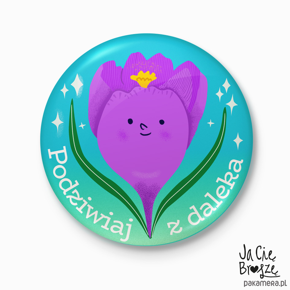 Krokusy - jedne z pierwszych kwiatów, które pojawiają się po zimie. Zachwycają swoim intensywnym kolorem, a widząc je nie sposób się nie uśmiechnąć i pomyśleć- wreszcie!!! Wreszcie pojawia się zwiastun nadchodzącej ferii barw i ciepełka :) Krokusy także kojarzą się z Zakopanem i m.in. Doliną Kościeliską czy Chochołowską - tam podziwiamy je z daleka! Nie wchodzimy na polany, a fotografujemy je z oznaczonych szlaków turystycznych! Pomyślałam, że hasło "Podziwiaj z daleka" i "Keep distance" świetnie pasują do przypinek i lusterek, a oprócz tego mają charakter edukacyjny! :)
