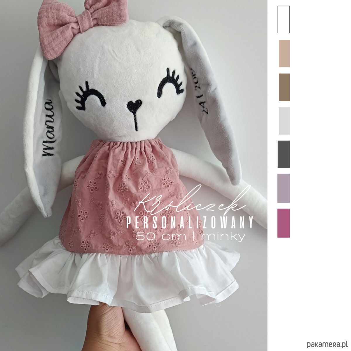 Personalizowany królik to wyjątkowa, ręcznie tworzona pamiątka narodzin, chrztu, urodzin, piękna dekoracja pokoju.