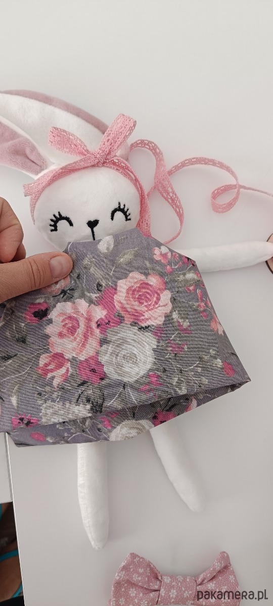 Króliczka ozdabiamy dowolnymi dodatkami, może mieć muszkę, lub kokardkę, wianek, koronę, skrzydełka, spódniczkę w dowolnym stylu . Do każdego zlecenia podchodzimy indywidualnie. Możesz uczestniczyć w każdym etapie powstania królika (ustalać z nami wszystkie szczegóły, tkaniny, materiały) lub napisać preferencje i zdać się na nasz gust i doświadczenie.