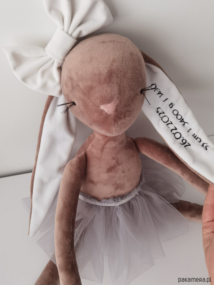 Są duże i mają długie nóżki i rączki - idealne do przytualania, tańczenia i zabaw. Szyte są na zamówienie i mogą być dowolnie modyfikowane (posiadać inny kolor, różne ubranka, dodatki) tak aby pasowały do dziecka do którego mają trafić. Im więcej danych, tym bardziej trafiony prezent. Na brzuszku, na ubranku, kokardzie lub skrzydełkach ( jeśli mają być) haftujemy imię dziecka. Króliczki wykonujemy z bardzo przyjemnego materiału - minky, posiadają antyalergiczne wypełnienie.