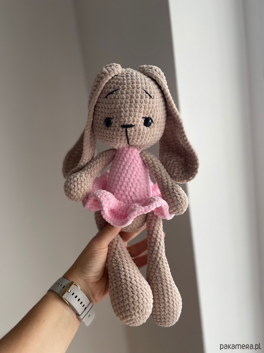 Pluszowy królik z długimi uszami w różowej sukience - idealny prezent dla małej księżniczki!