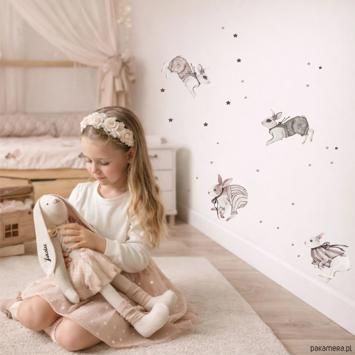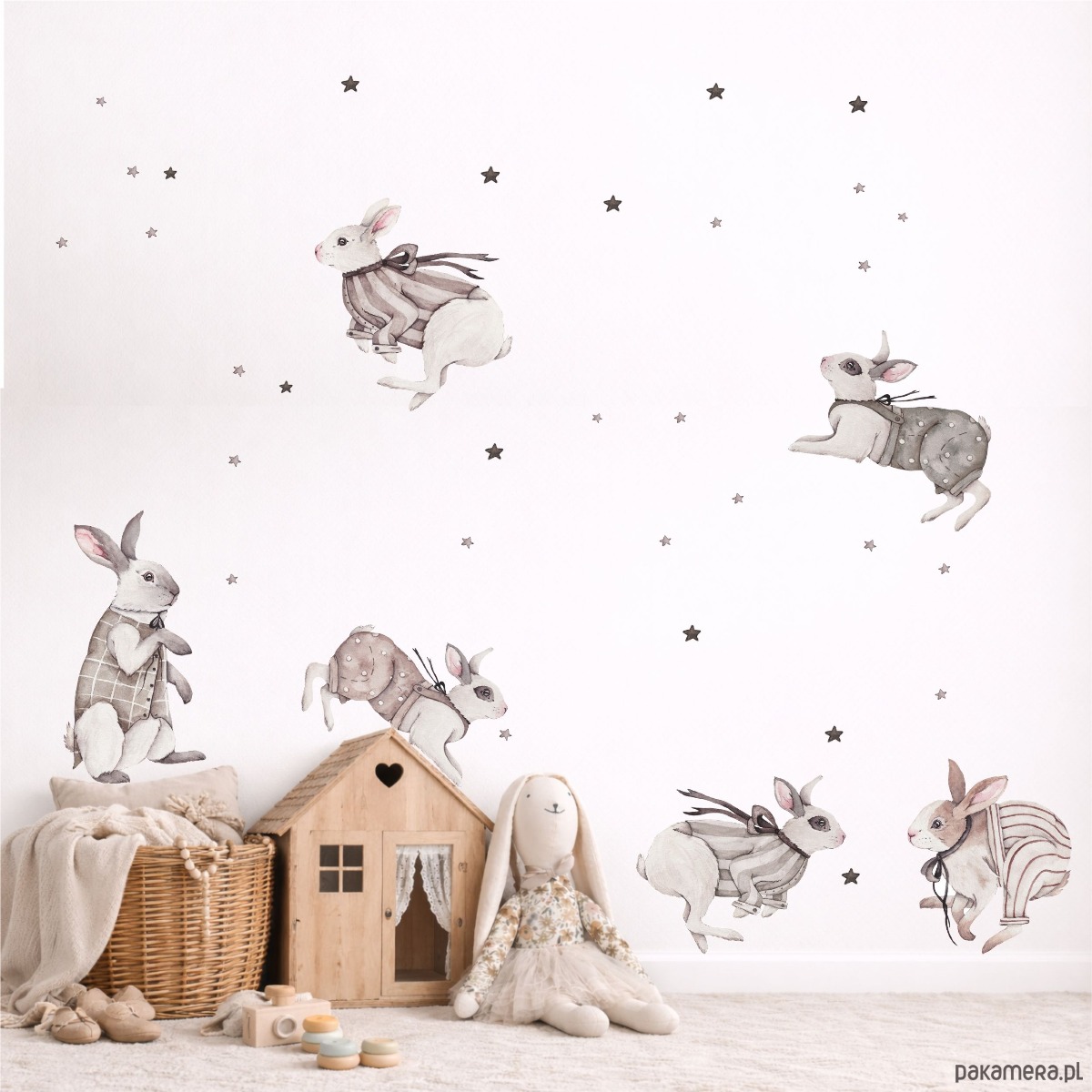 Króliczki Retro, gwiazdki | Naklejka na ścianę, naklejka ścienna