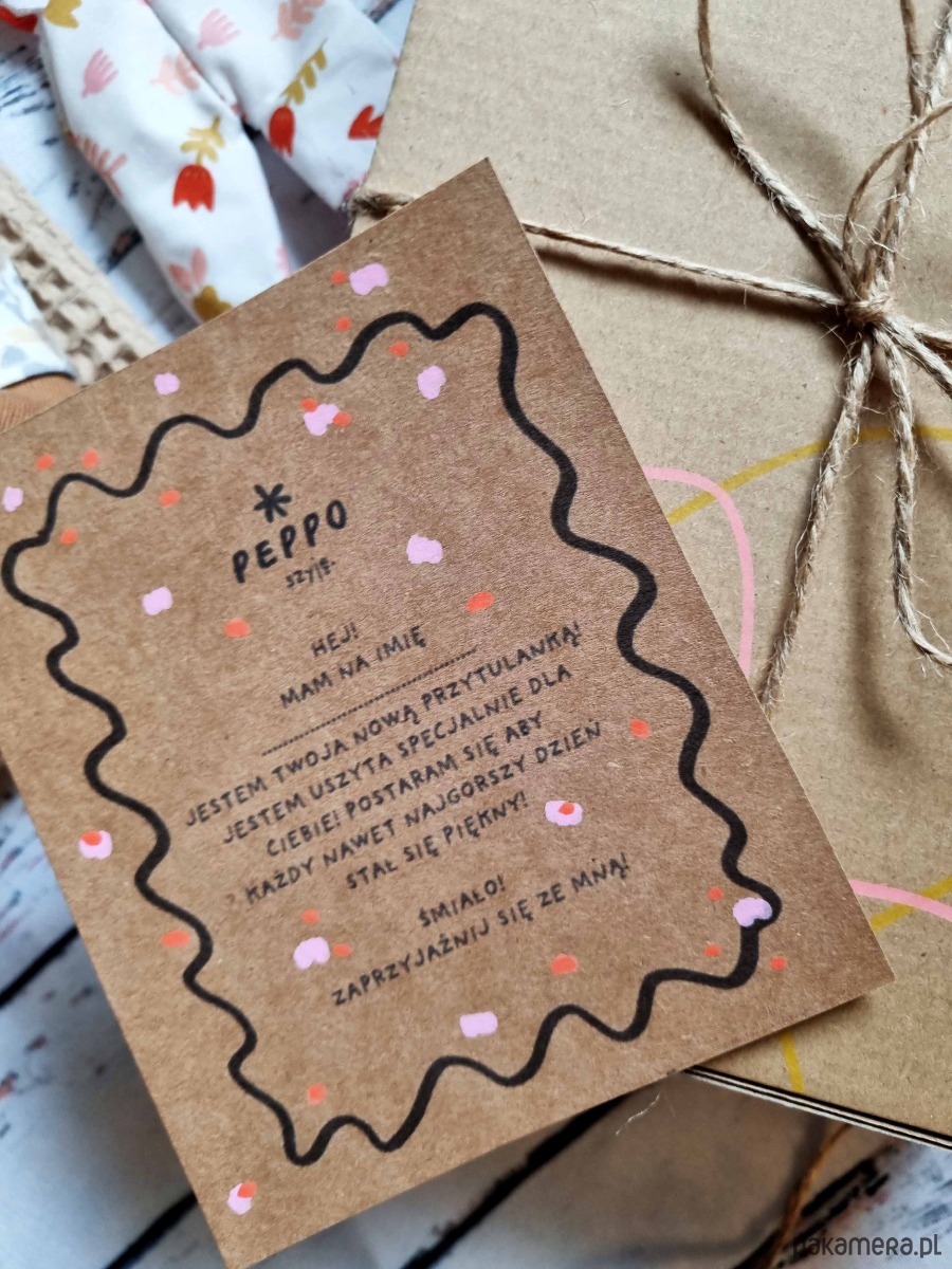 Przytulanka jest zapakowana w pudełeczko i gotowy do wręczenia.