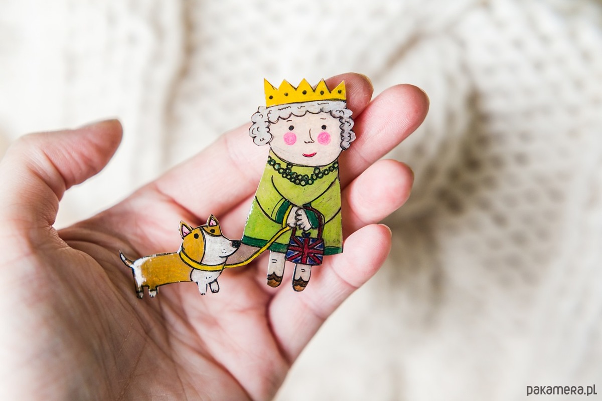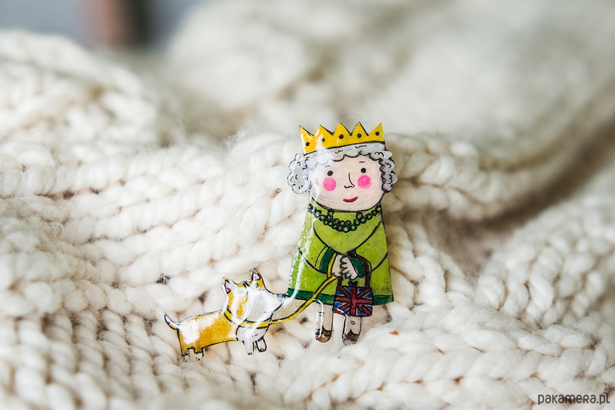 Broszka „Królowa Ela i Jej Corgi” – duet bardziej królewski niż herbata o piątej!