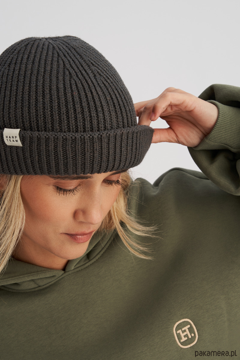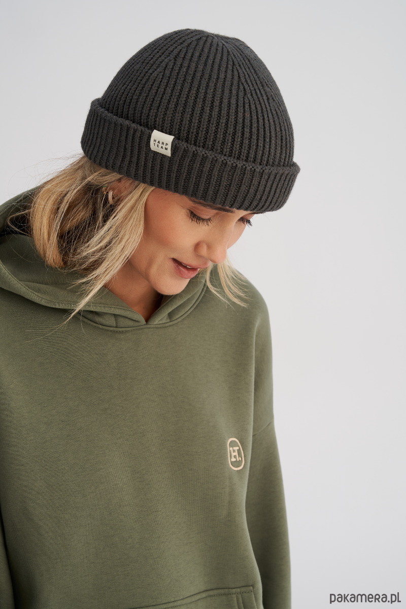 Szeroki prążek i subtelne zdobienie małą metką dodają czapce charakteru, dzięki czemu pasuje zarówno do miejskich stylizacji, jak i outdoorowych zestawów.