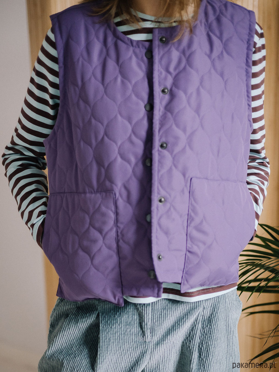Krótka kamizelka z kolekcji Citrus Bloom to doskonały wybór na chłodniejsze dni, kiedy potrzebujesz dodatkowej warstwy ciepła pod płaszczem lub kurtkąi. Świetnie sprawdzi się zarówno w eleganckich zestawach, np. w połączeniu z koszulą do pracy, jak i w casualowych lookach z longsleevem.