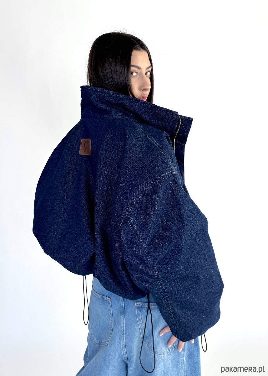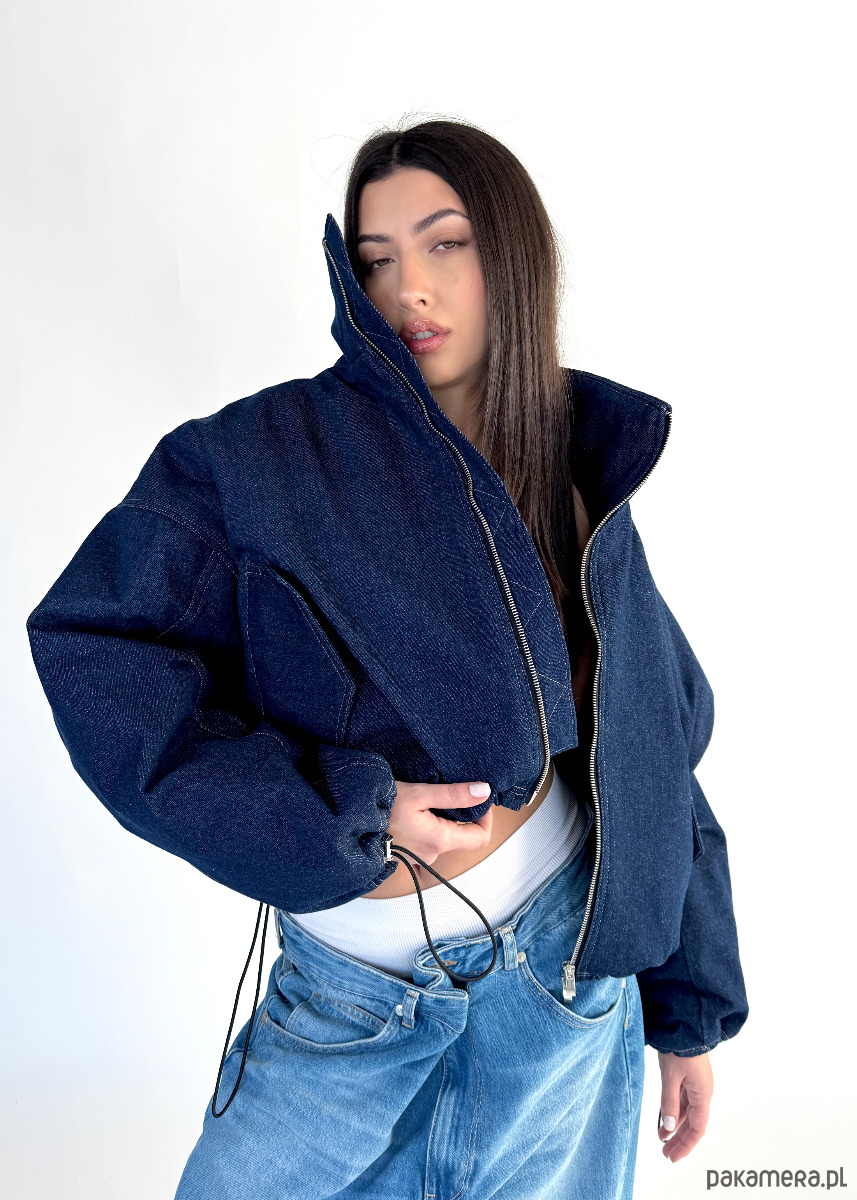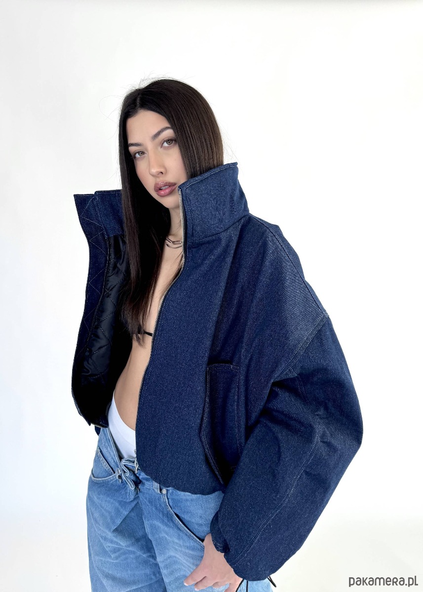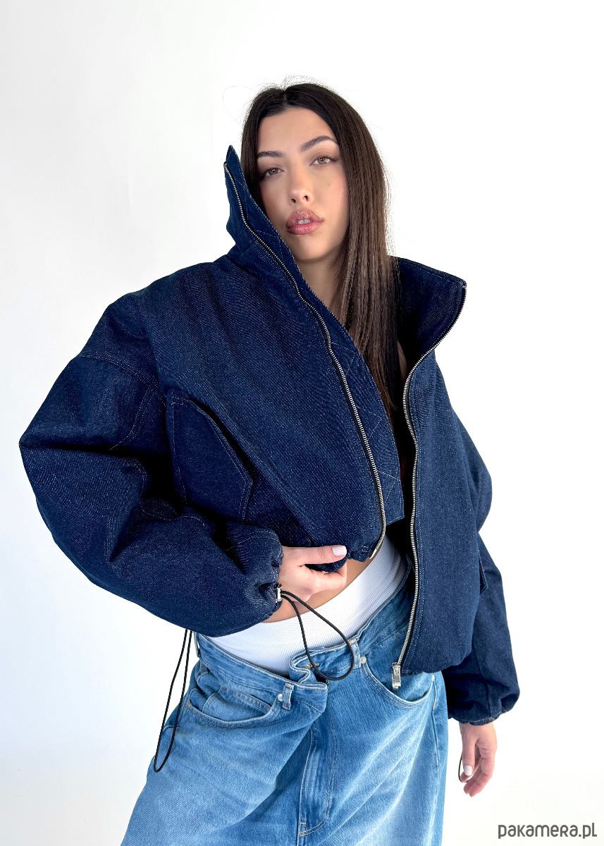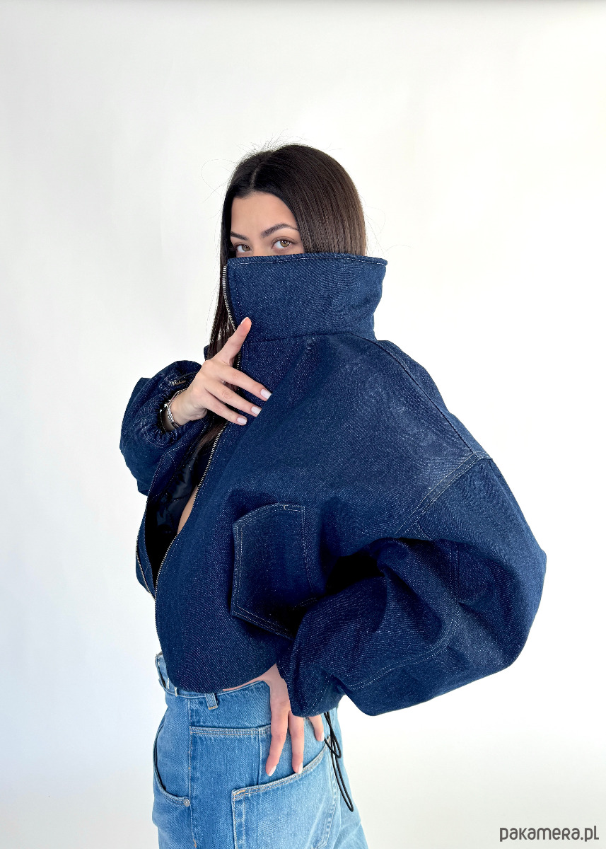 Krótka wersja kurtki bomber naszej bestseller'owej kolekcji 'denim" zapinana na metalowy zamek, uszyta z najlepszej jakości denimu w kolorze dark blue
