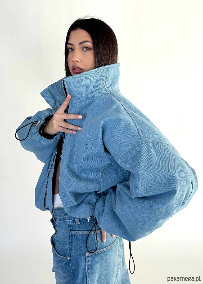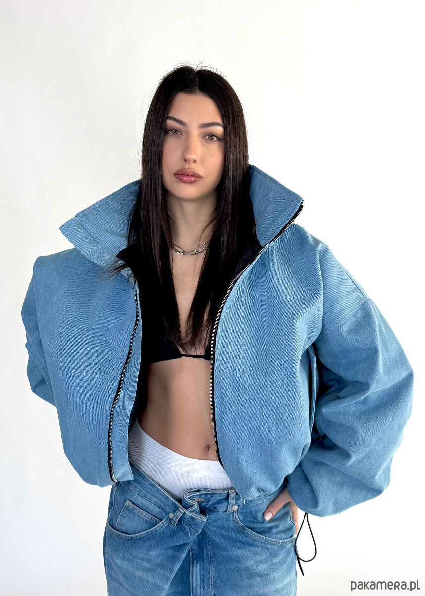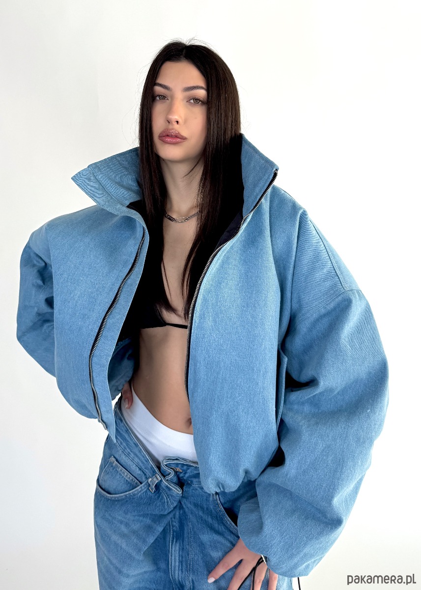 Krótka wersja kurtki bomber naszej bestseller'owej kolekcji 'denim" zapinana na metalowy zamek, uszyta z najlepszej jakości denimu w kolorze light blue