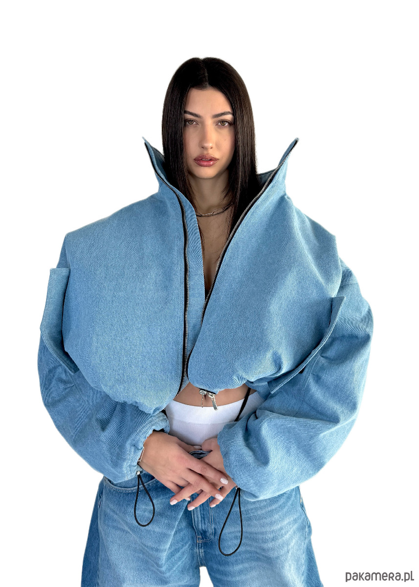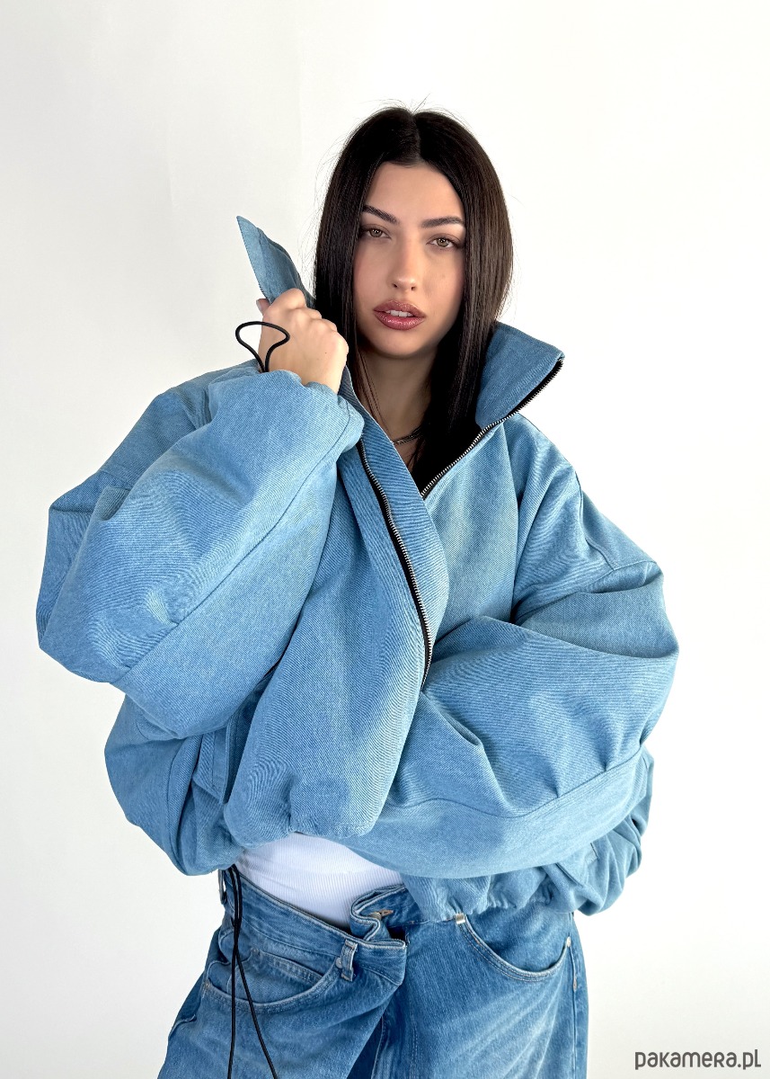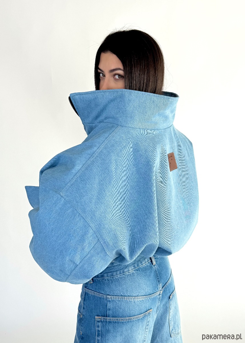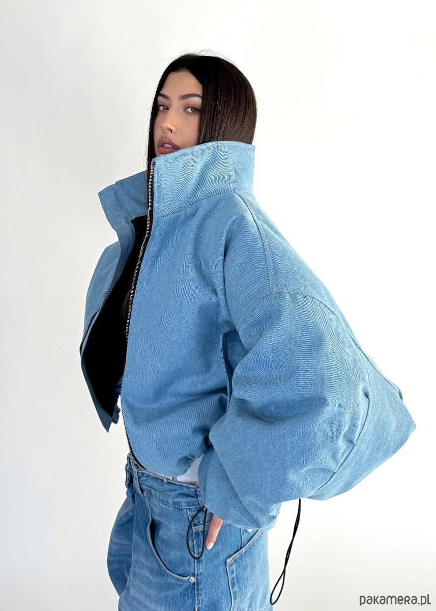 Krótka wersja kurtki bomber naszej bestseller'owej kolekcji 'denim" zapinana na metalowy zamek, uszyta z najlepszej jakości denimu w kolorze light blue
