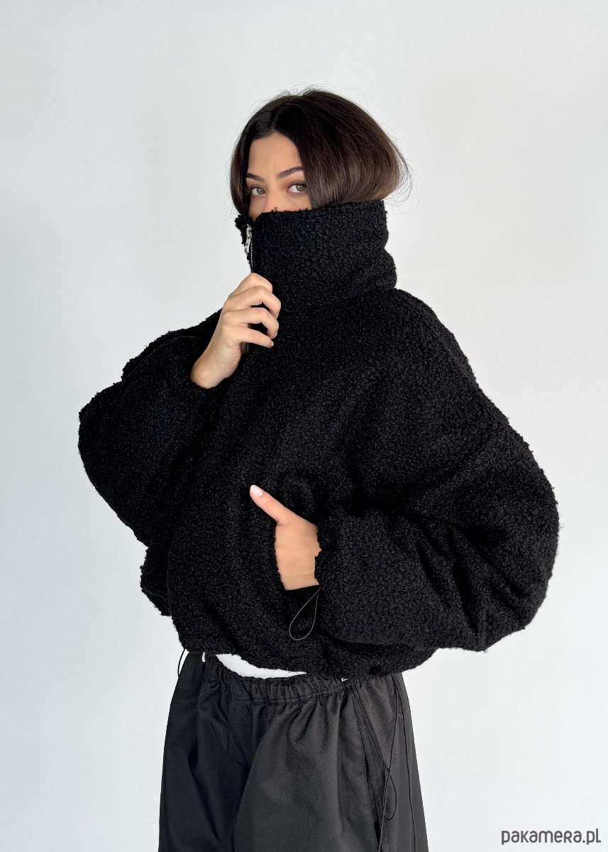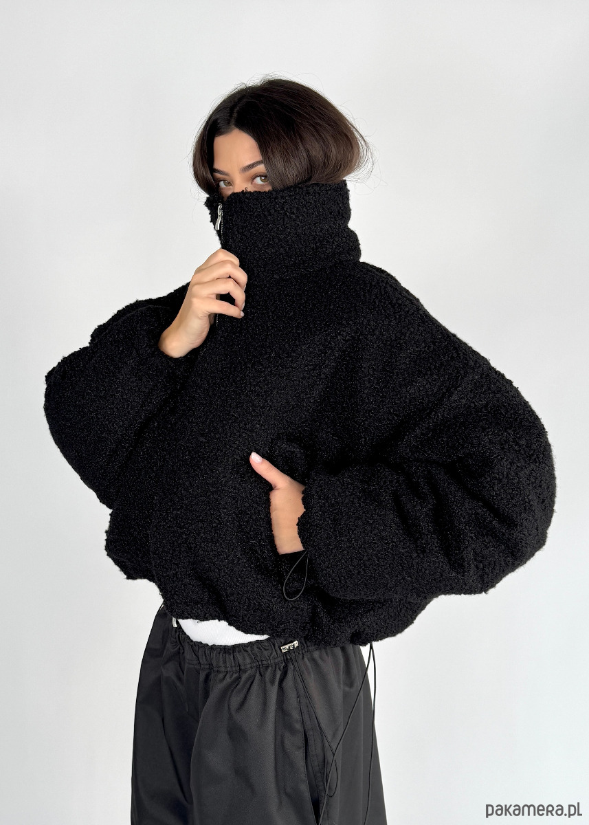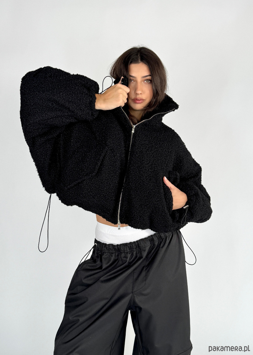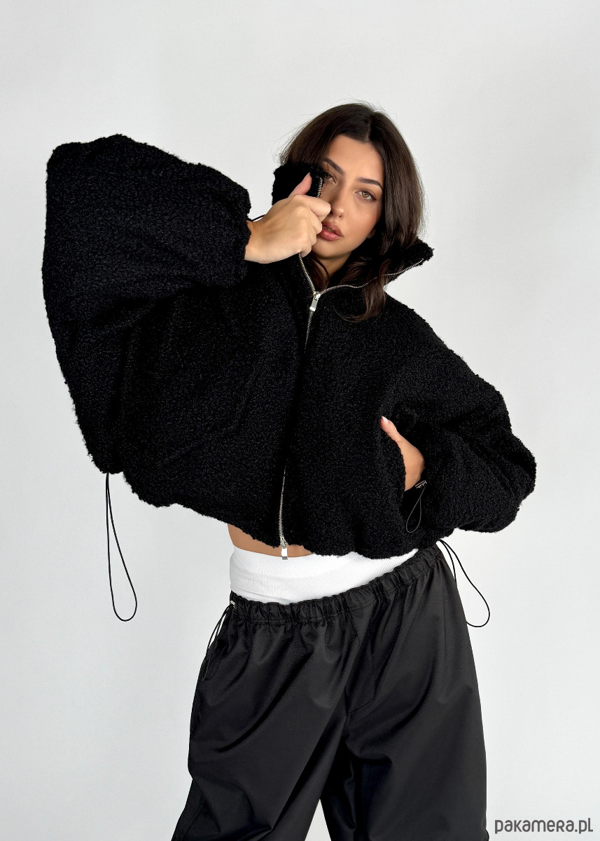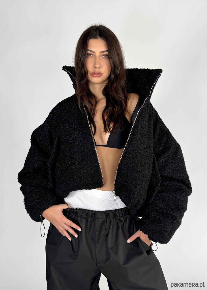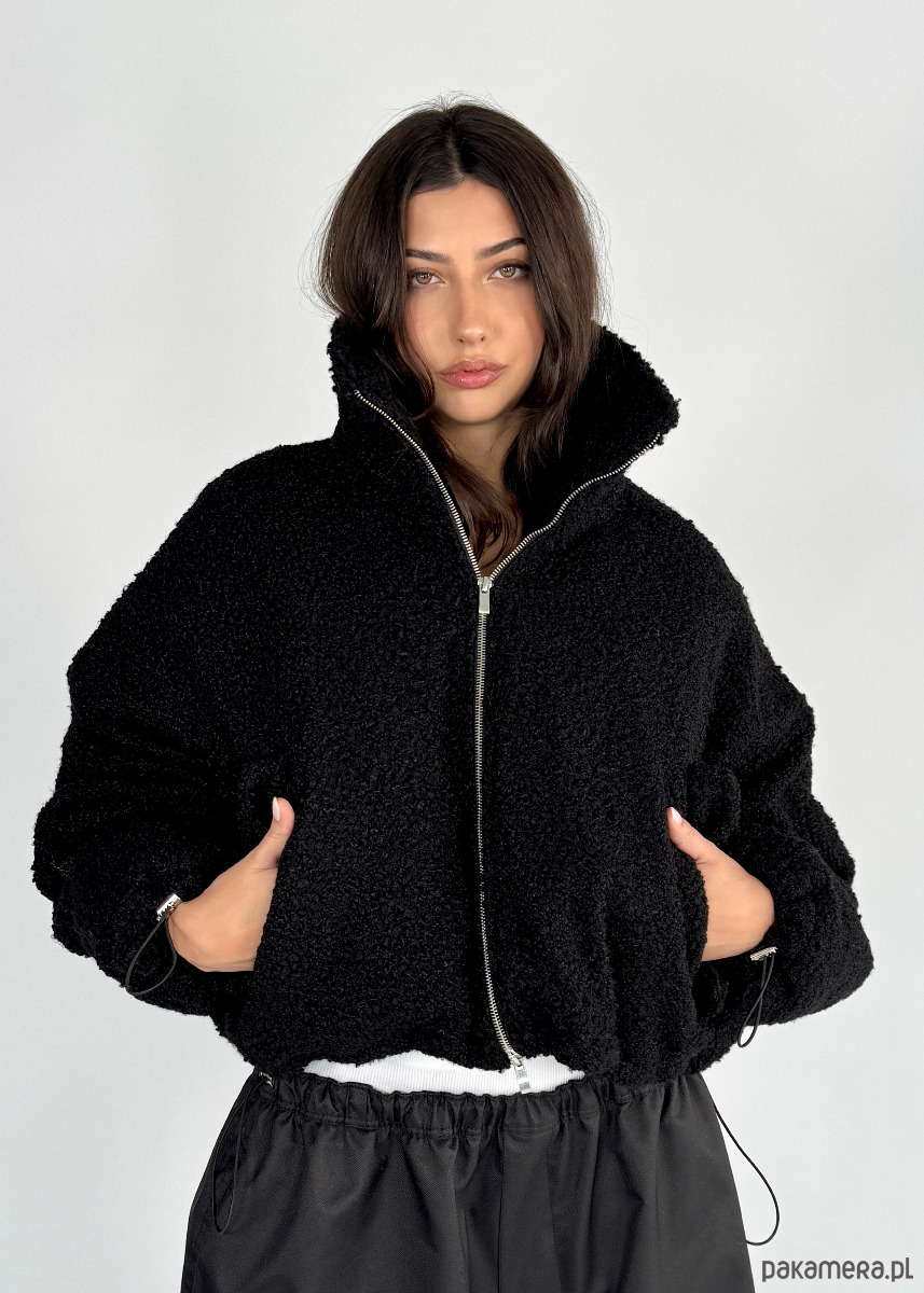 Krótka wersja naszego klasyka "teddy bomber" o strukturze "baranka" w kolorze czarnym, zapinana na metalowy zamek