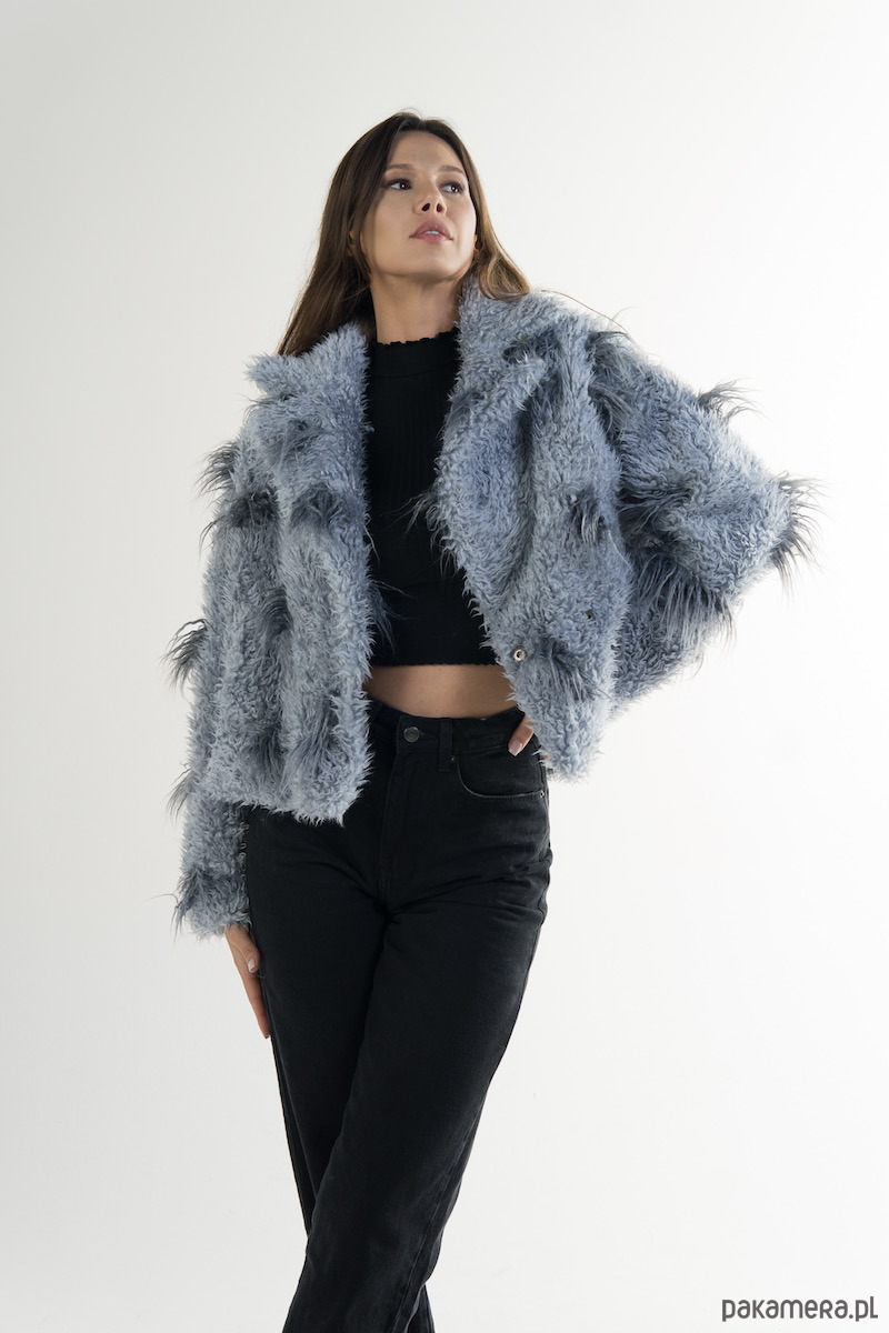 Krótka szara kurtka ze sztucznego futra GRAY LLAMA