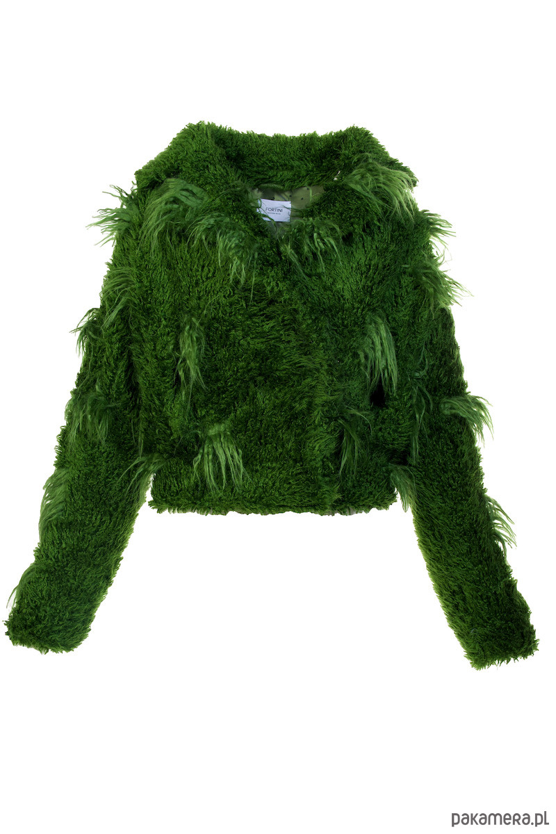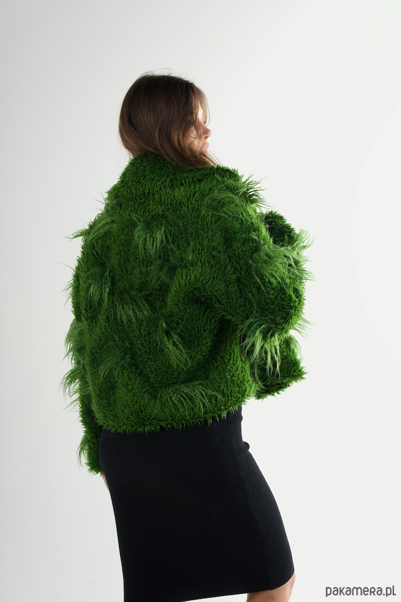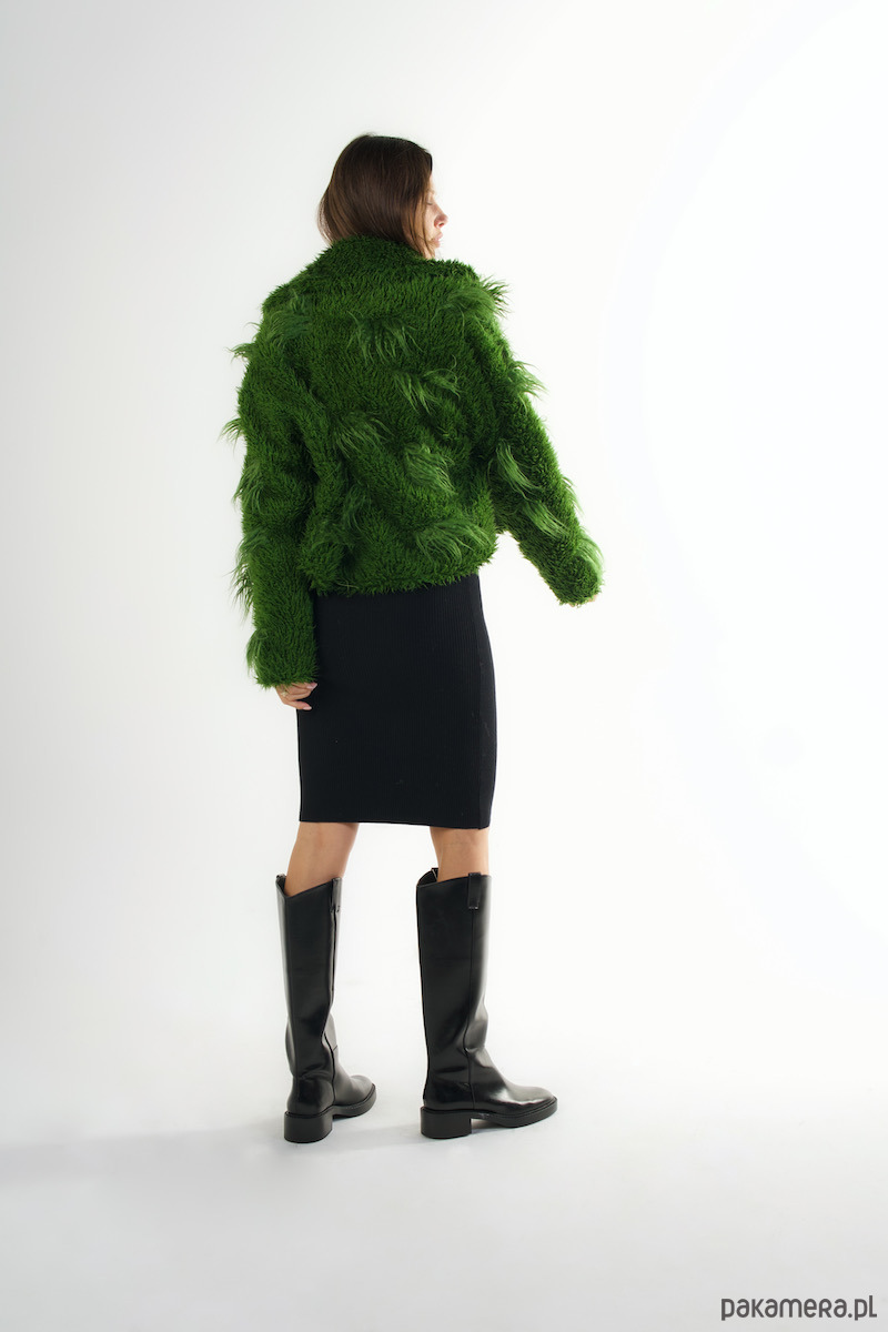 Krótka zielona kurtka ze sztucznego futra GREEN LLAMA