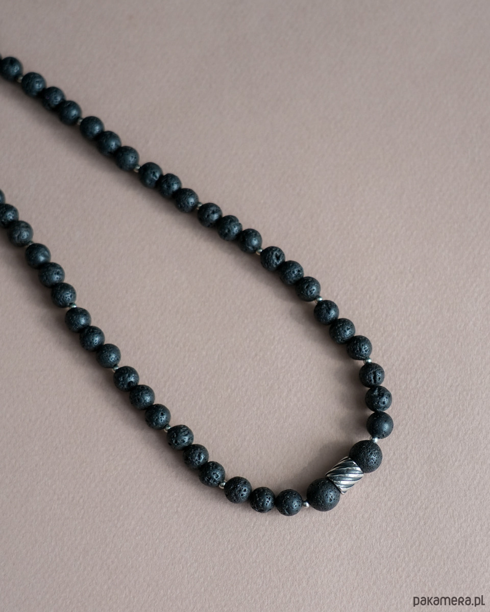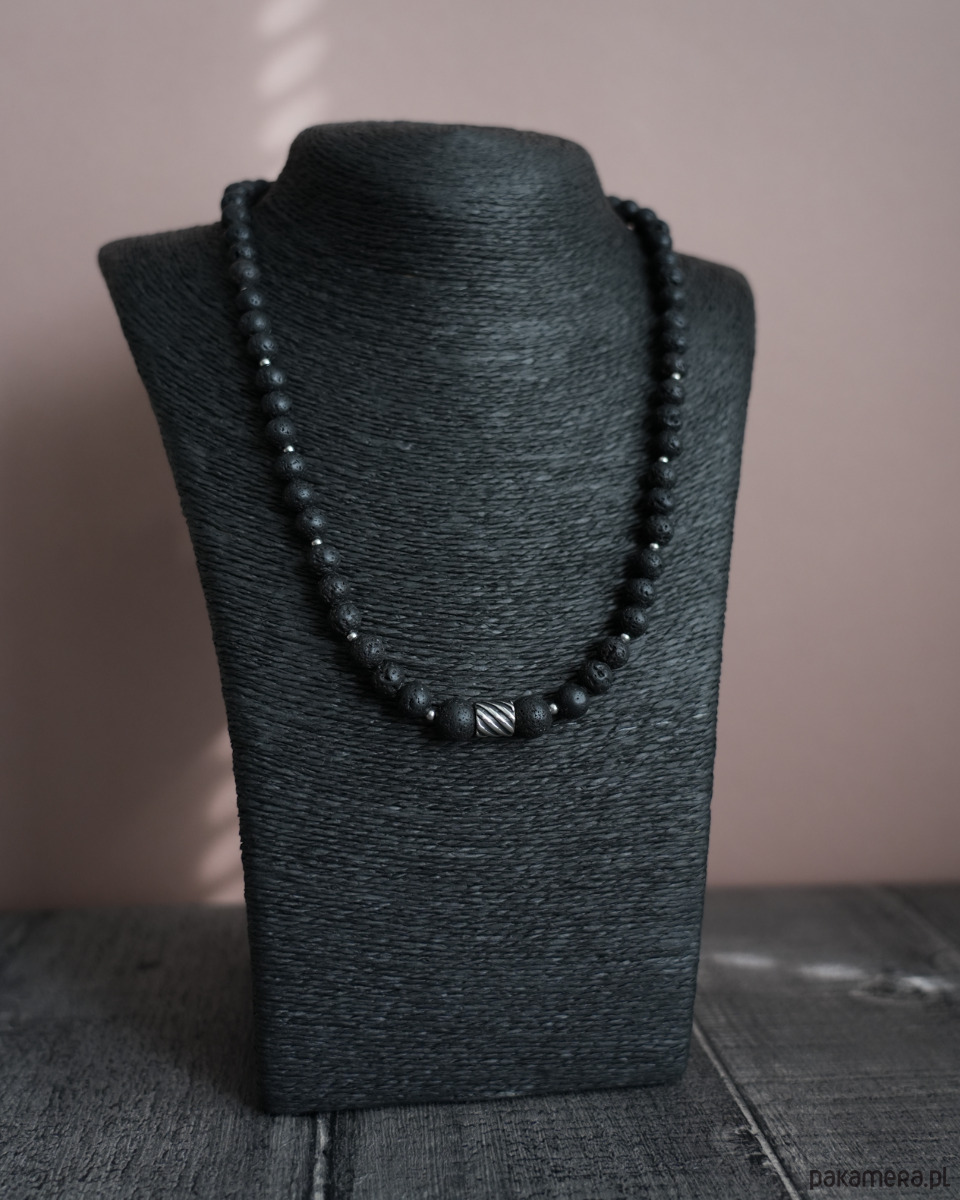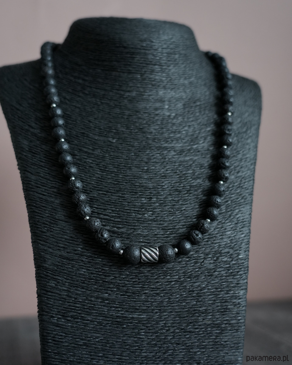 Krótki, męski naszyjnik w całości wykonany z surowej LAWY WULKANICZNEJ oraz STALI SZLACHETNEJ. Minimalistyczny, ale wyrazisty.