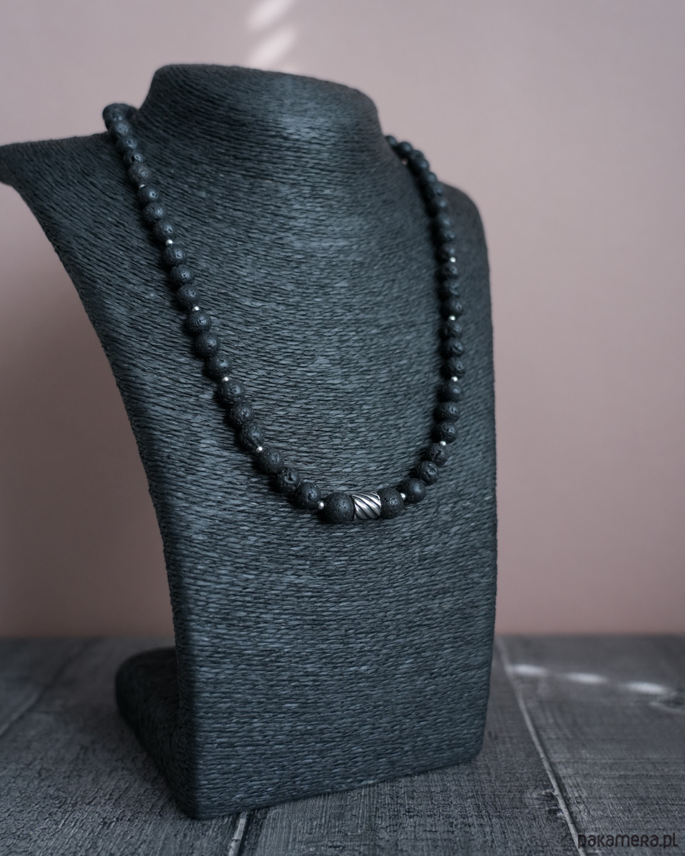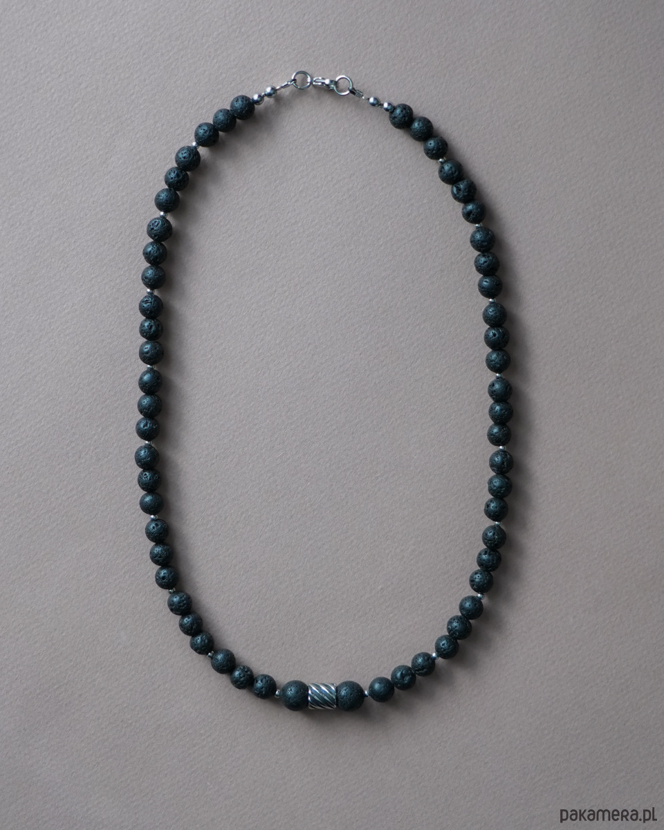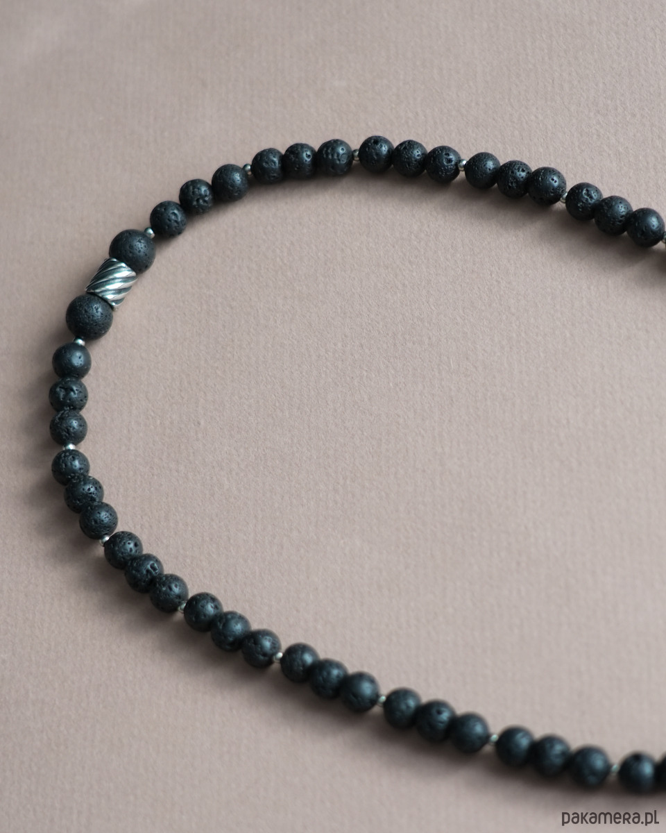 Krótki, męski naszyjnik w całości wykonany z surowej LAWY WULKANICZNEJ oraz STALI SZLACHETNEJ. Minimalistyczny, ale wyrazisty.