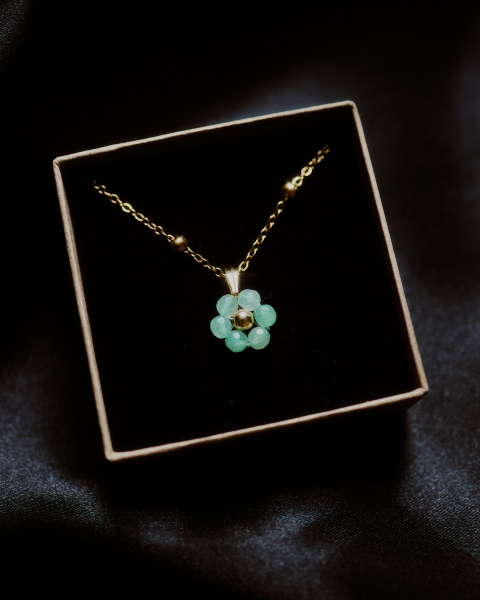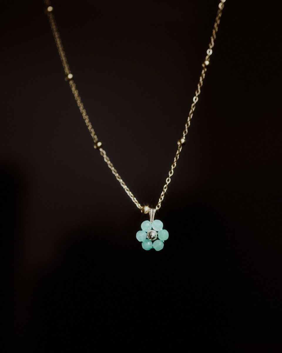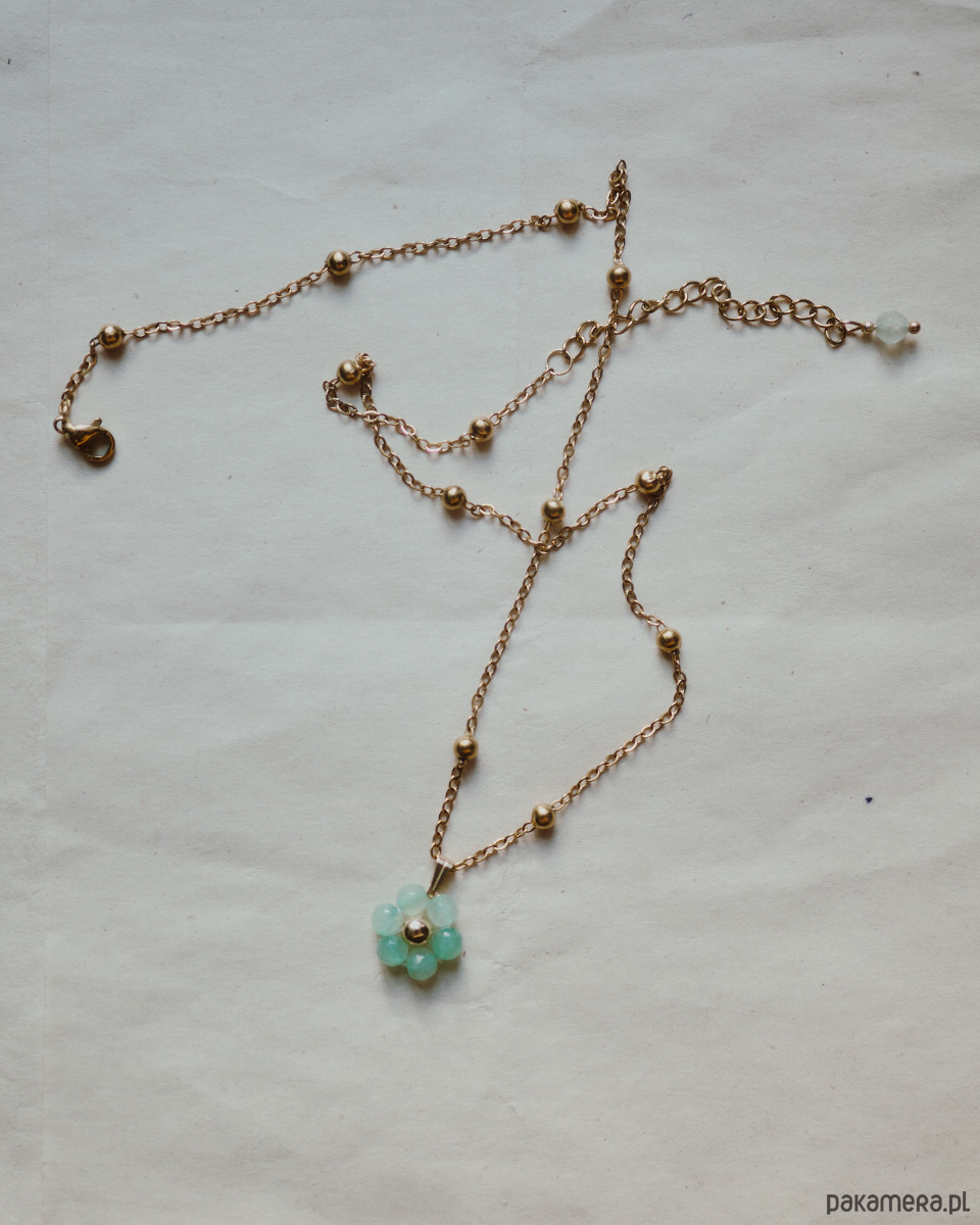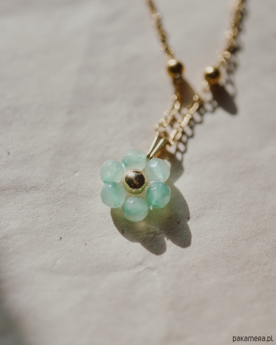 Naszyjniki ᴄᴏʀᴇ to kryształowe, wieczne kwiaty, tańsze niż bukiet. Naszyjnik z kwiatem wykonanym z morskiego awenturynu. Łańcuszek ozdobiony kuleczkami. Idealnie sprawdzi się jako rękodzielniczy prezent z właściwościami dobranymi do osoby obdarowywanej (lub dla siebie!).