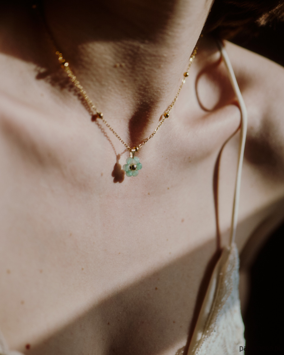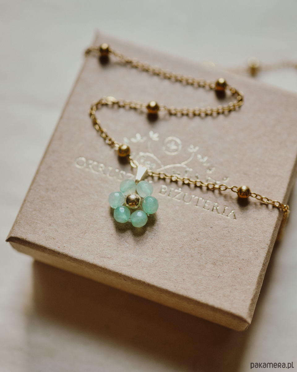 Naszyjniki ᴄᴏʀᴇ to kryształowe, wieczne kwiaty, tańsze niż bukiet. Naszyjnik z kwiatem wykonanym z morskiego awenturynu. Łańcuszek ozdobiony kuleczkami. Idealnie sprawdzi się jako rękodzielniczy prezent z właściwościami dobranymi do osoby obdarowywanej (lub dla siebie!).