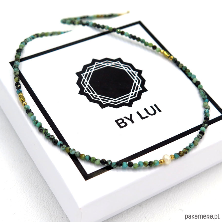 Krótki Naszyjnik Turkus Afrykański & Perła SAVANNA GOLD PEARL