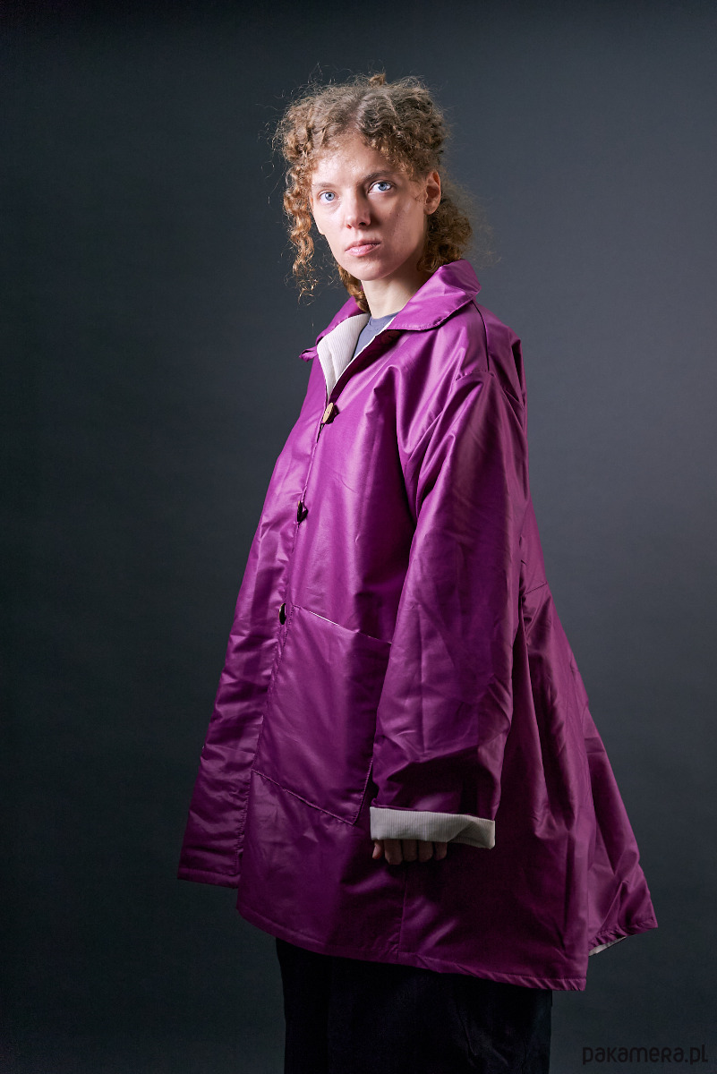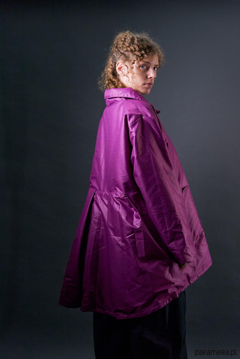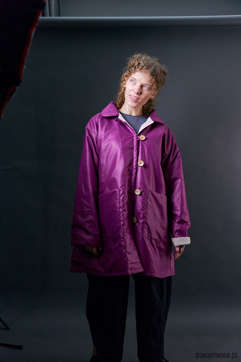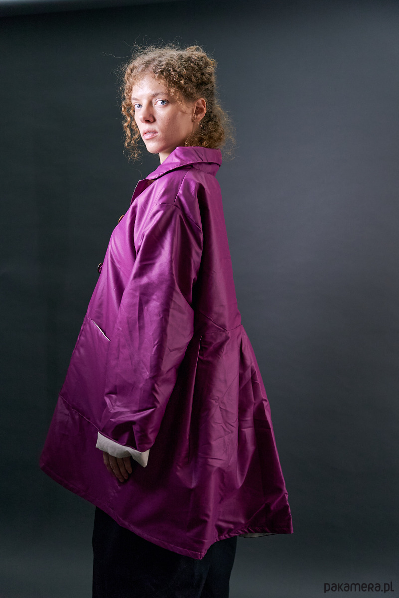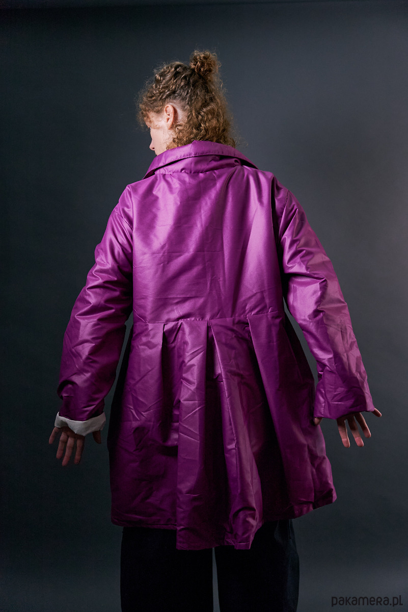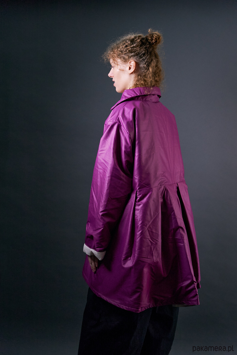 Krótki płaszczyk nabłyszczany ocieplany fioletowy oversize