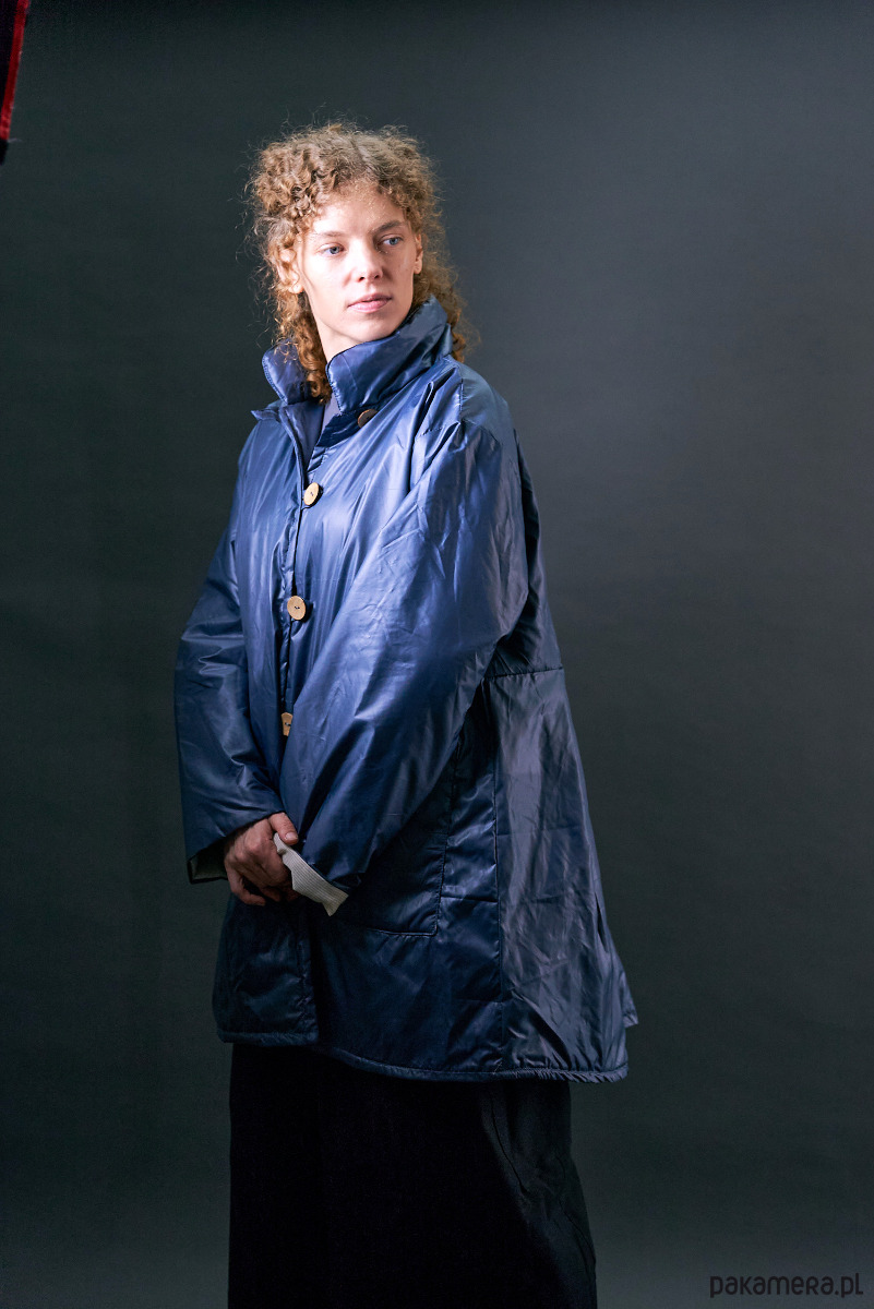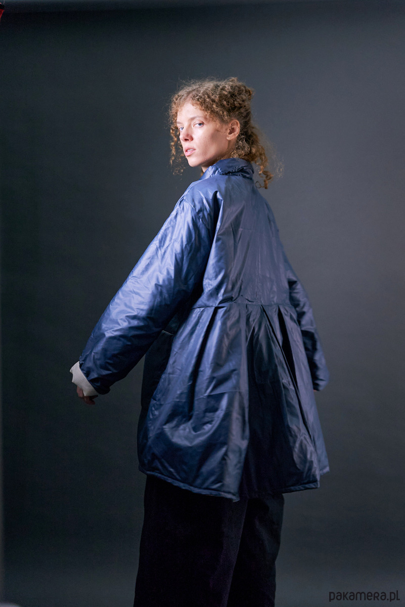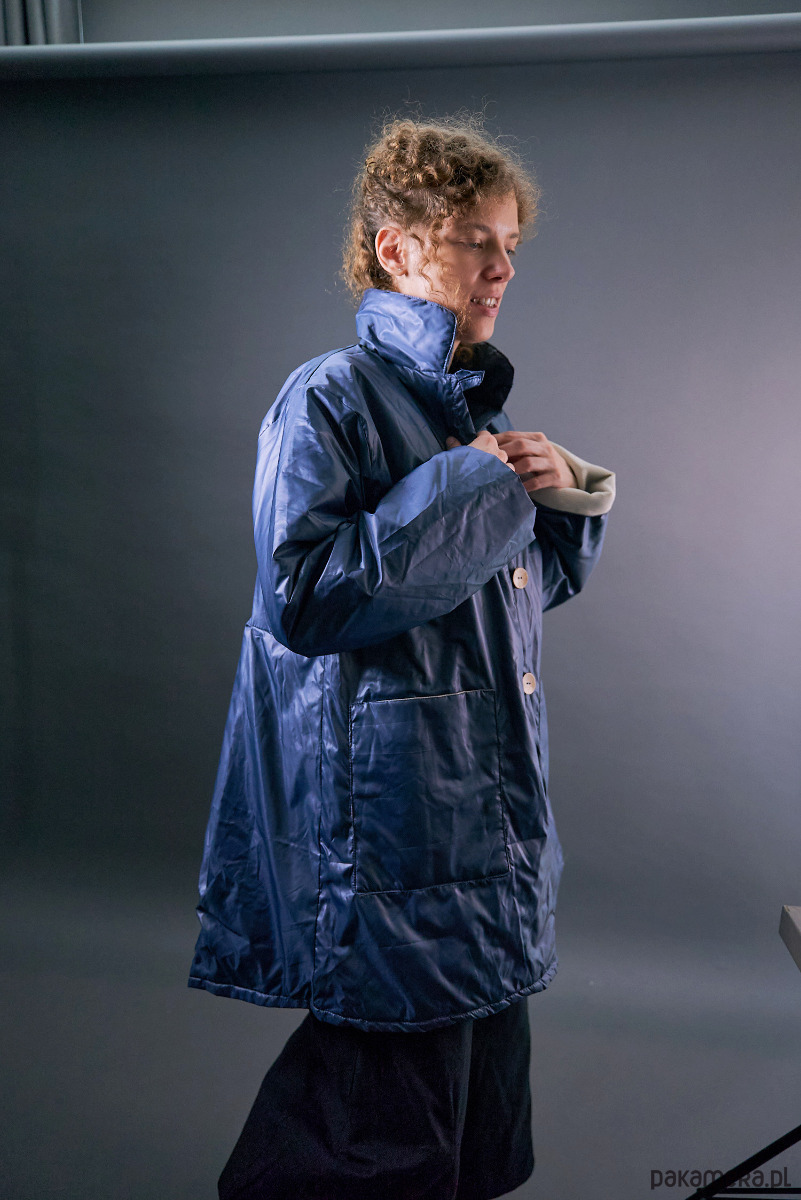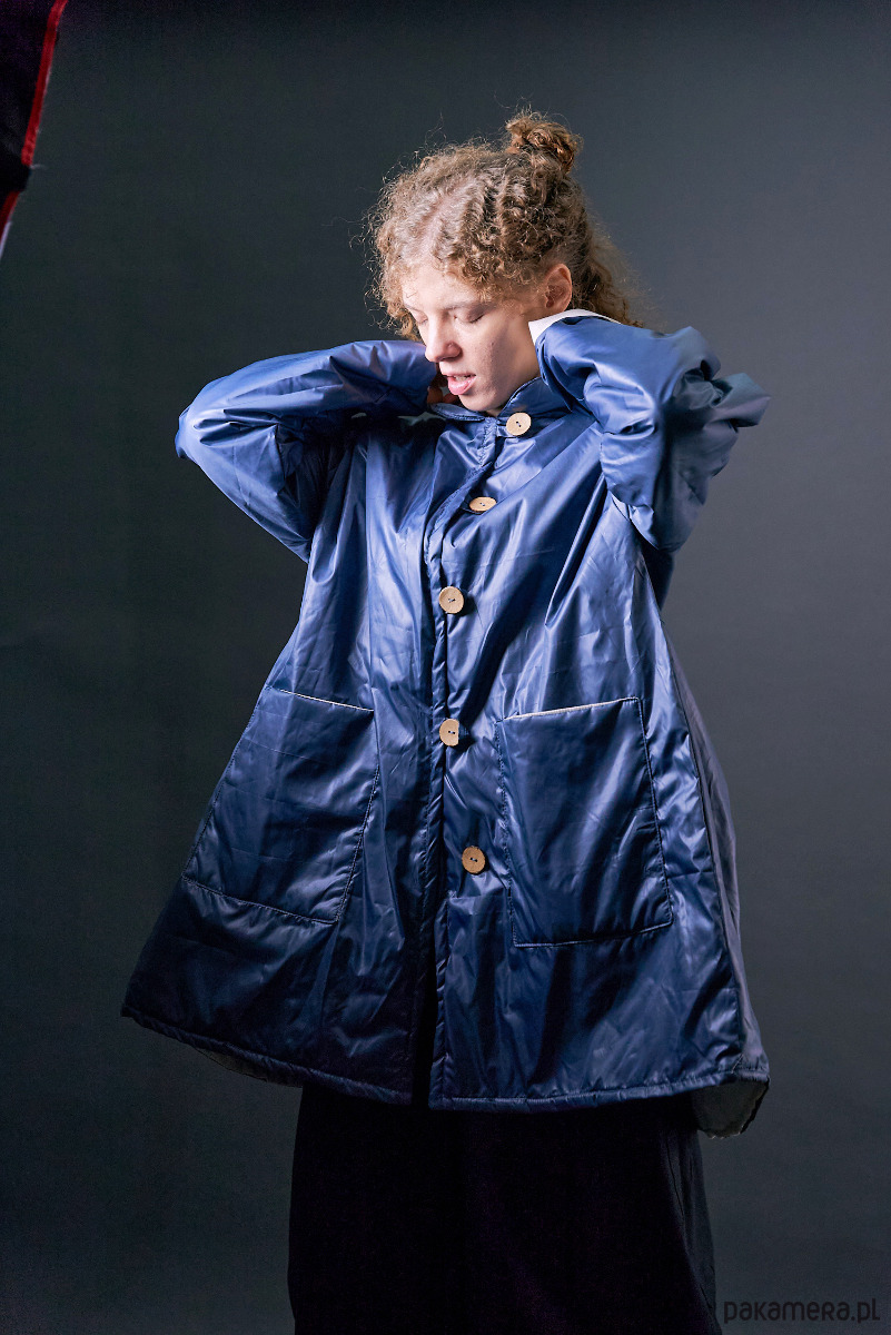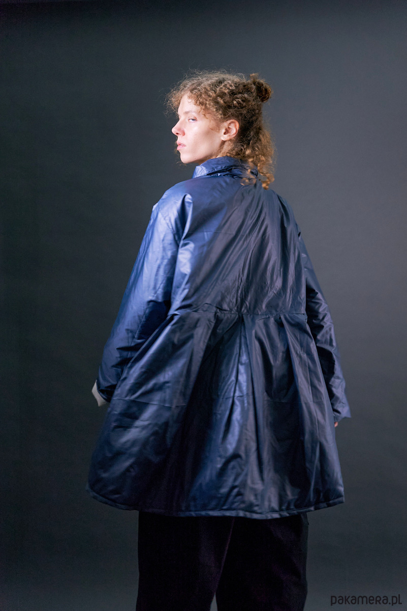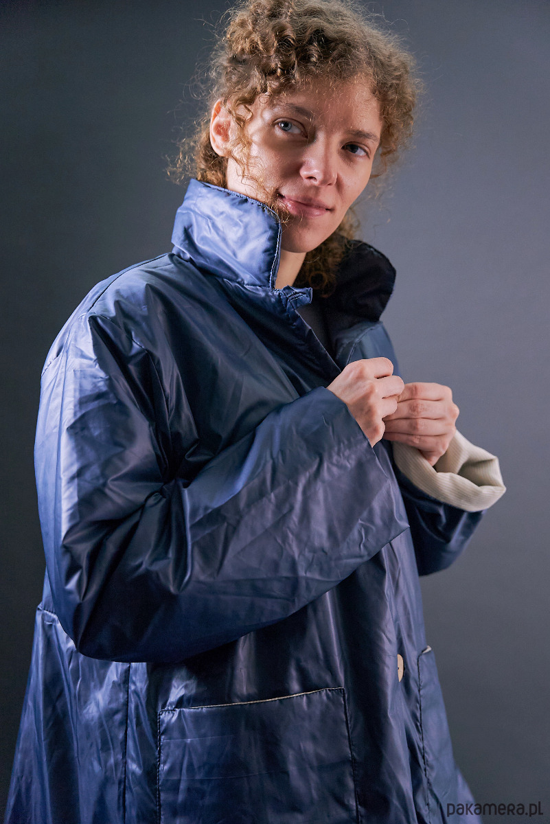 Krótki płaszczyk nabłyszczany ocieplany niebieski oversize