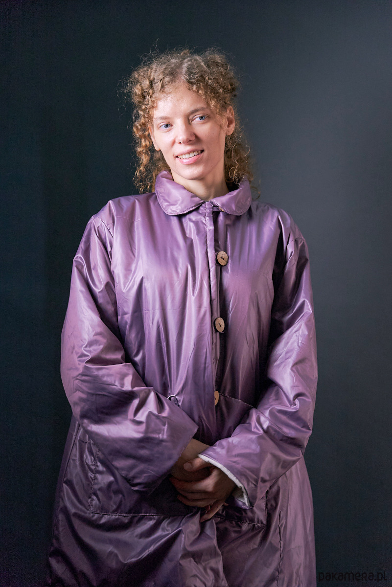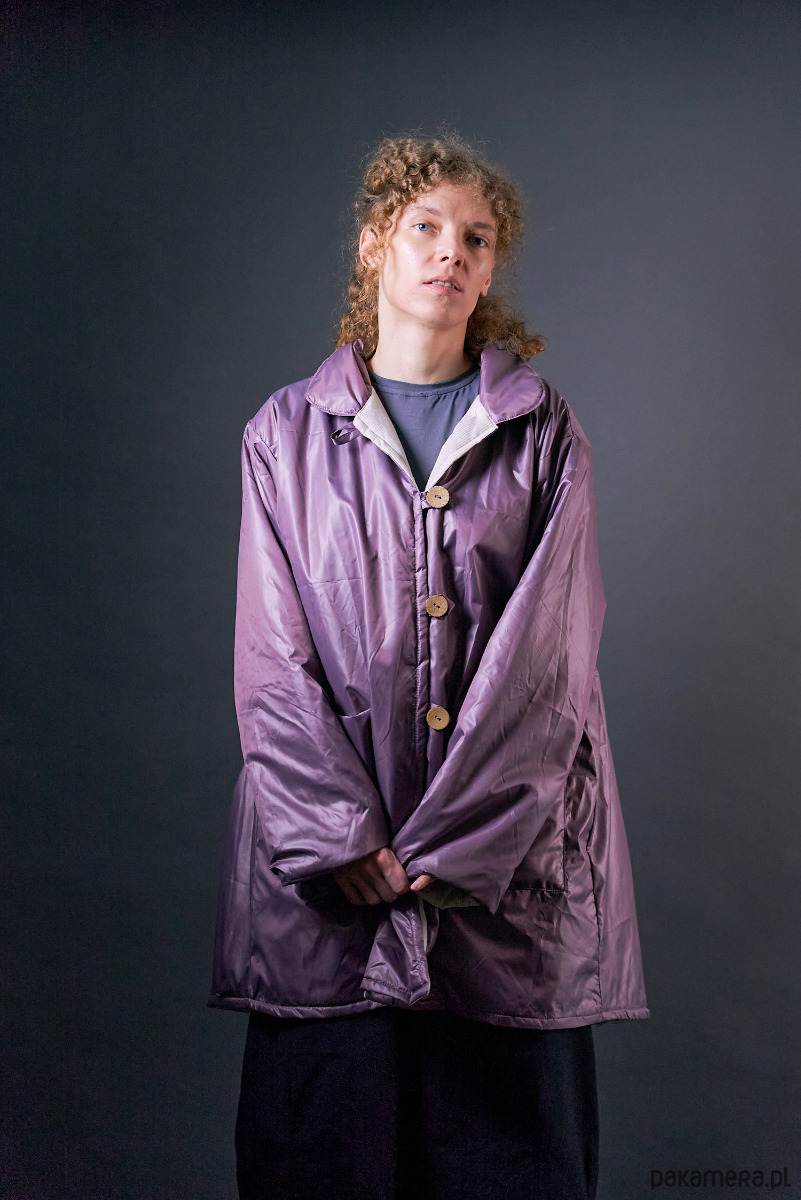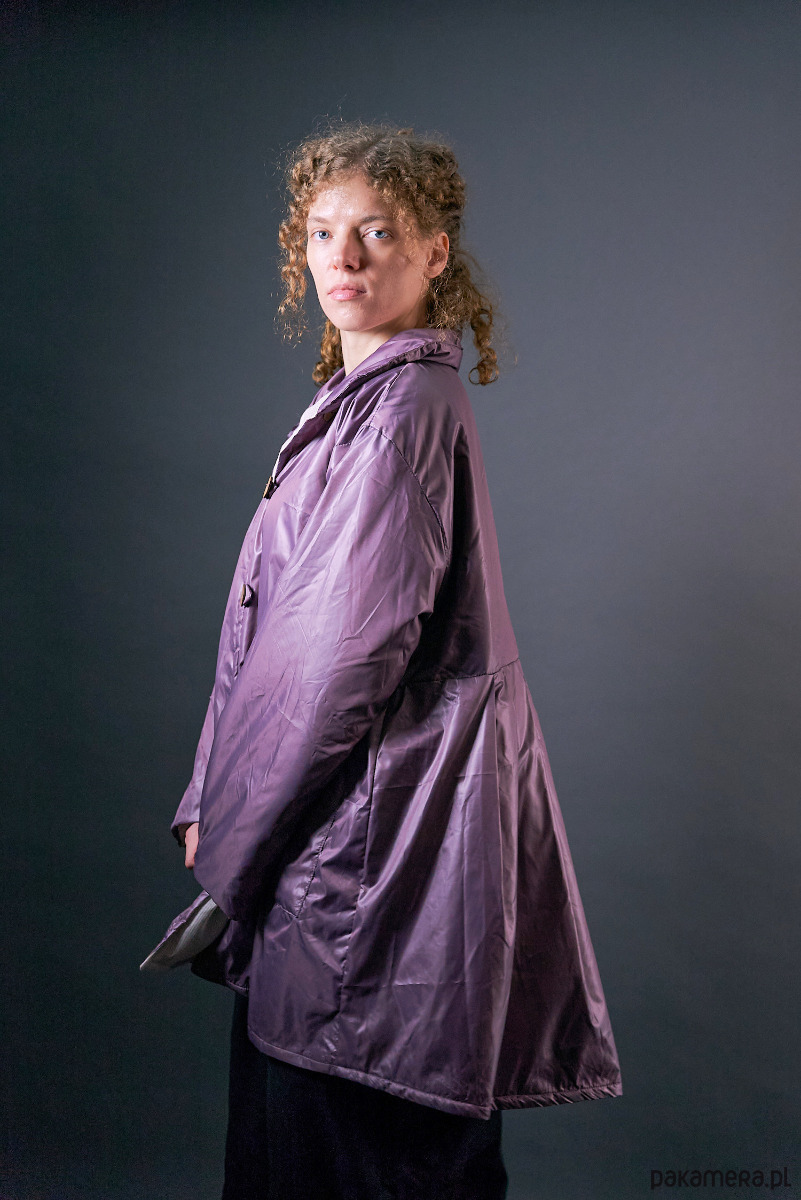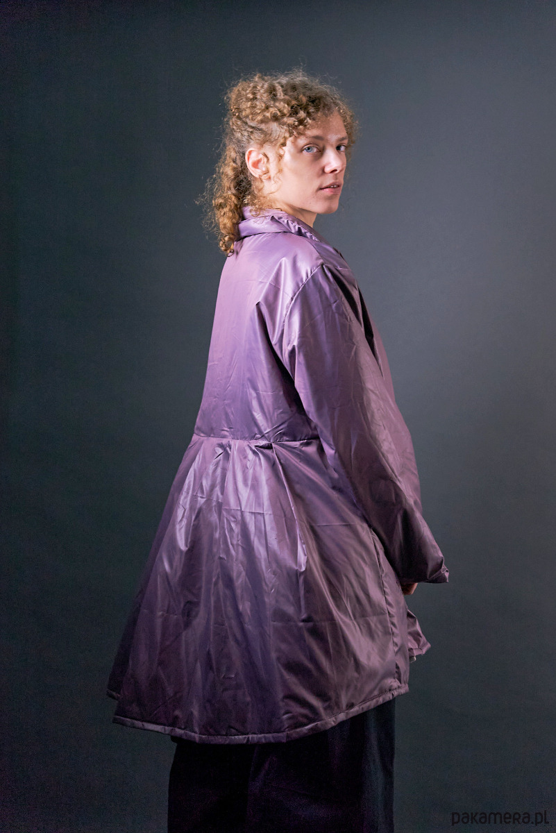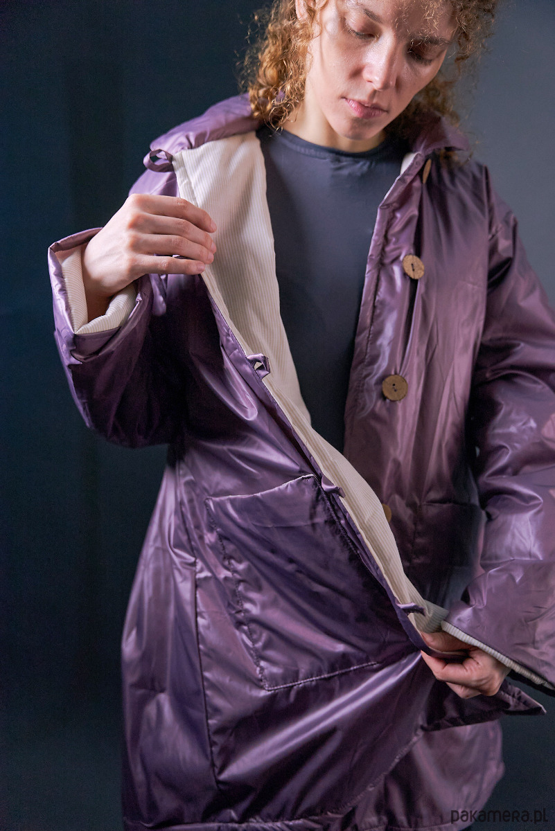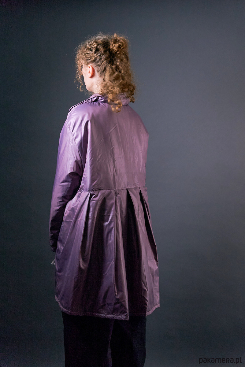 Krótki płaszczyk nabłyszczany ocieplany oversize jasny fiolet