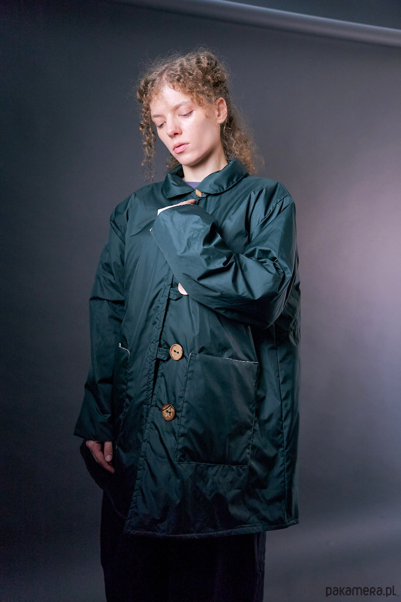 Krótki płaszczyk nabłyszczany ocieplany zielony oversize