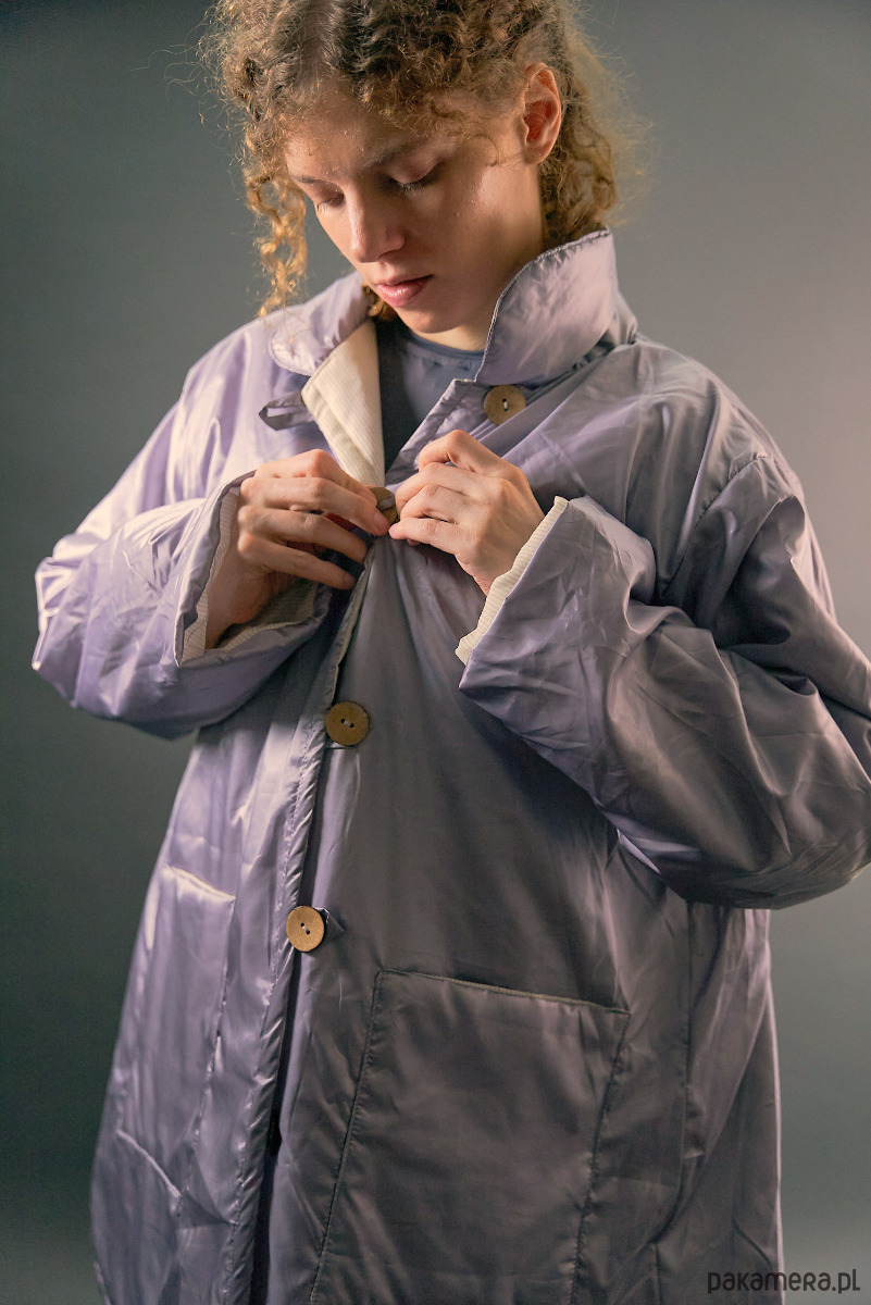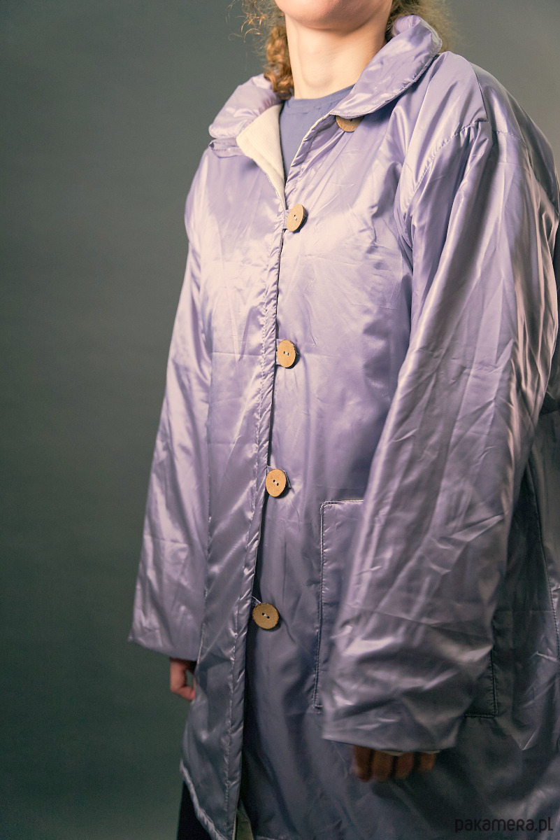 Krótki płaszczyk nabłyszczany ocieplany srebrny