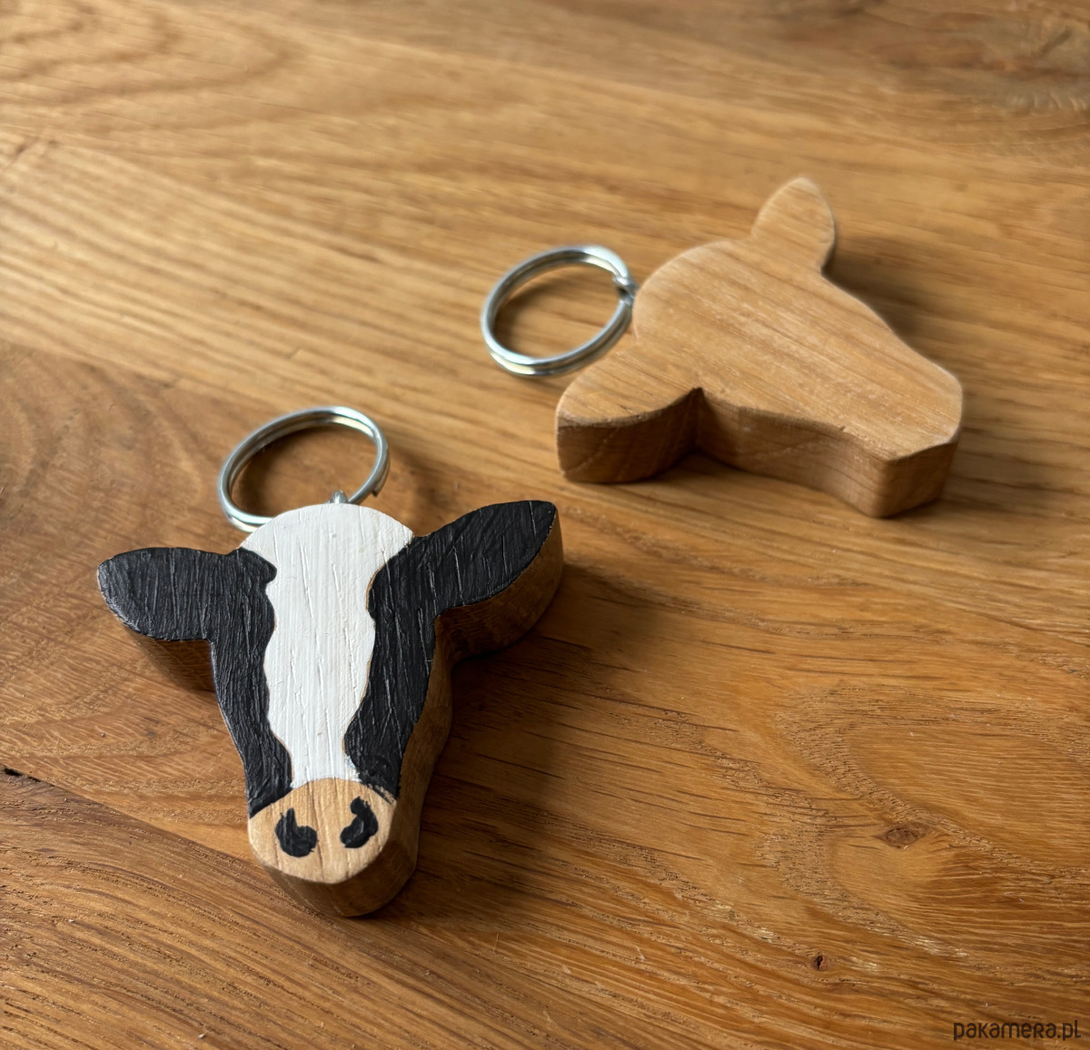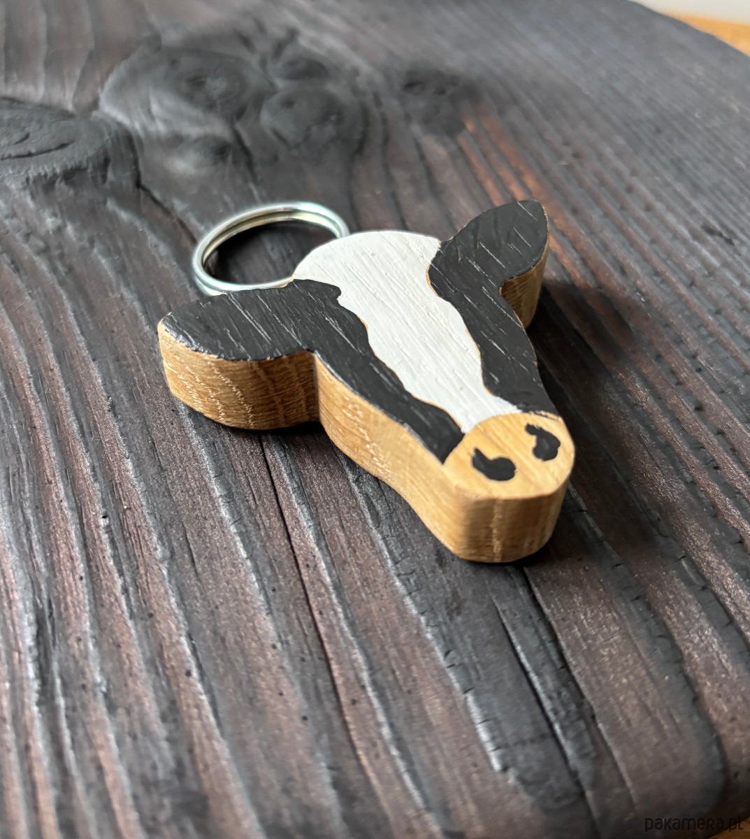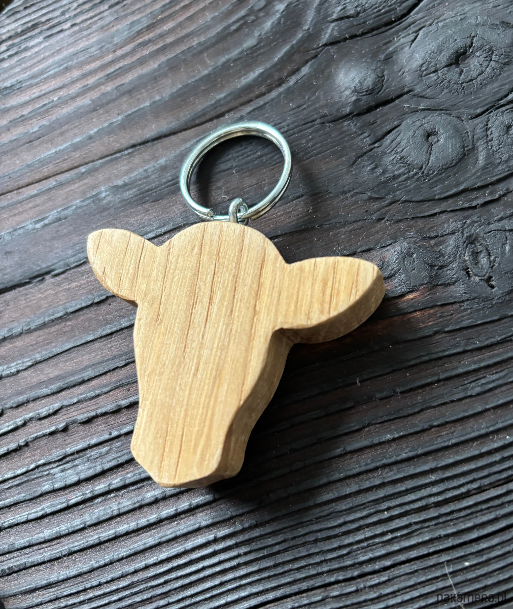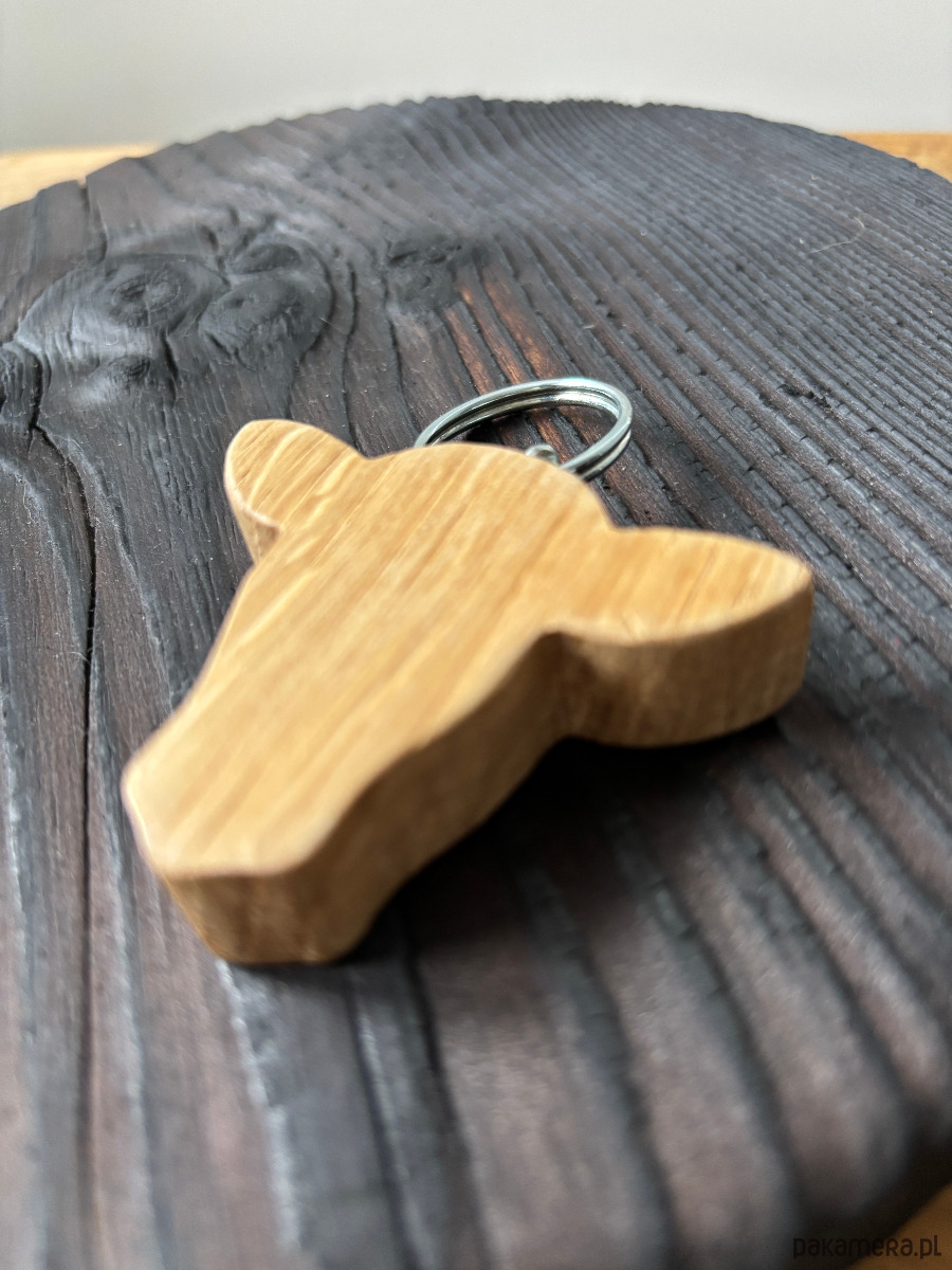 Dębowy brelok w kształcie domku. Dostępny w wersjach: naturalny dąb lub czarny.
