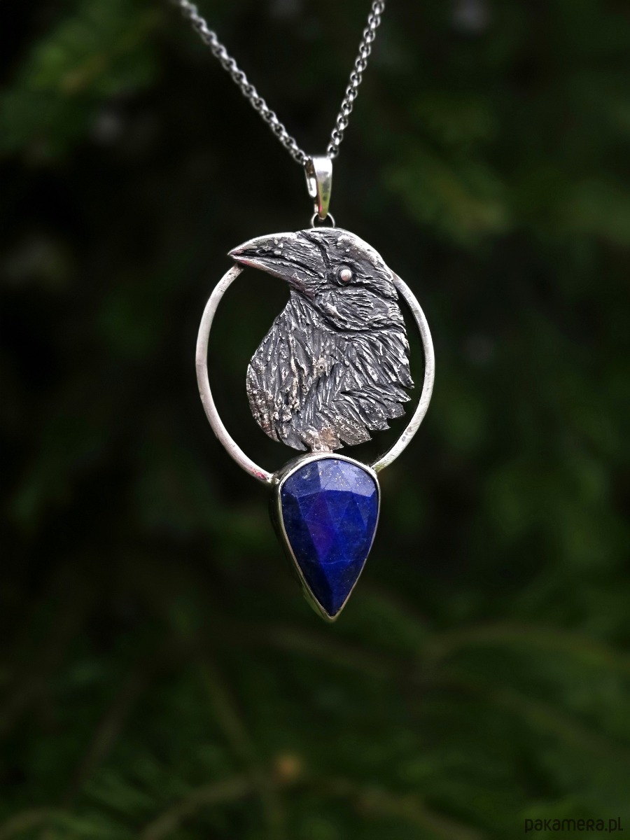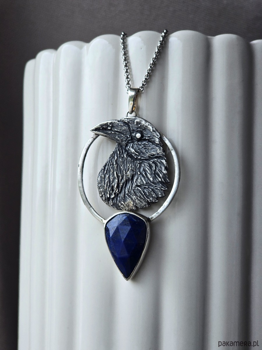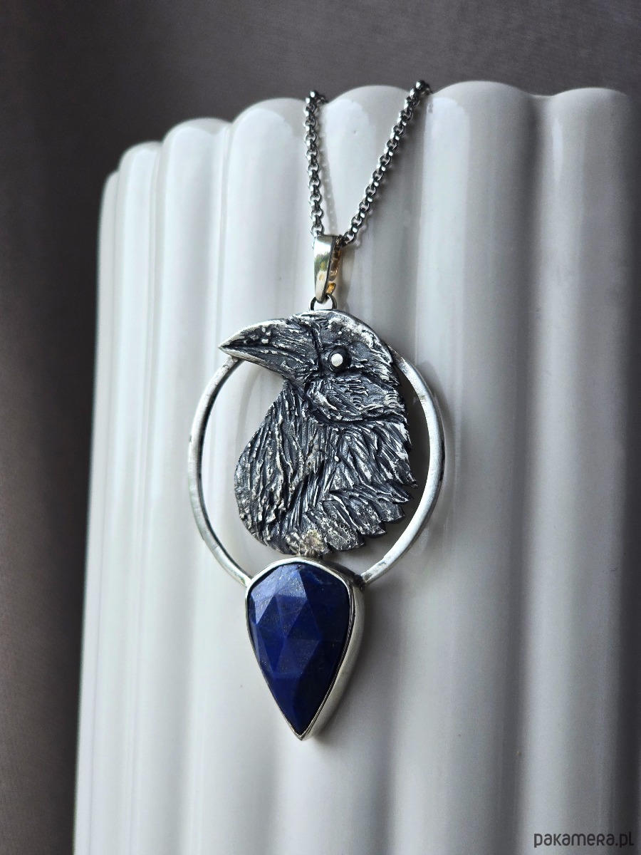 Kruk- Srebrny naszyjnik z lapis lazuli