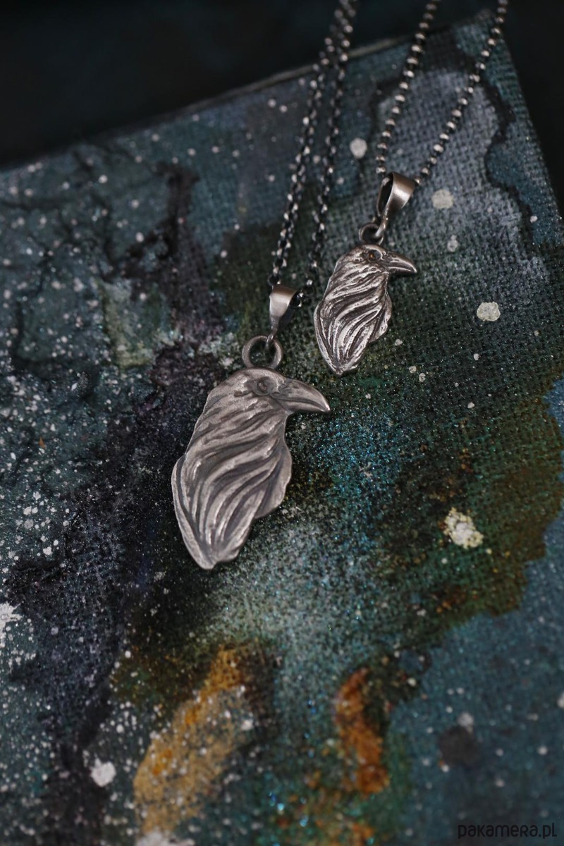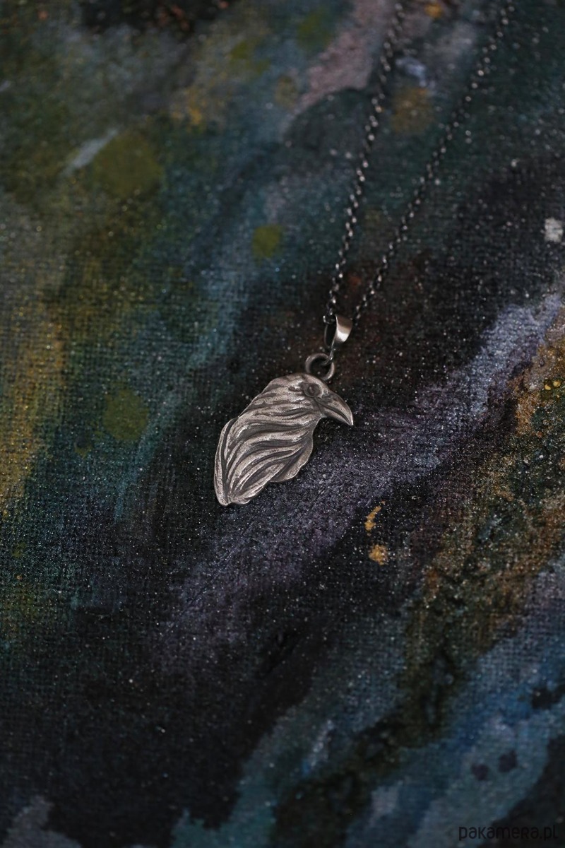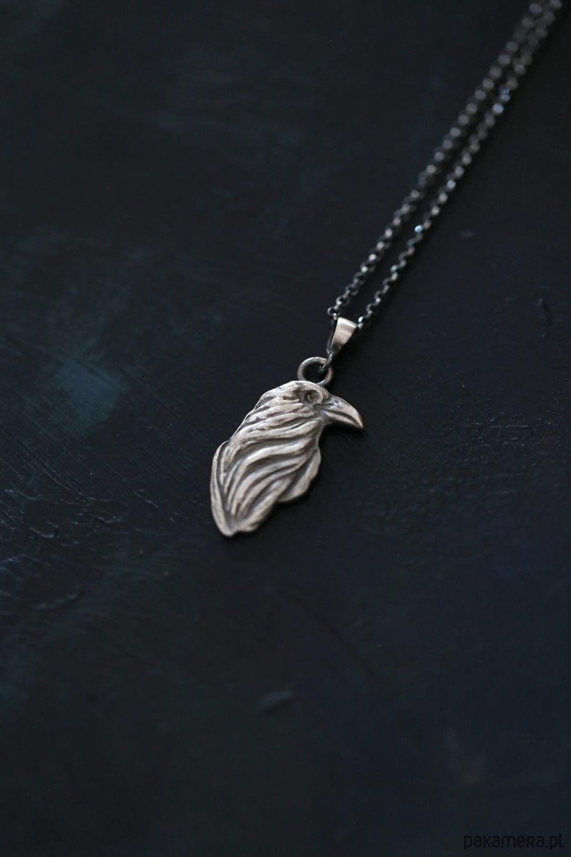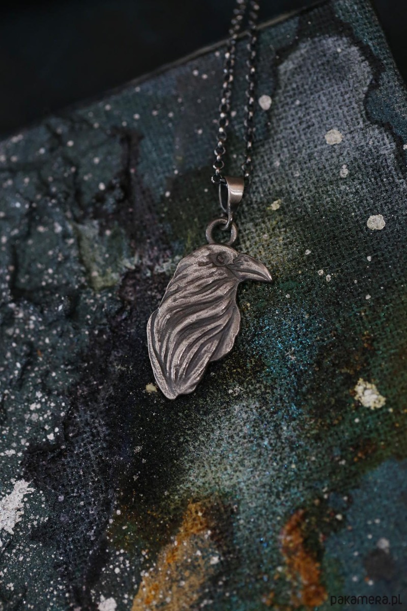 Wisior z krukiem wykonany ze srebra próby 925 + srebrny łańcuszek z przedłużką.