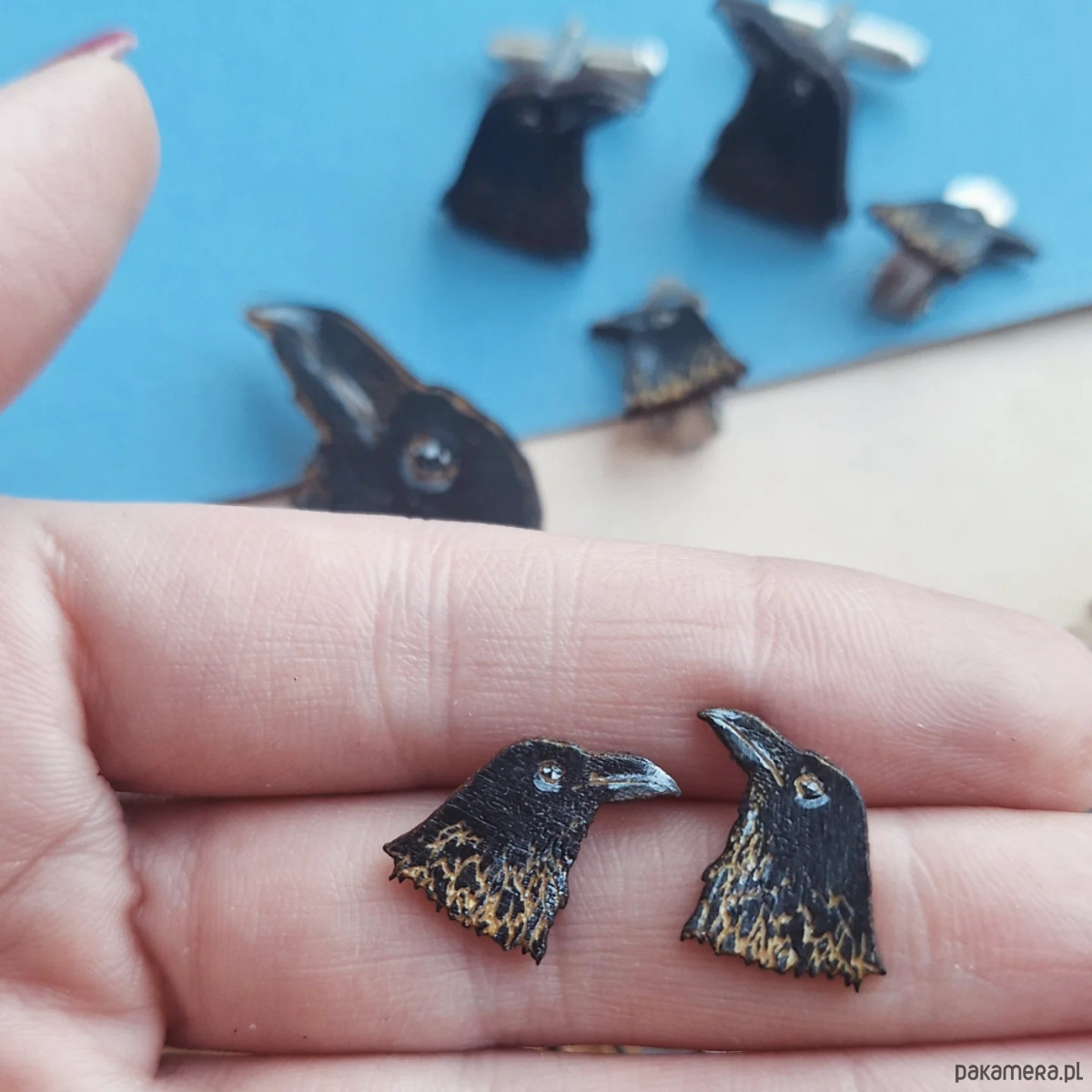Lekkie kolczyki -sztyfty wykonane na podstawie autorskiego rysunku. Zrobione z drewna, ręcznie malowane i lakierowane. Każda para będzie niepowtarzalna. Wielkość ok 1,3cm.