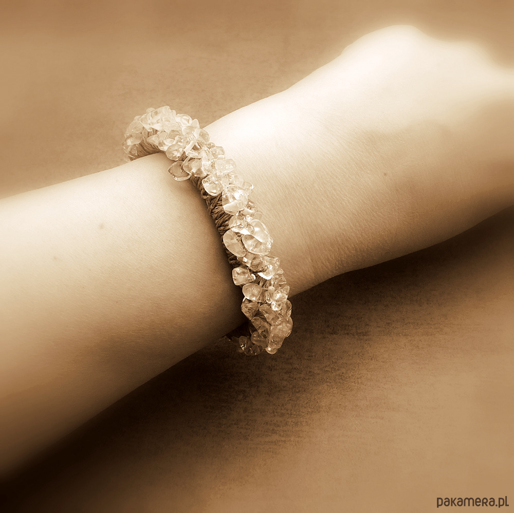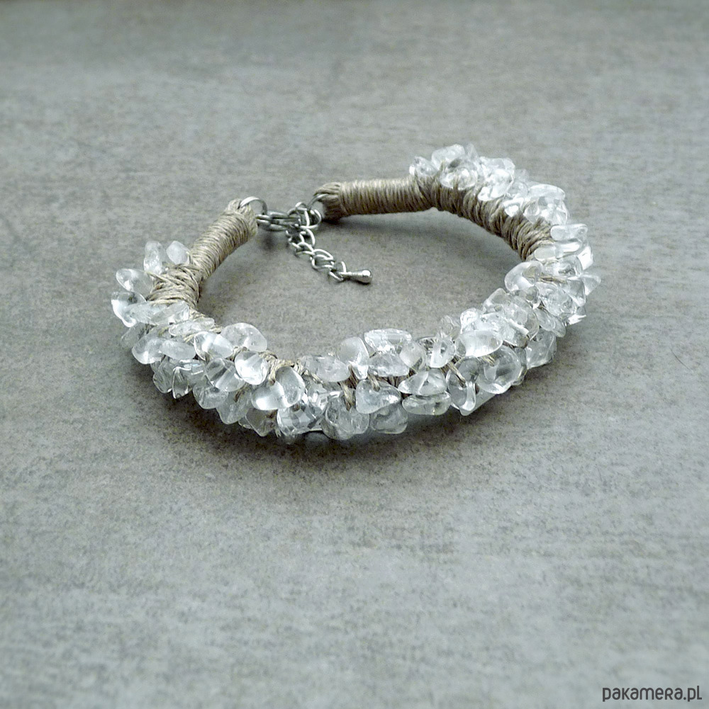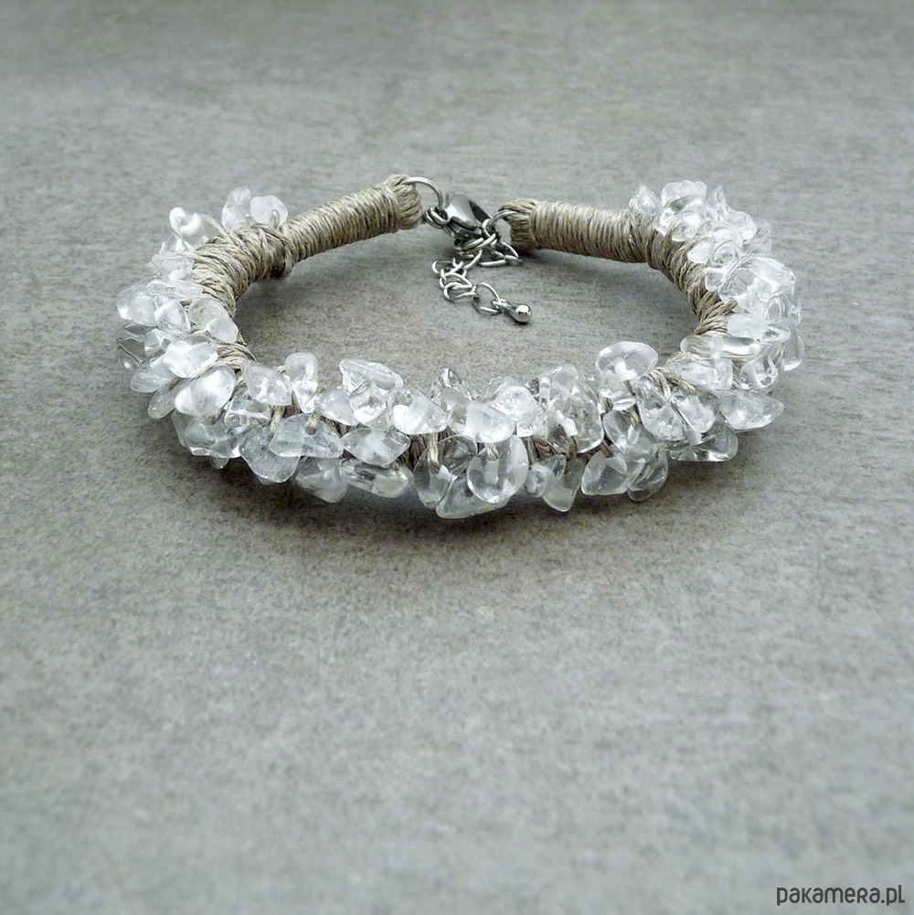 kryształ górski, len naturalny, stal chirurgiczna (nie uczula, nie czernieje)