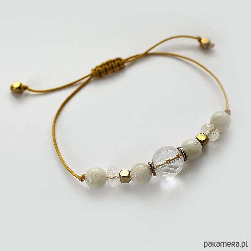 Rodzaj produktu: bransoletki shamballa z regulacją na woskowanym złotym sznurku
