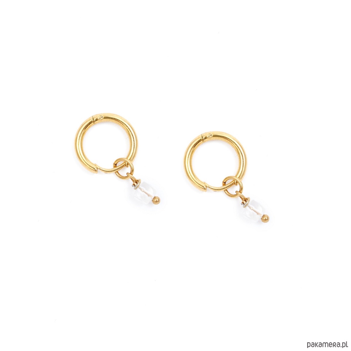 Kryształ górski - kolczyki koła ze stali szlachetnej pozłacanej