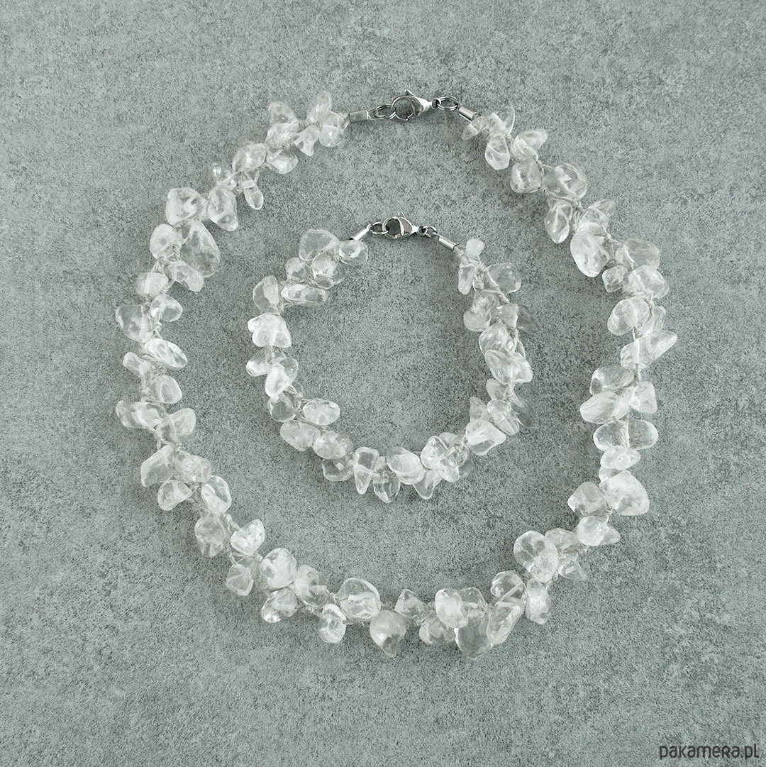 Komplet naturalnej biżuterii z kamieniami kryształu górskiego