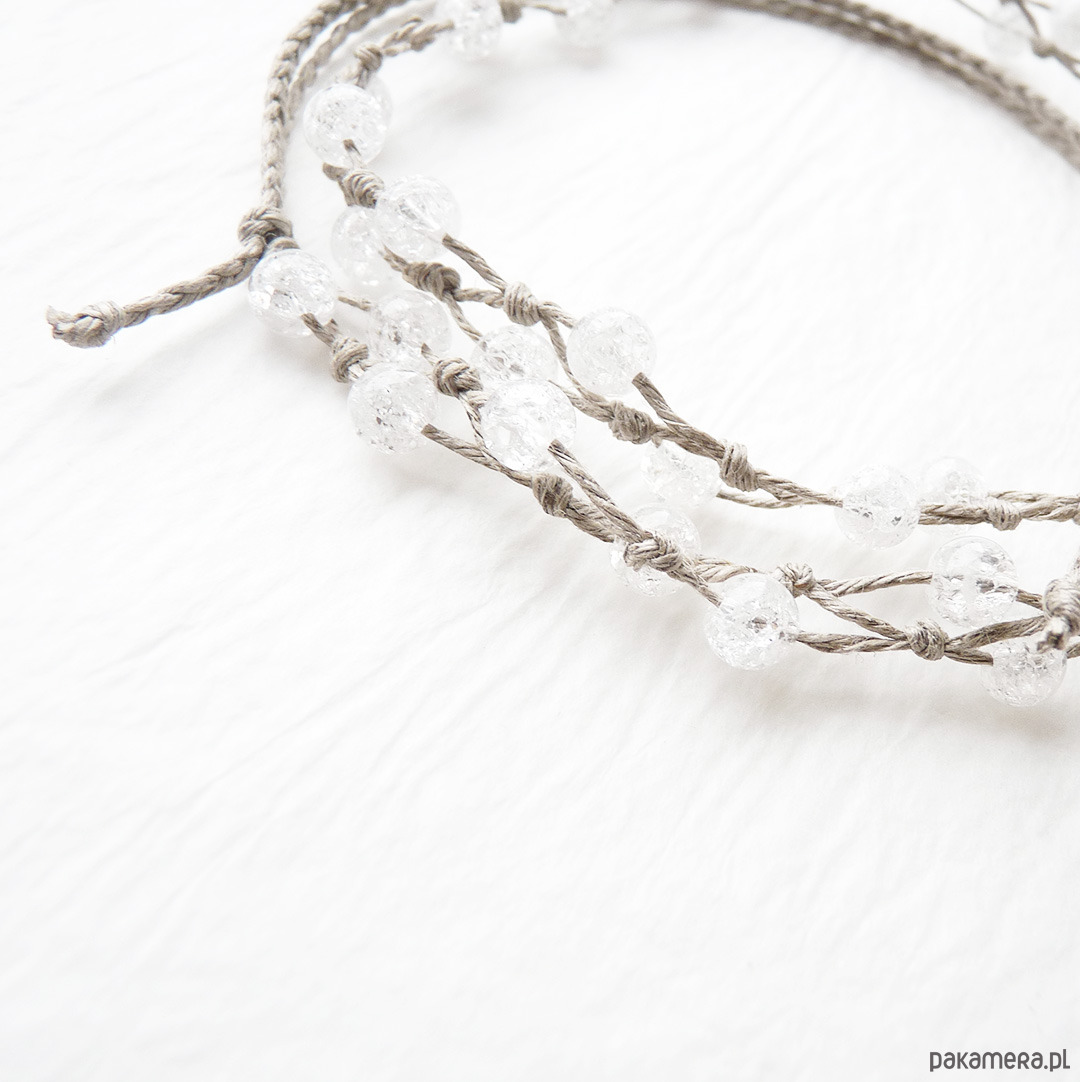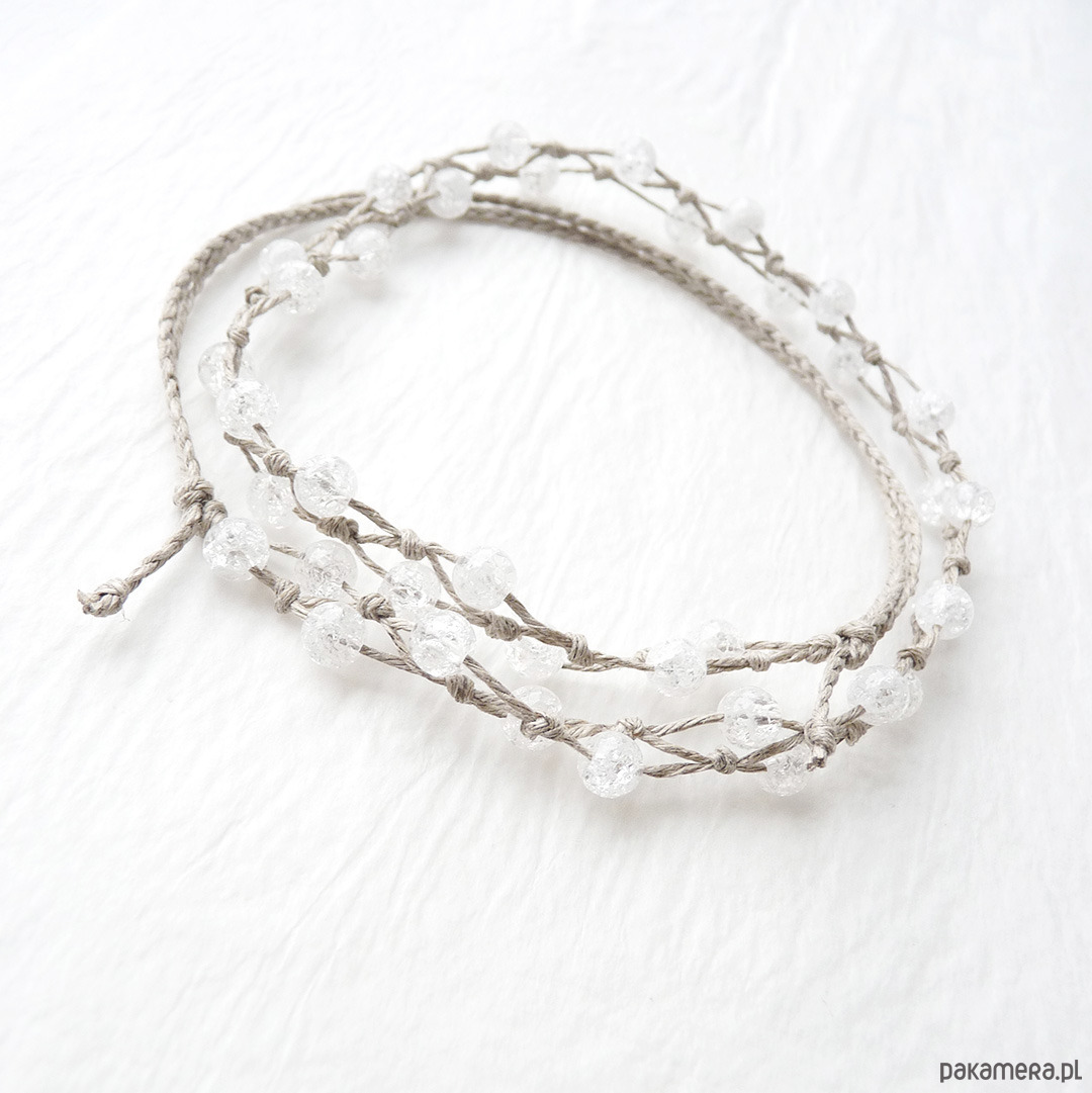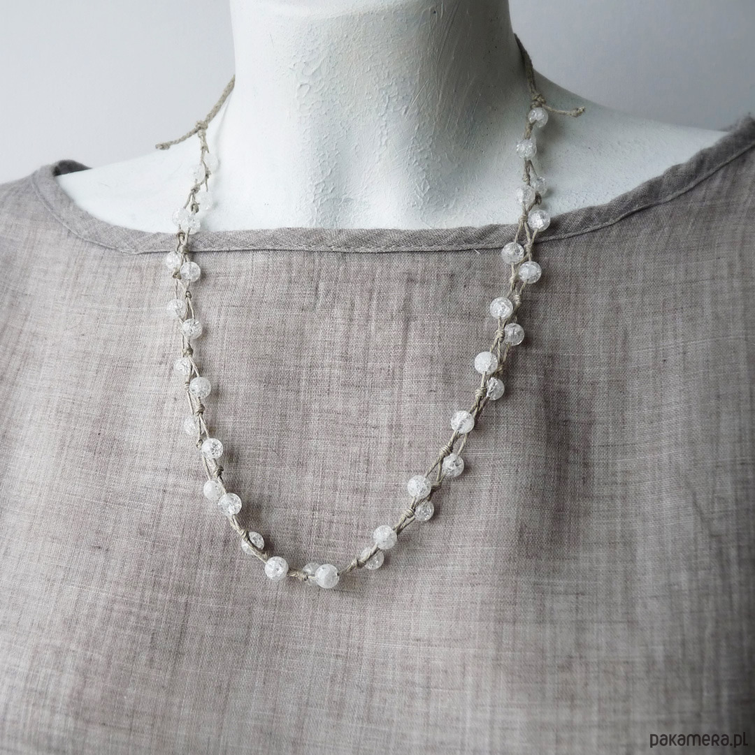Materiały: kryształ górski lodowy średnica 6,5 mm, len naturalny