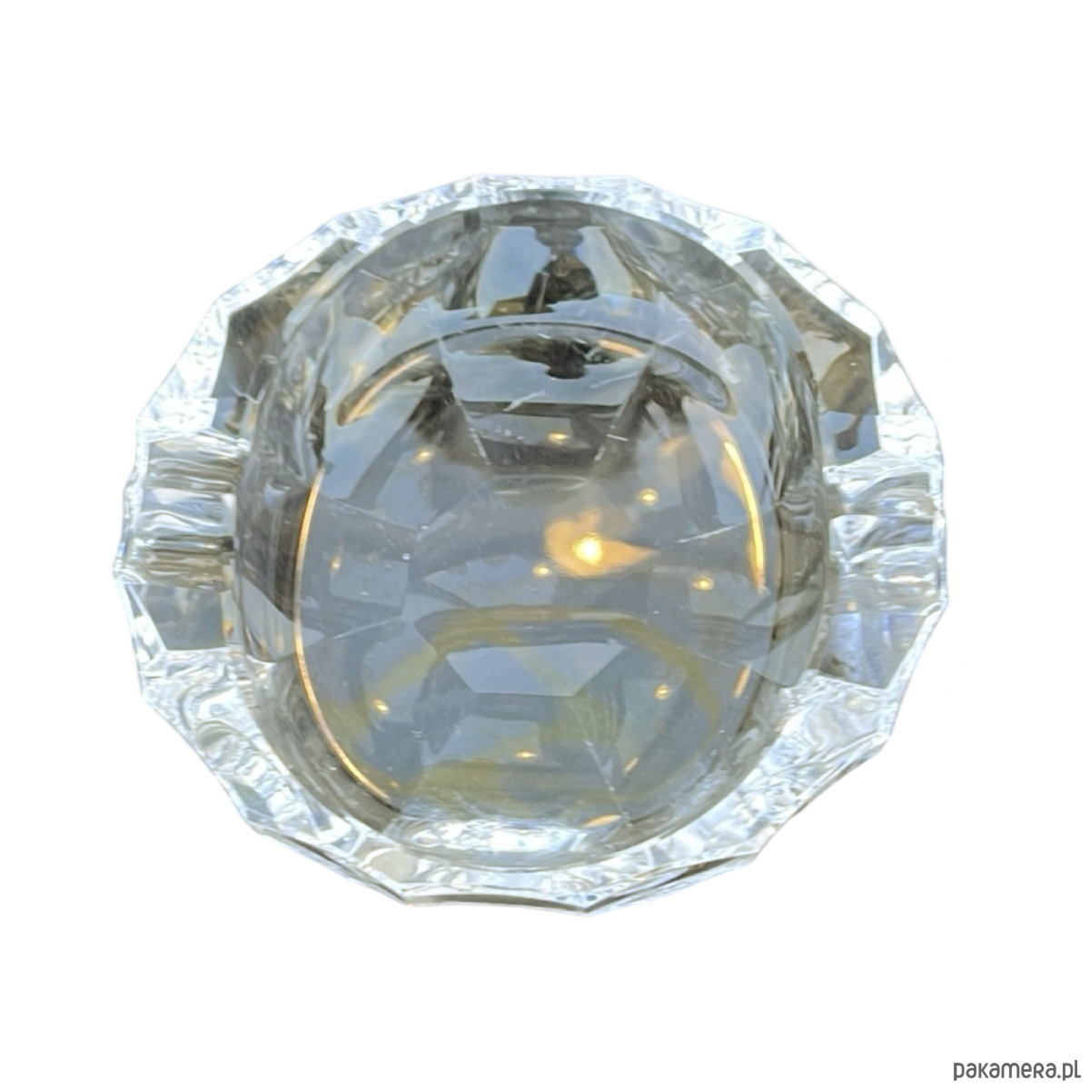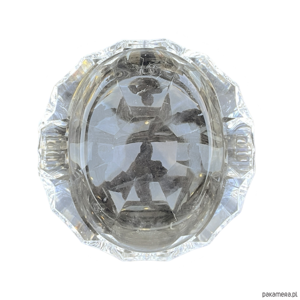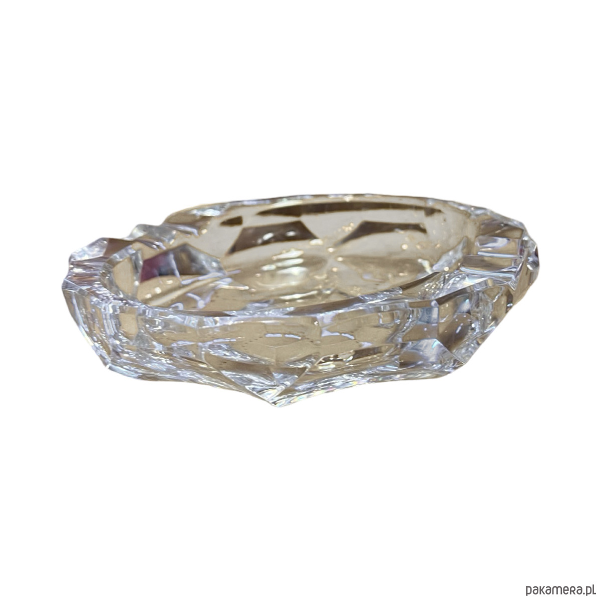 Popielnica ze szkła kryształowego wyprodukowana dla Sklo Union Jablonecke Sklarny w Desna w Czechosłowacji w II połowie XX wieku. Przeźroczysta masywna popielnica ze szlifowanego szkła kryształowego, w stylu art deco z elementami modernizmu. Popielnica w stanie oryginalnym bardzo dobrym, nosi niewielkie ślady użytkowania.