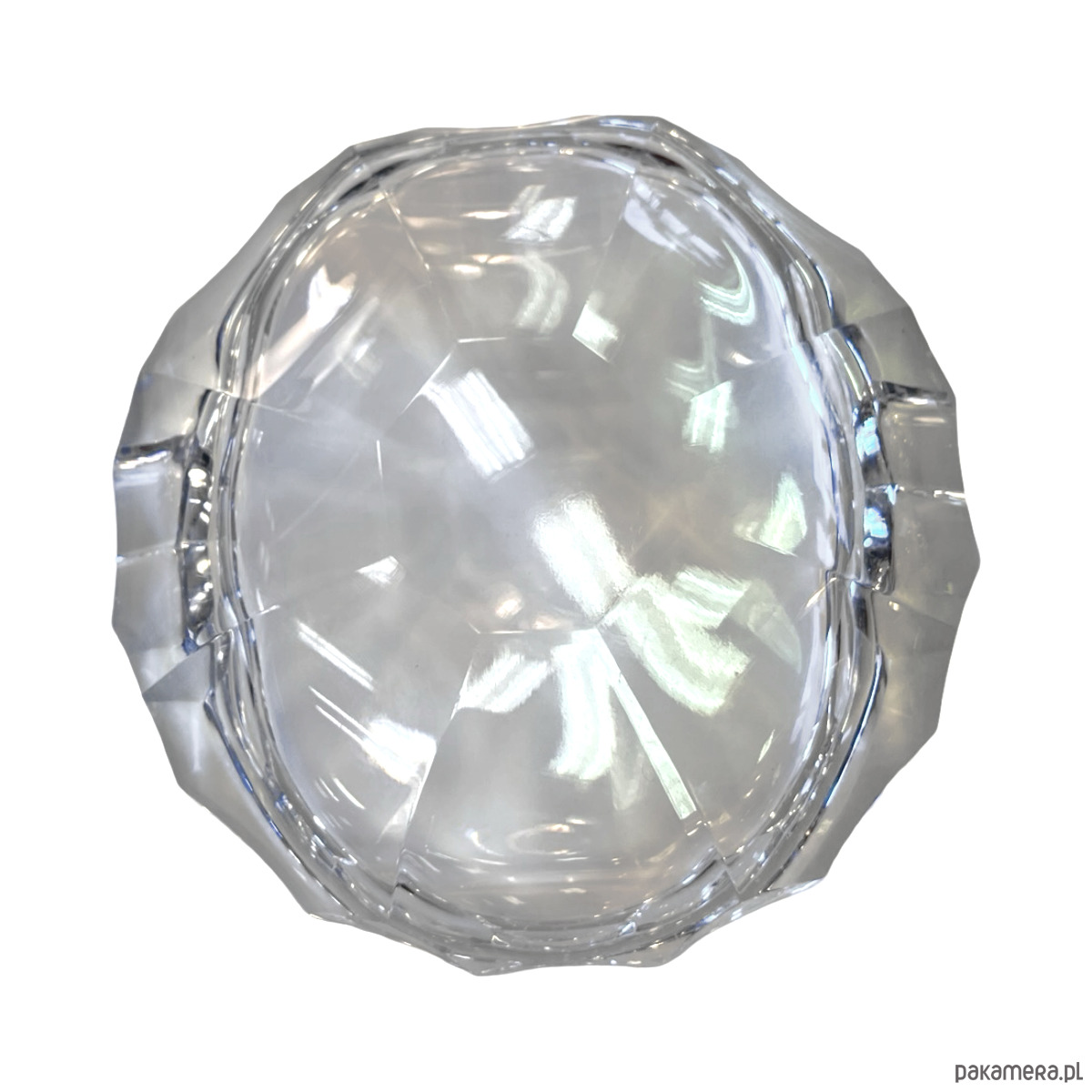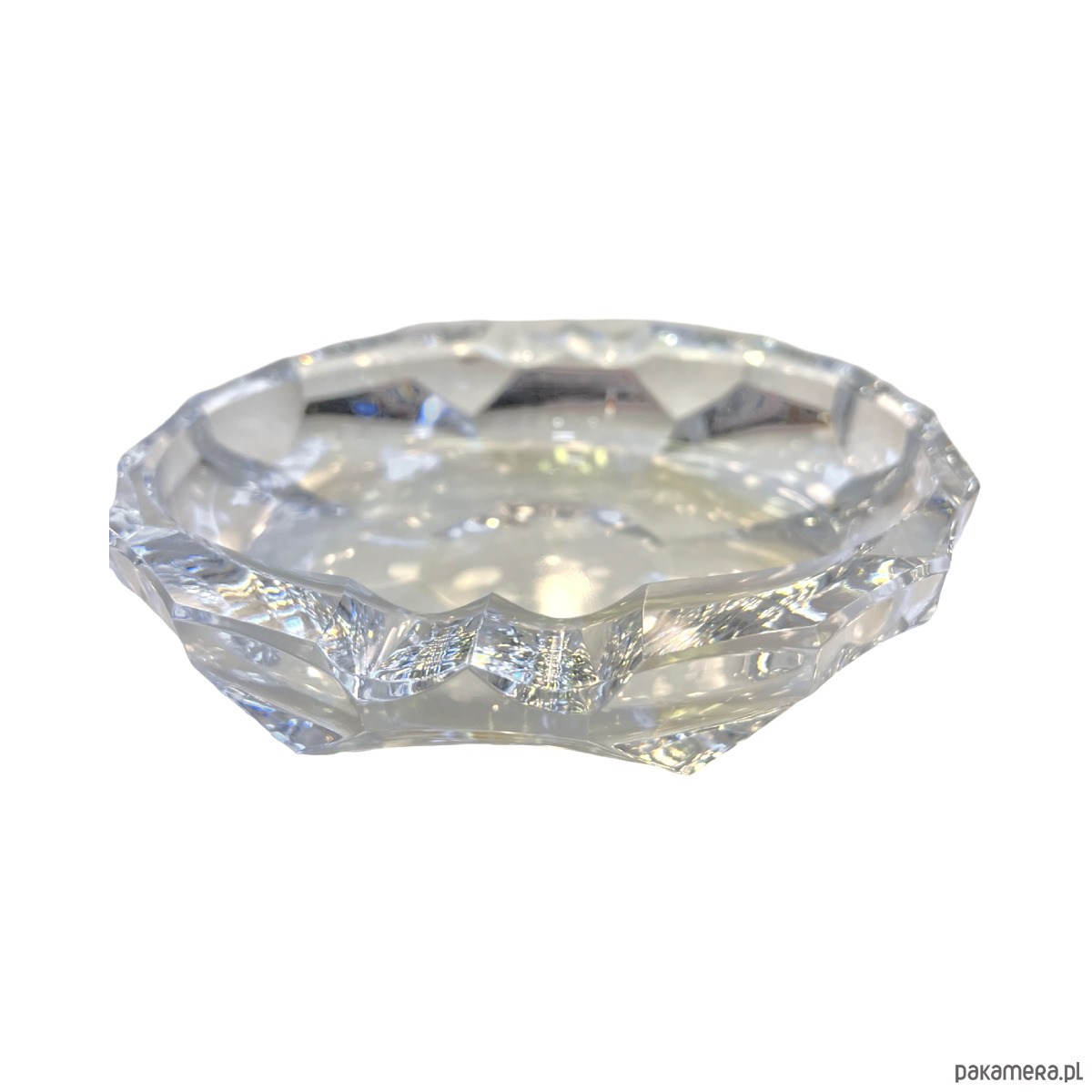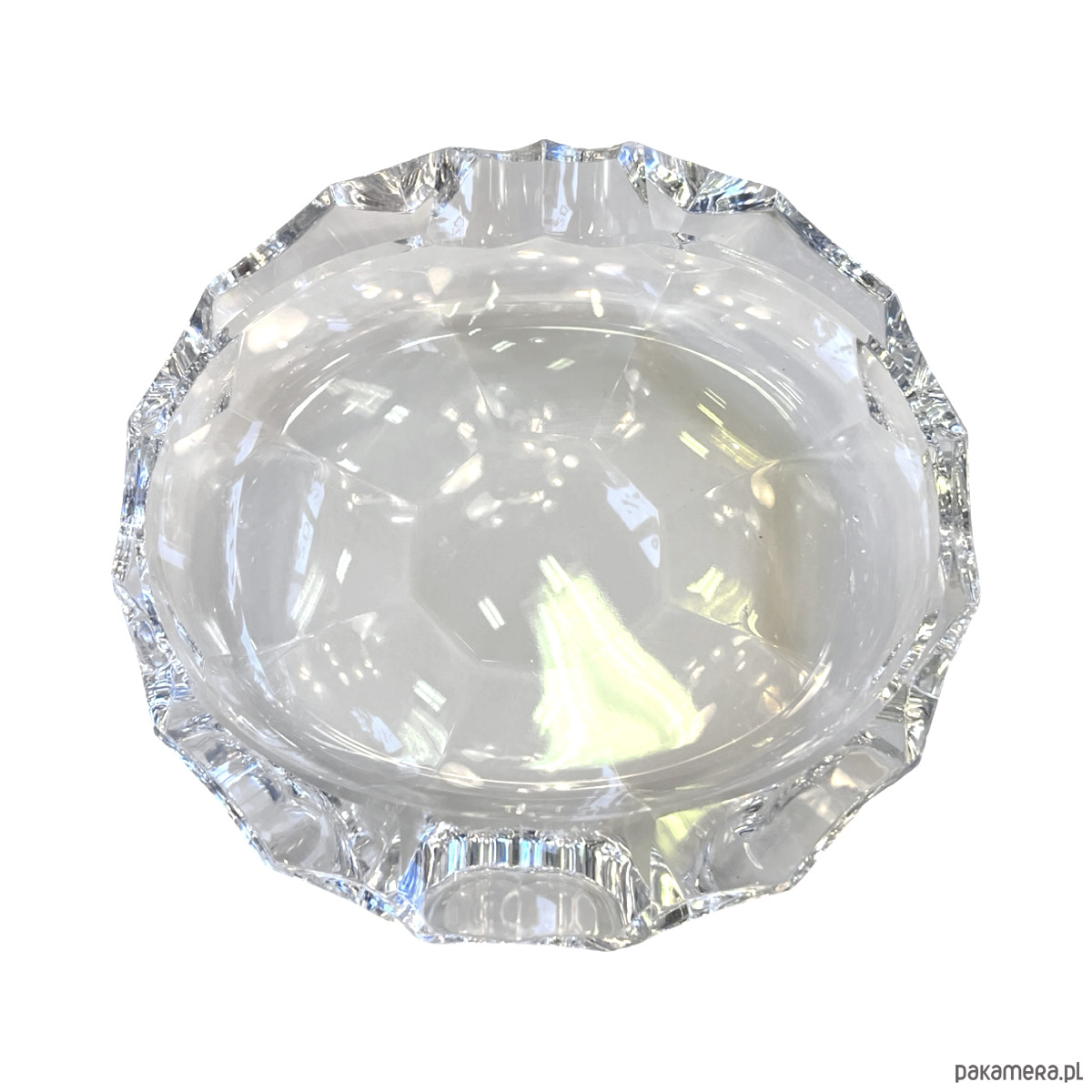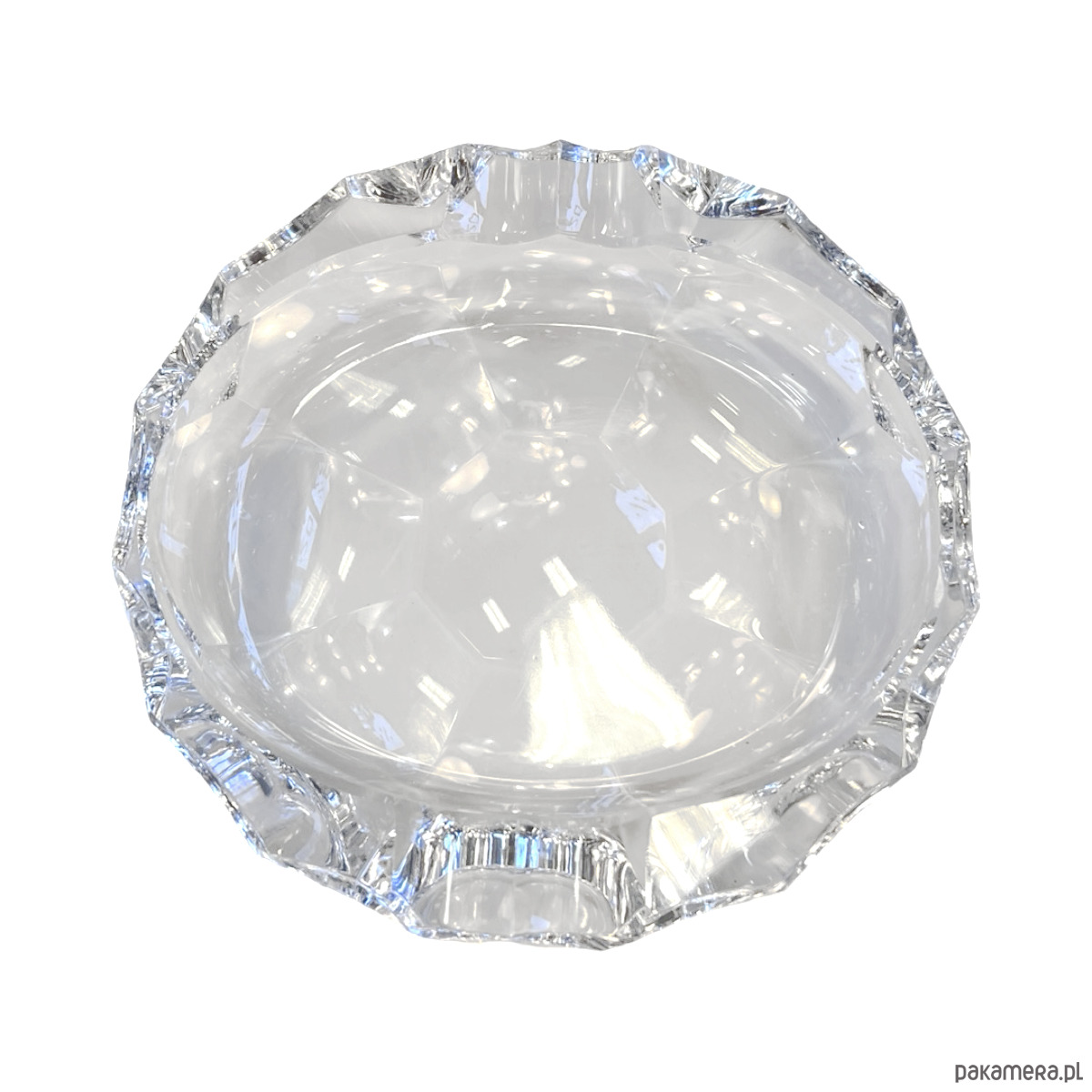 Popielnica ze szkła kryształowego wyprodukowana dla Sklo Union Jablonecke Sklarny w Desna w Czechosłowacji w II połowie XX wieku. Przeźroczysta masywna popielnica ze szlifowanego szkła kryształowego, w stylu art deco z elementami modernizmu. Popielnica w stanie oryginalnym bardzo dobrym, nosi niewielkie ślady użytkowania.