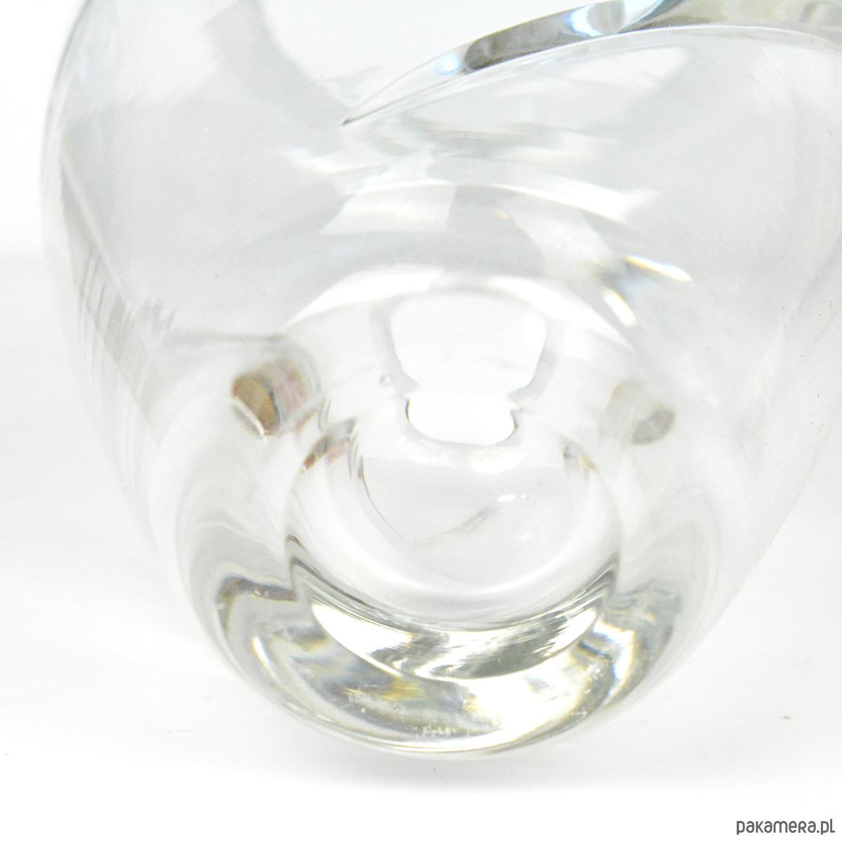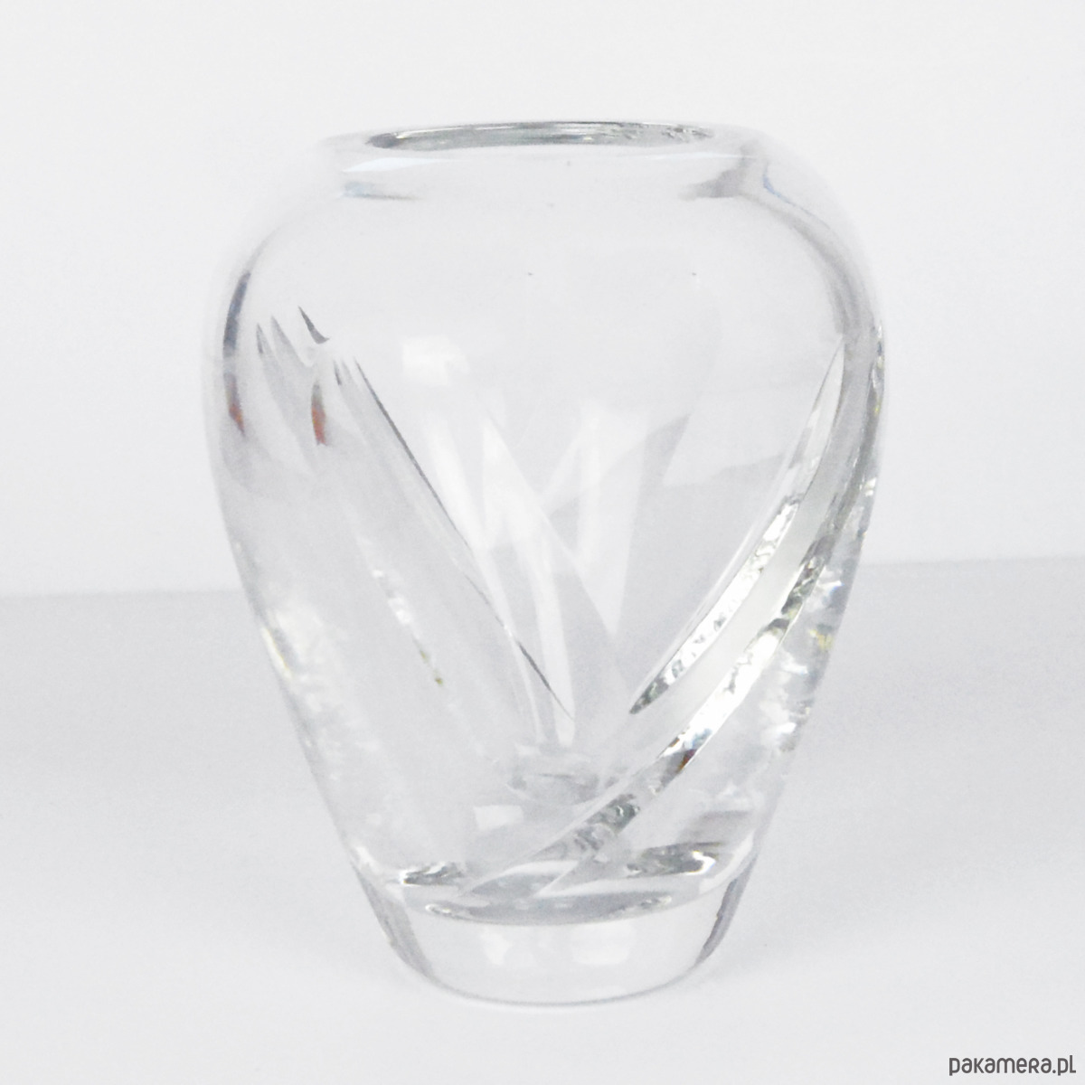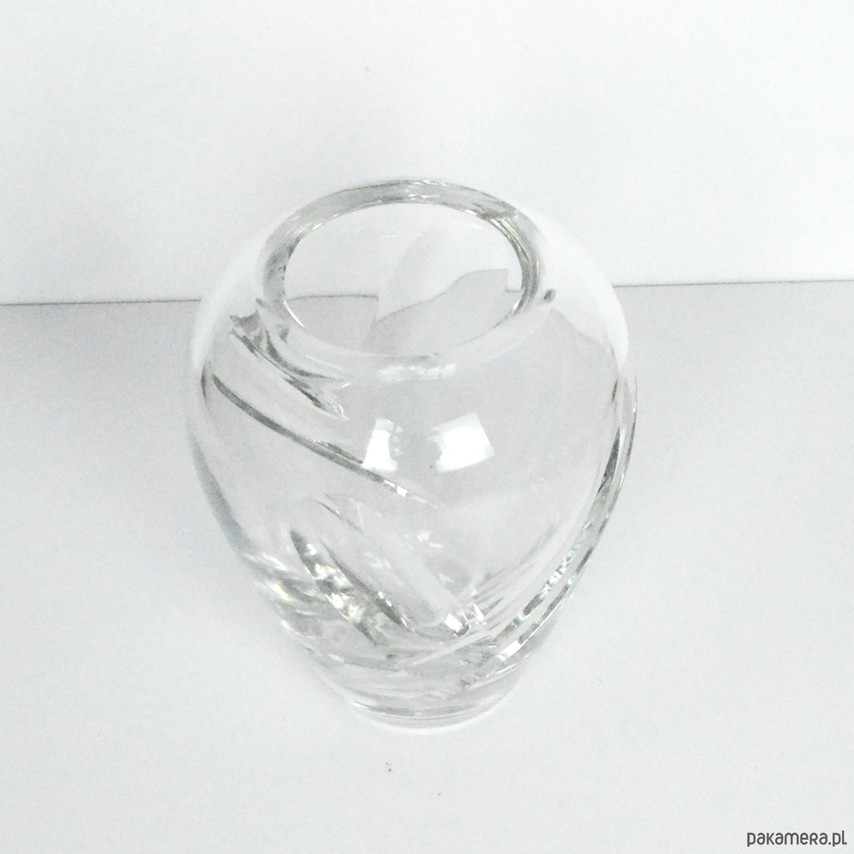 Kryształowy, przestrzenny wazon wyprodukowany w latach 80. przez angielską firmę Royal Doulton. Wazon o wyrazistej bryle z pięknym wykończeniem, wykonany z wysokiej jakości szkła ołowianego 24%Pbo. Szkło kryształowe, formowane i zdobione ręcznie tradycyjną techniką. Wlot i podstawa szlifowane. Przedmiot w stenie oryginalnym, bardzo dobrym z niewielkimi śladami użytkowania - rysy eksploatacyjne.