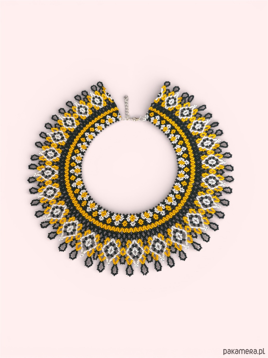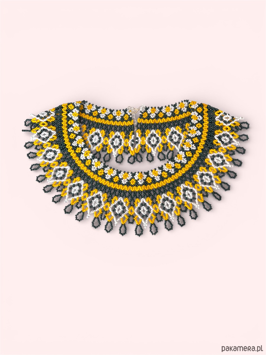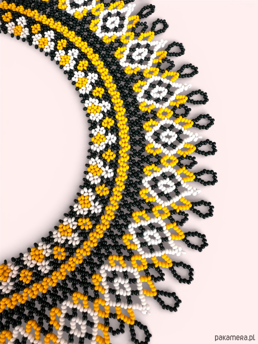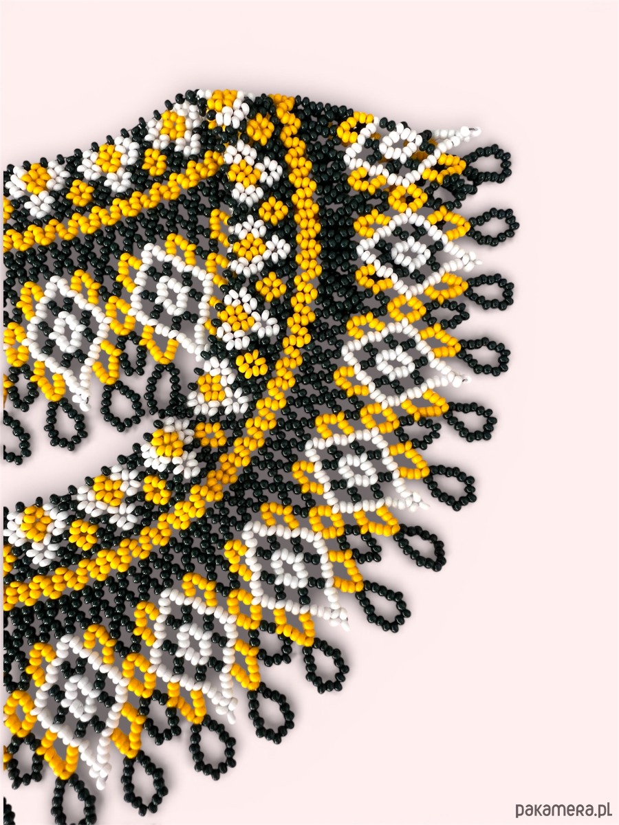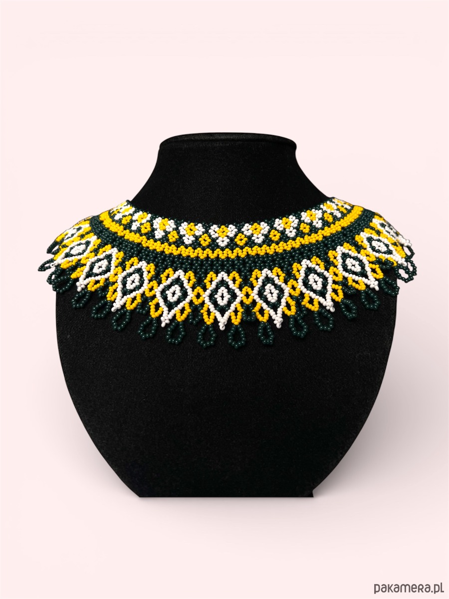 Krywulka łemkowska kołnierzyk z koralików, kolia folk z ornamentem kwiatowym
