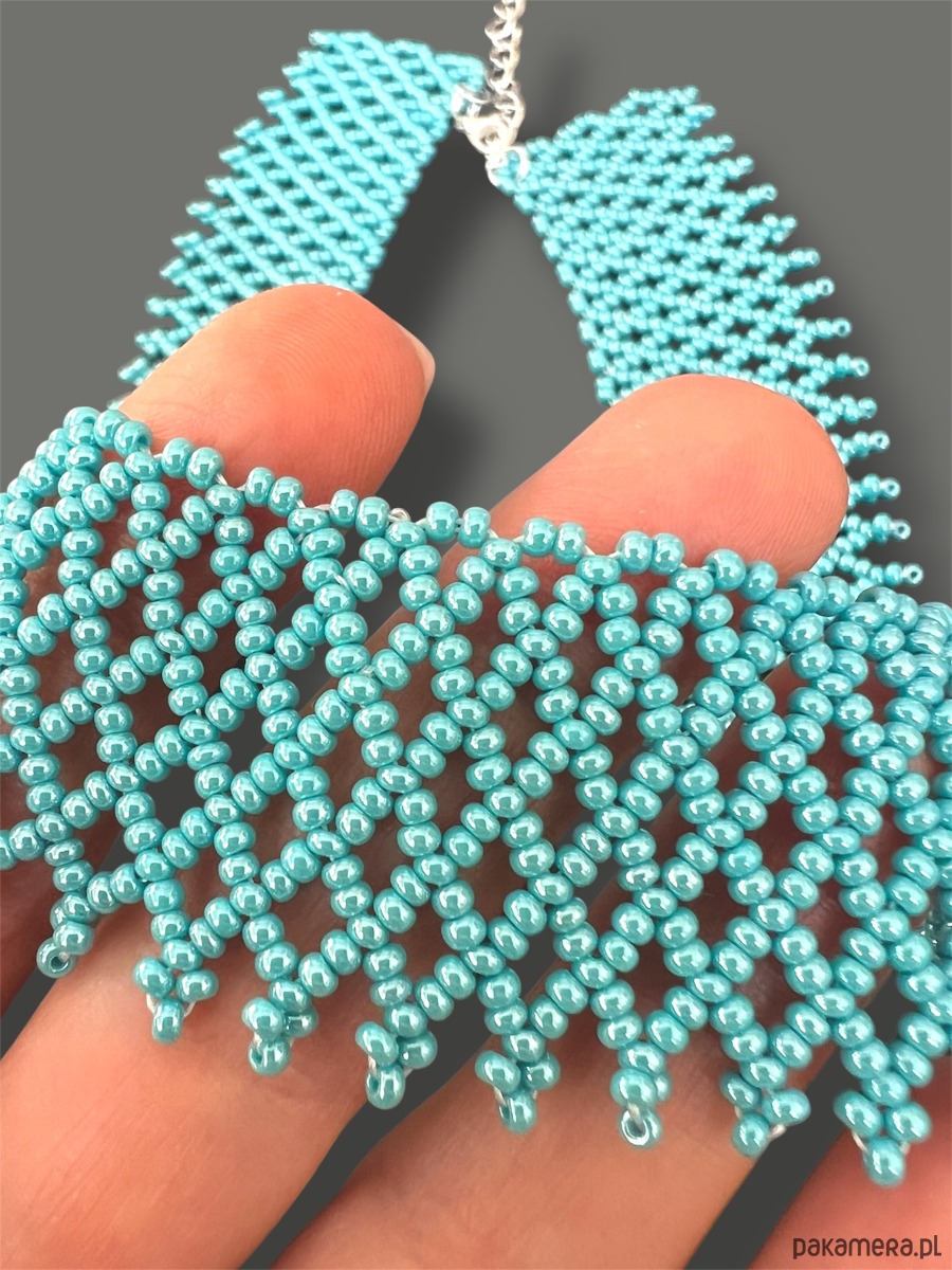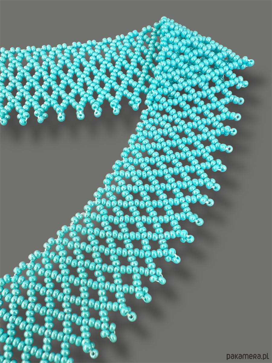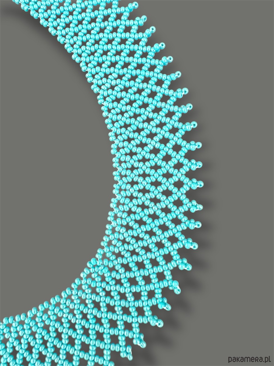 Krywulka łemkowska turkus, naszyjnik ażurowy z koralików folk