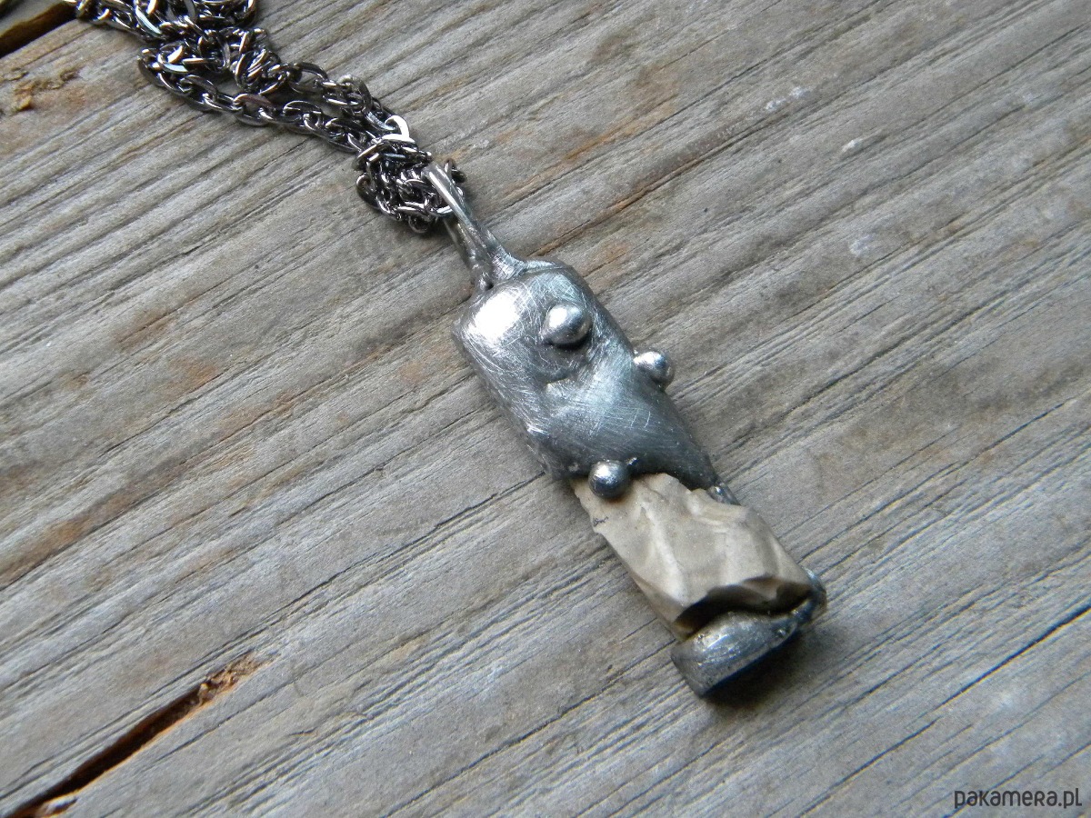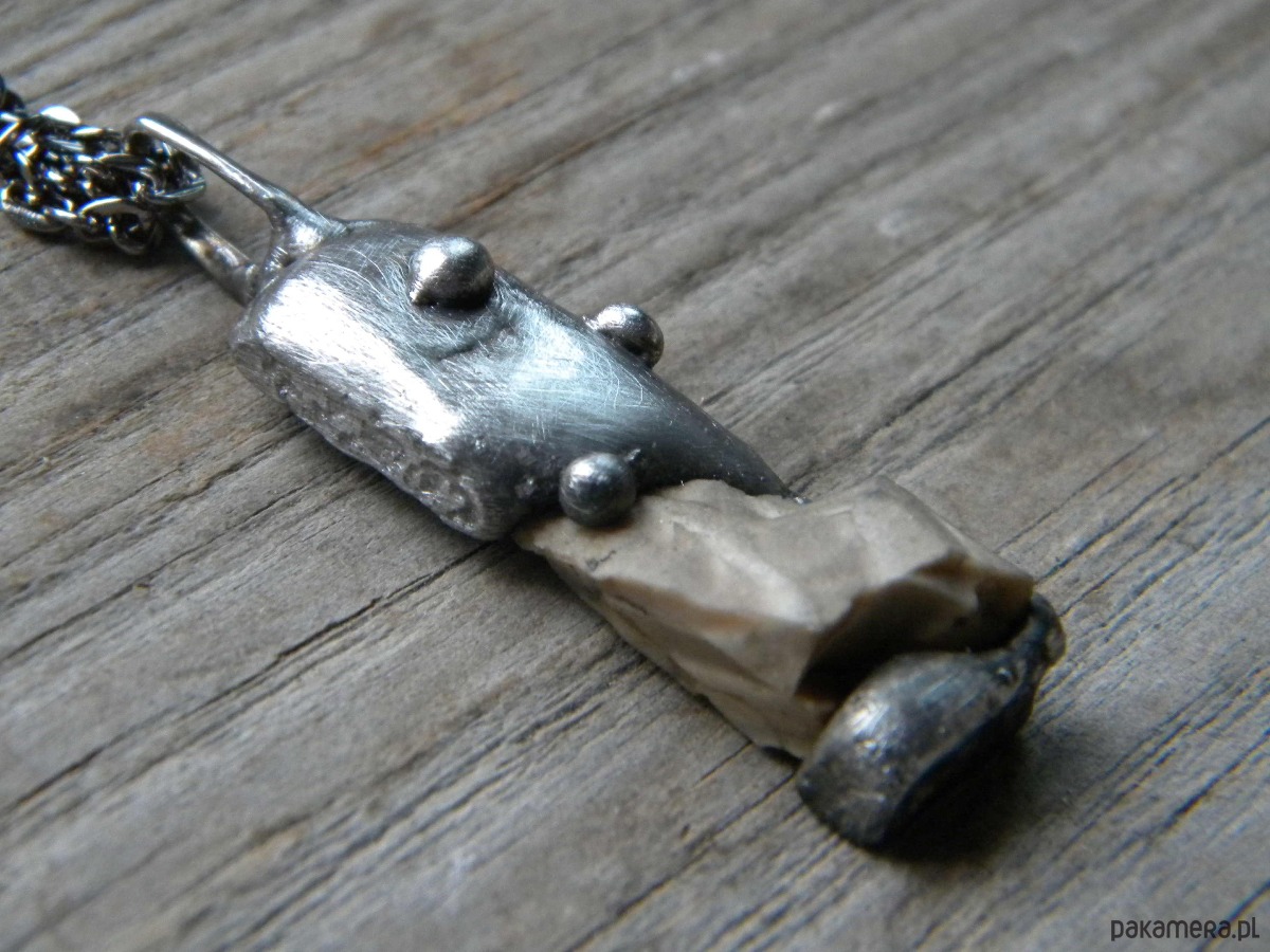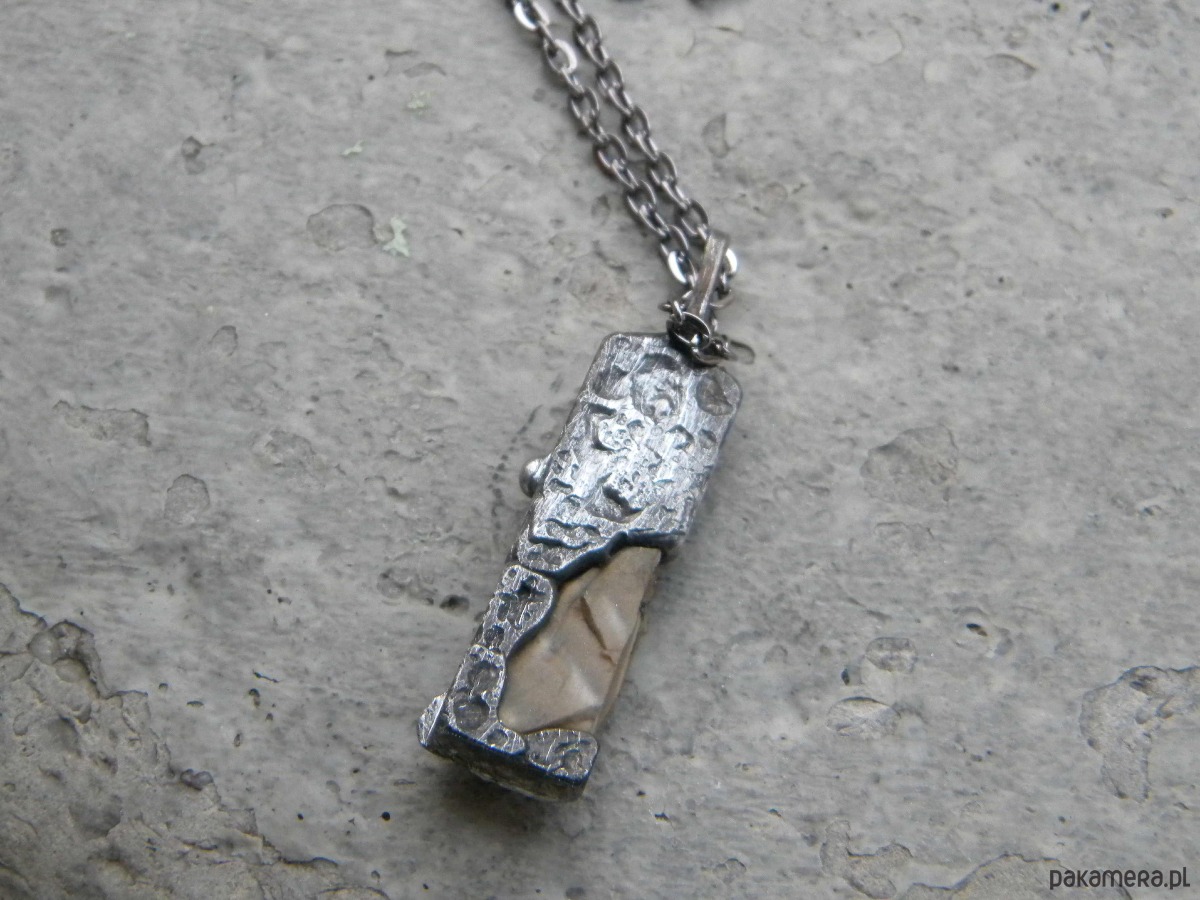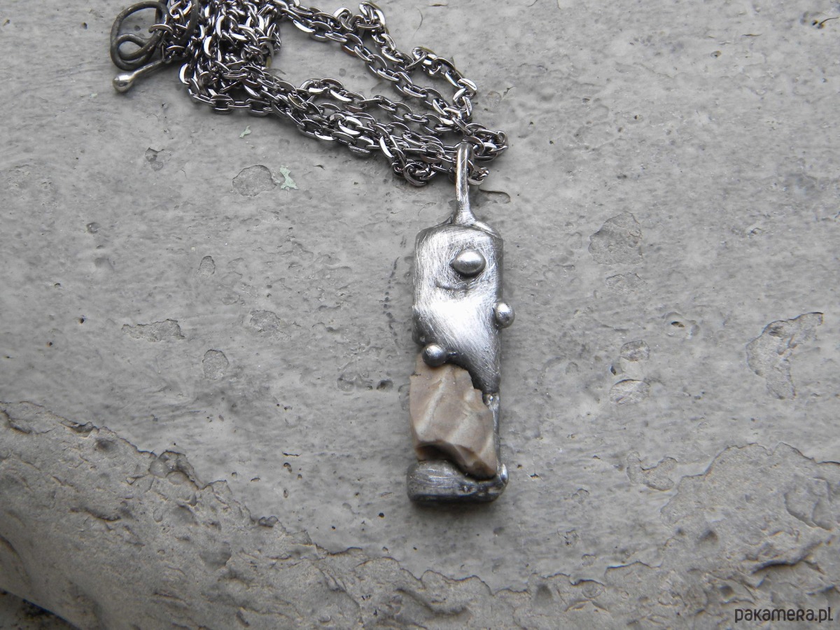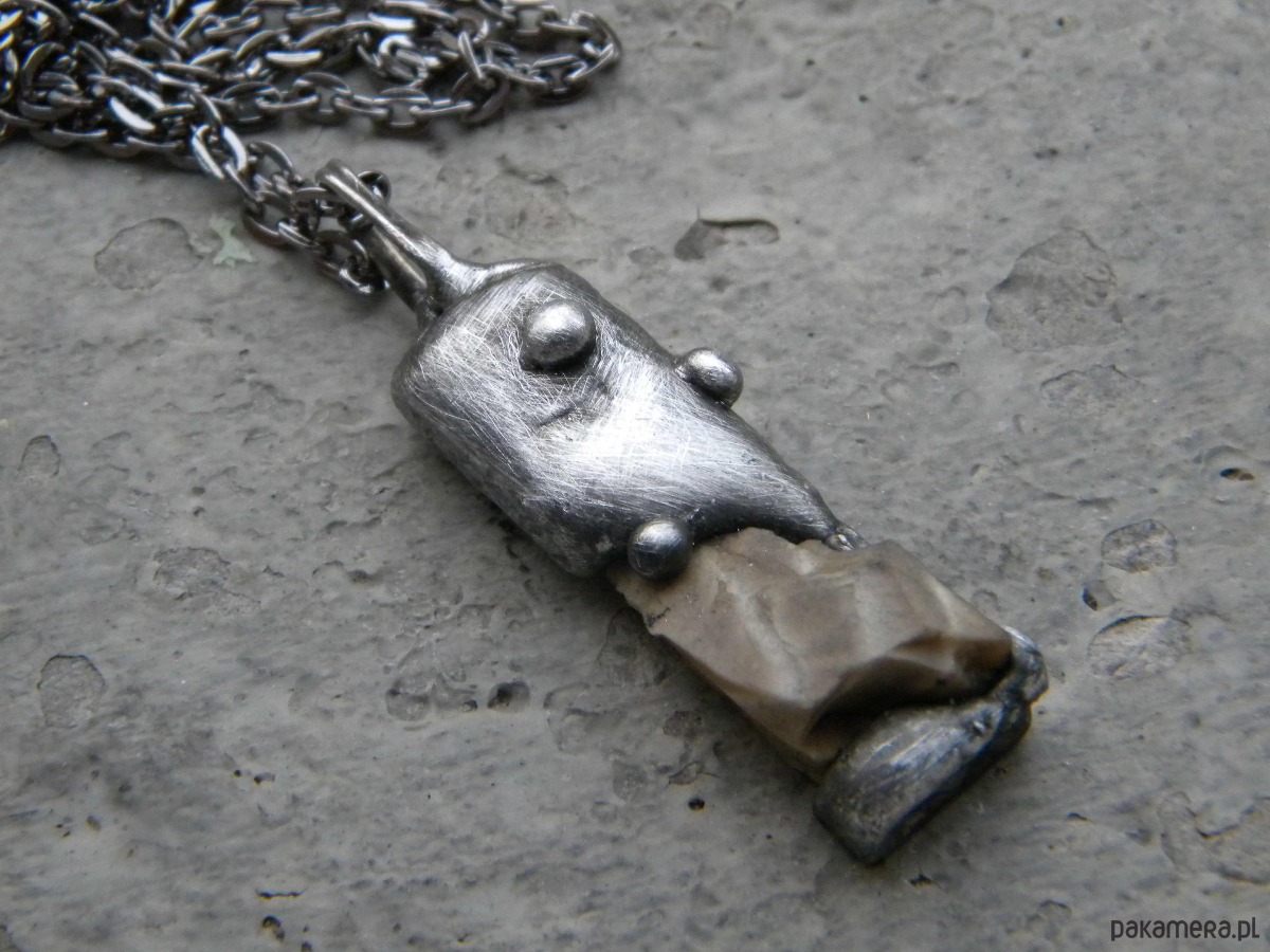 wykonany z surowego krzemienia pasiastego ,cyny i miedzi