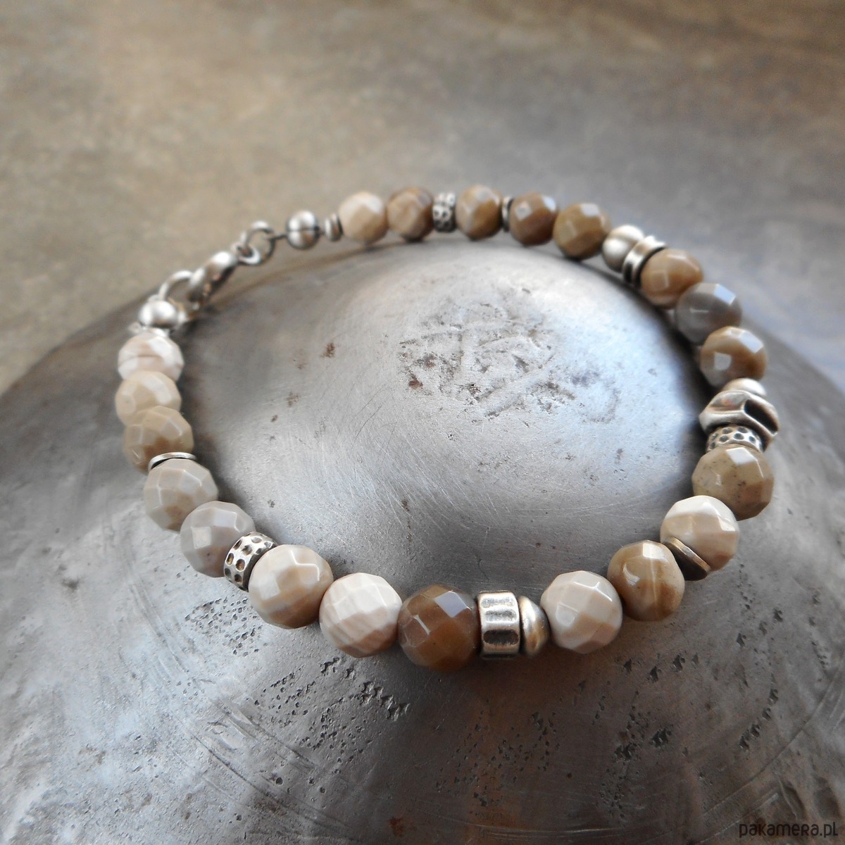 Wyjątkowa bransoletka z kamieni naturalnych i szlachetnego srebra; klasyczna i elegancka, z pięknym krzemieniem pasiastym nazywanym polskim diamentem. Do kompletu polecam kolczyki dostępne w mojej galerii.