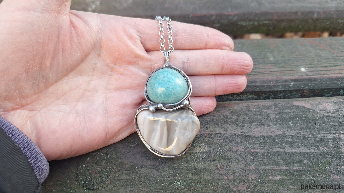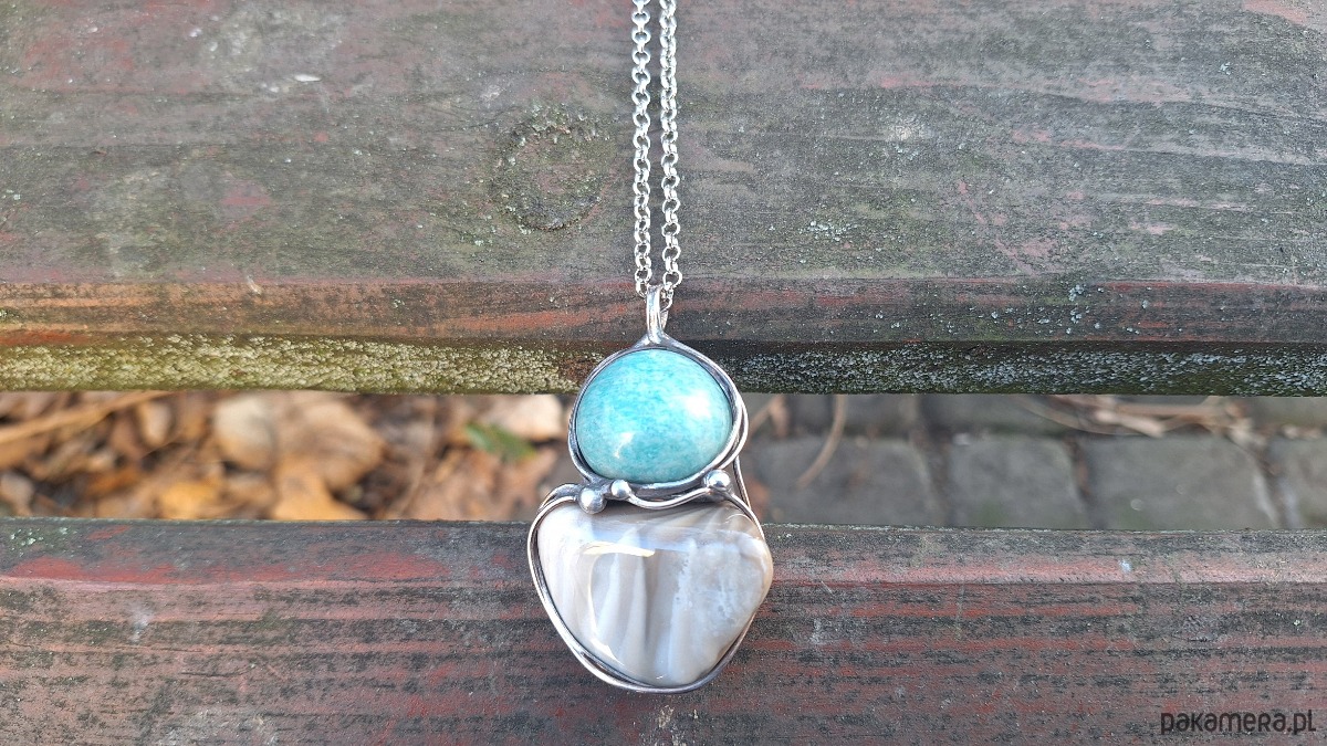 Krzemień i amazonit - wisiorek