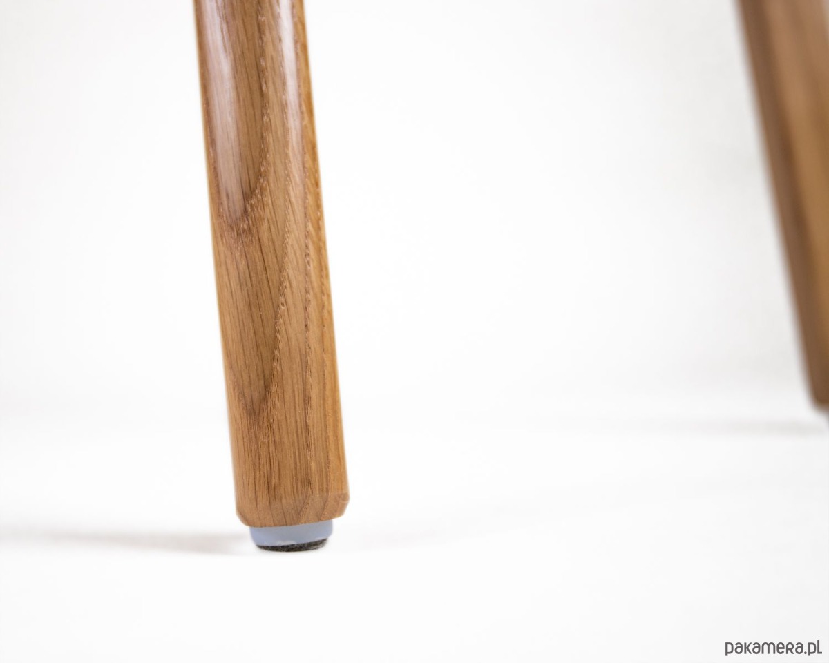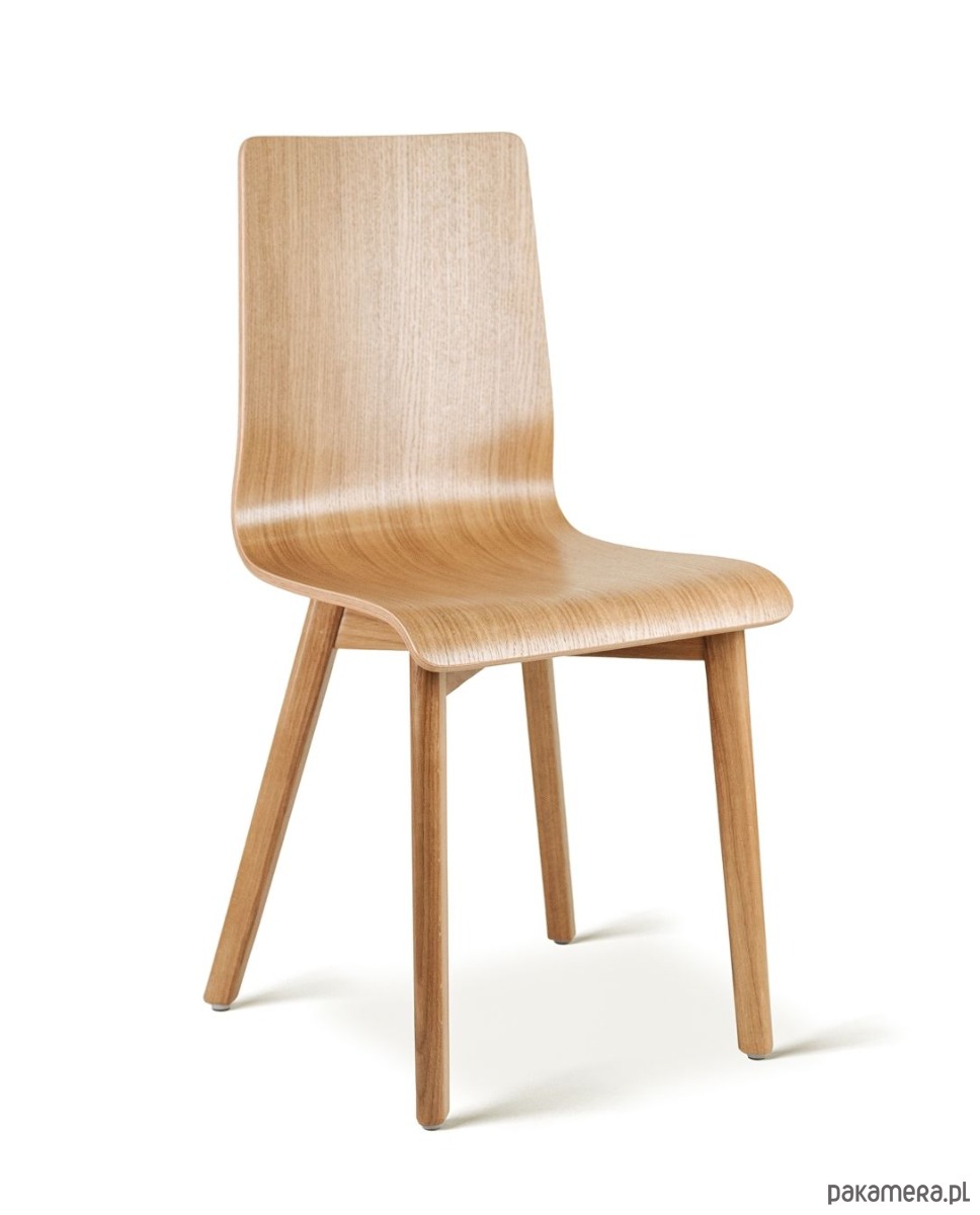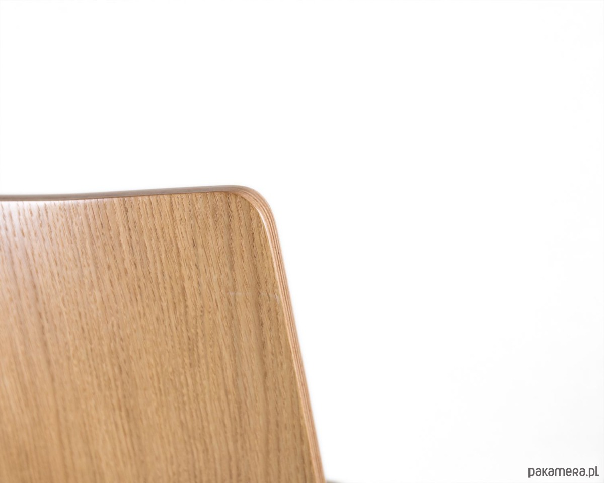Naturalny fornir dębowy i solidne nogi z litego drewna nadają krzesłu lekkości wizualnej przy zachowaniu stabilności. Brak tapicerki czyni je wyjątkowo praktycznym – łatwym w pielęgnacji i odpornym na codzienne użytkowanie.