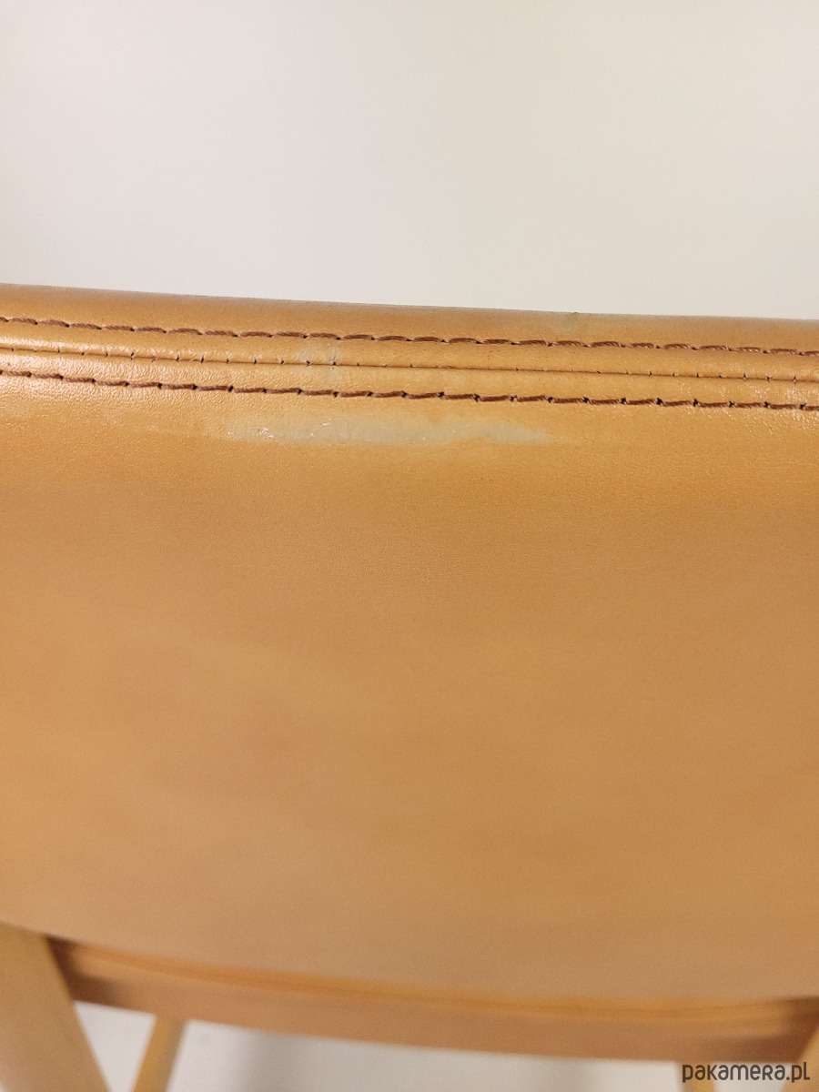 Minimalistyczna forma, solidne wykonanie i naturalna patyna sprawiają, że świetnie odnajdzie się przy stole, w gabinecie lub jako pojedynczy akcent vintage. Tapicerka posiada minimalne przetarcia na rancie oparcia.