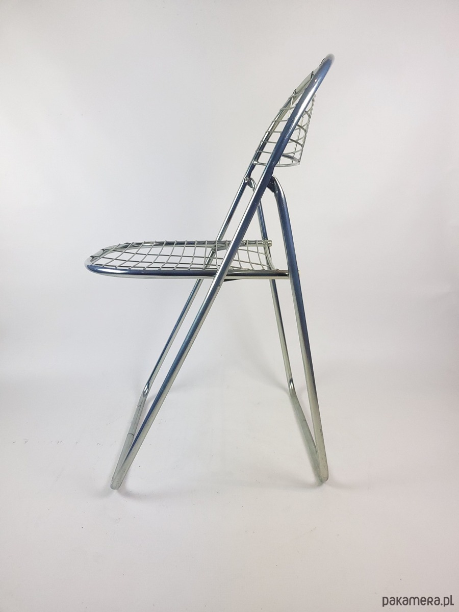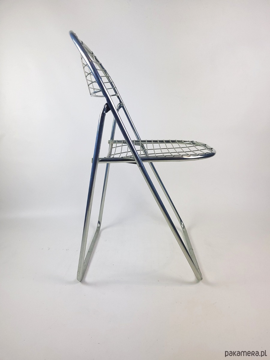 Prezentujemy ikonę skandynawskiego designu z lat siedemdziesiątych i osiemdziesiątych. Model Åland, zaprojektowany przez duńskiego wizjonera Nielsa Gammelgaarda, to doskonały przykład estetyki hi tech, która wprowadziła do wnętrz industrialną lekkość. Krzesło wykonane jest z chromowanej stali o ażurowej konstrukcji, dzięki czemu prezentuje się niezwykle nowocześnie mimo upływu dekad.Jego największym atutem jest funkcjonalność połączona z wyjątkową formą siedziska i oparcia z metalowej siatki. Ergonomiczny profil zapewnia zaskakujący komfort użytkowania, a mechanizm składania pozwala na łatwe przechowywanie, co czyni je idealnym wyborem do mniejszych przestrzeni. Srebrzyste wykończenie chromu pięknie odbija światło, nadając wnętrzu unikalny, vintage'owy sznyt. To obowiązkowa pozycja dla miłośników autentycznych mebli z epoki oraz osób szukających ponadczasowych dodatków o solidnej konstrukcji.