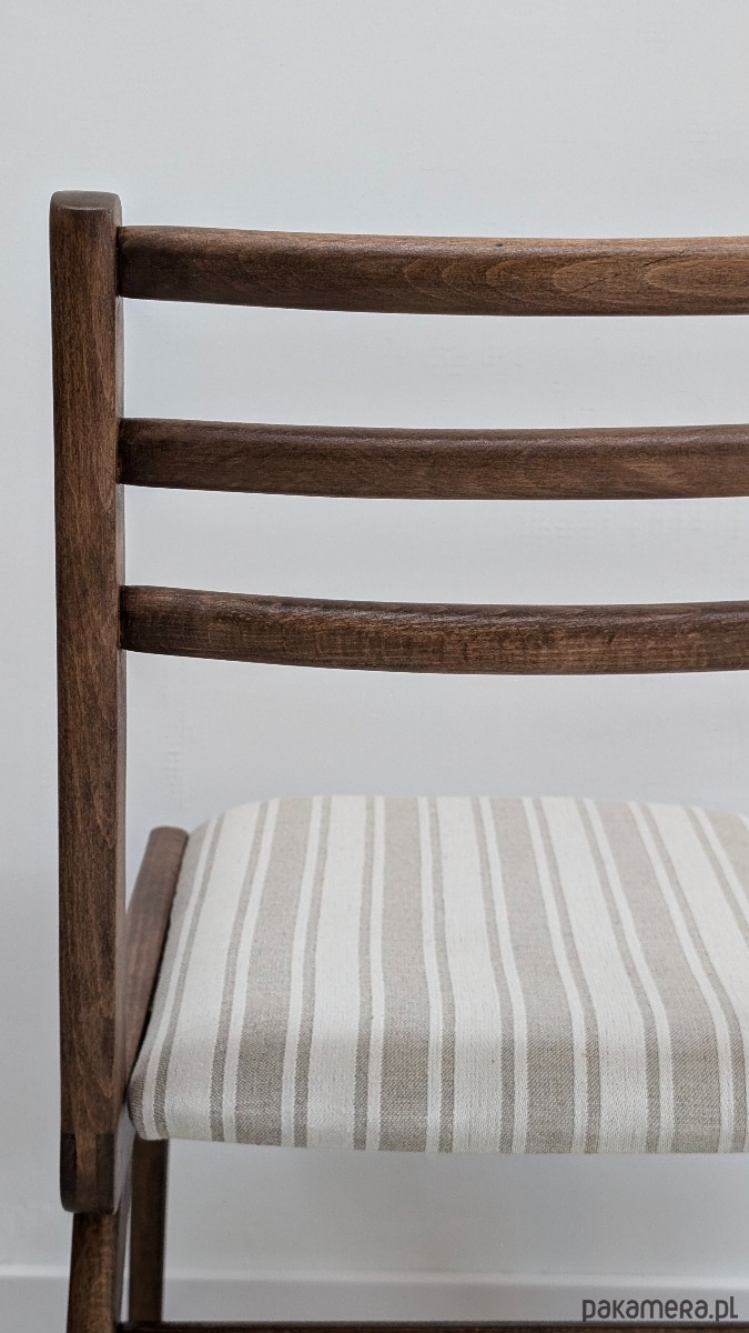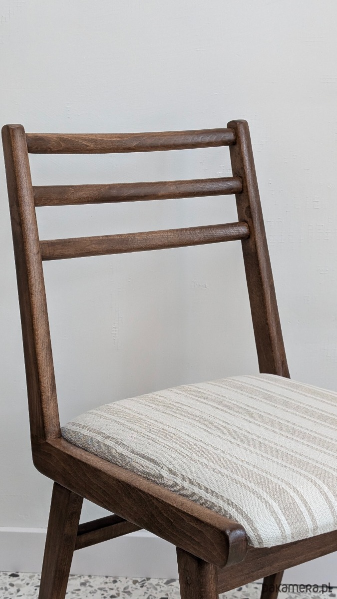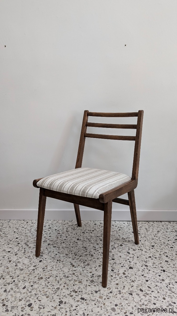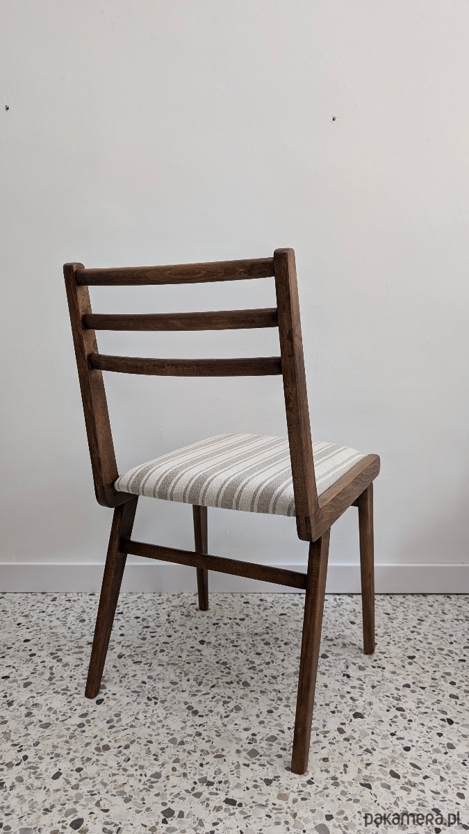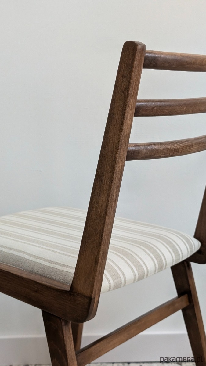 Krzesło przeszło gruntowną renowację stolarsko-tapicerską.
