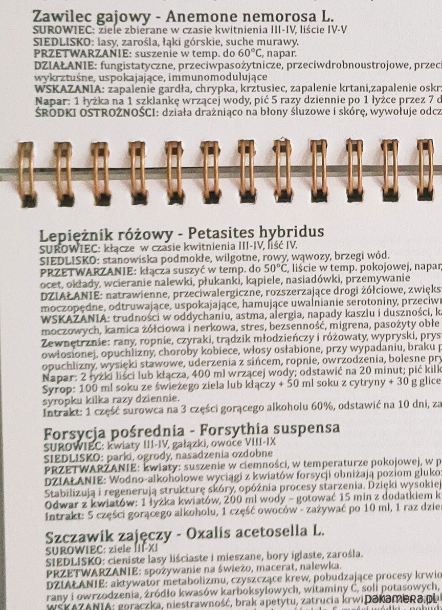 - przepisy na napary, odwary, nalewki, intrakty, soki, okłady, maści, płukanki, kąpiele itd.